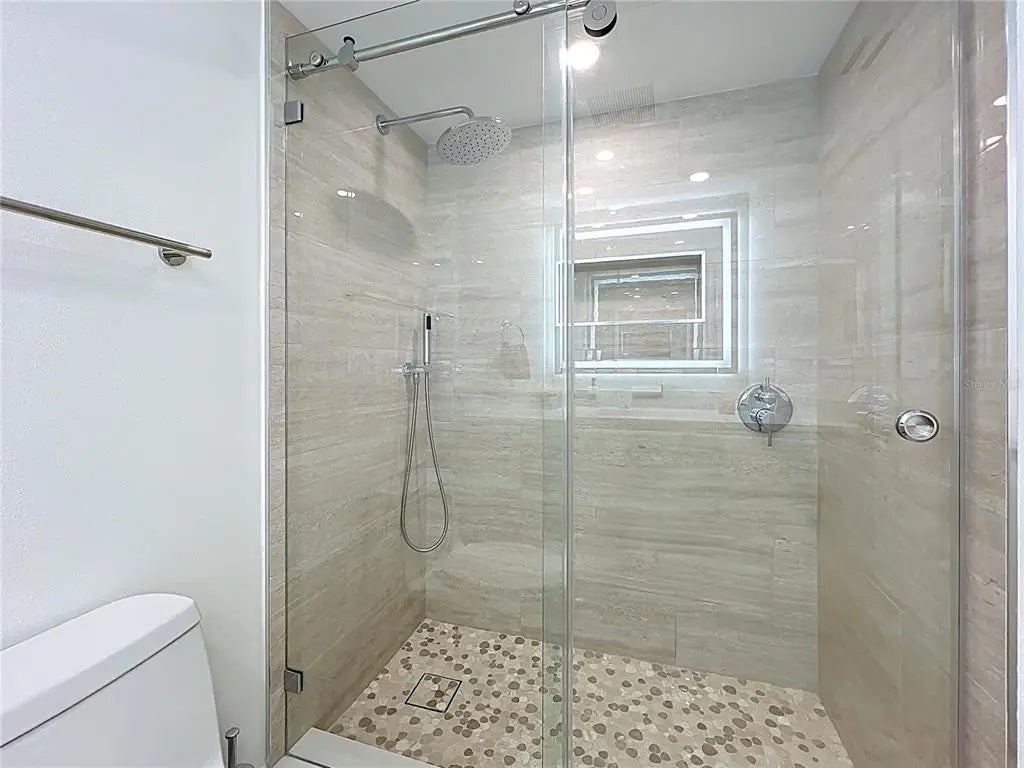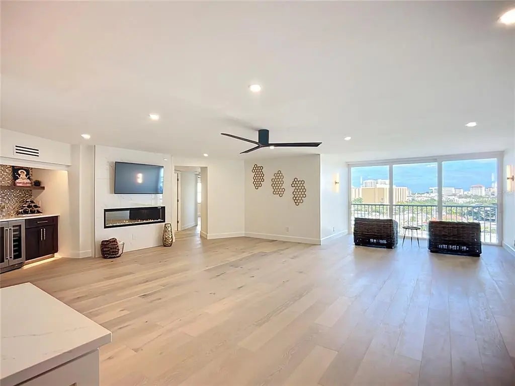 URBAN CHIC RENOVATED UNIT DOWNTOWN ON 10TH FLOOR. This two bedroom and two bath condo has undergone an extensive 6 month renovation that includes: engineered wood flooring, chefs kitchen with custom cabinetry and two sets of floating shelves. Upgraded appliance package with extra deep refrigerator, double oven/microwave combo, and cooktop. There is an accent wall of Limra stone from Peru as you walk in the unit, giving you an immediate sense of how nicely this unit was finished. In main living area is a dry bar with floating shelves that is illuminated with LED tape strip lighting, and toe kick lights. The entertainment wall has a 50” tv and built in Dimplex electric fireplace. The bathroom showers are equipped with both shower heads , and separate hand held sprayers. They also feature upgraded tile with lighted shower niches and frameless glass enclosures. The primary bath shower was extended to add extra room inside. Every room had new 4” LED recessed can lights installed with ceiling fans and ceilings that have a Level 5 smooth finish. Both bedrooms closets were installed by custom closet company. If that wasn’t enough they craned in new triple track sliding glass door and new windows, all impact rated to this upper floor condo. Open up the sliders and see the view across downtown Sarasota and Palm Ave. All these renovations were completed by award winning Sarasota Remodeling and Design. Set up a showing today to see why this is the best condo for the price downtown. Resort-style amenities enhance everyday living: a heated pool, fitness center, stylish club room with catering kitchen, and the peace of mind of 24/7 concierge service. Great access to local attractions - Selby Gardens, SRQ Airport, Main Street restarants, Art Galleries, etc.