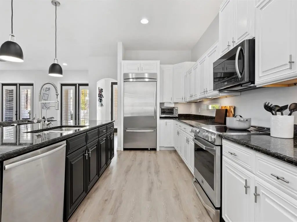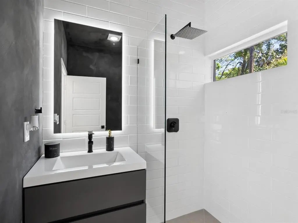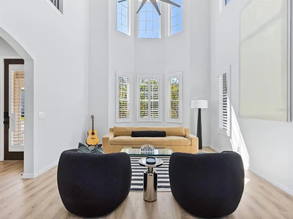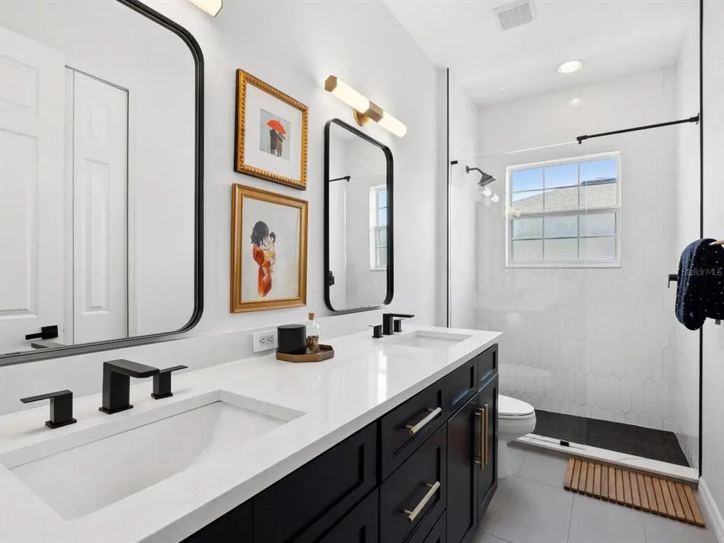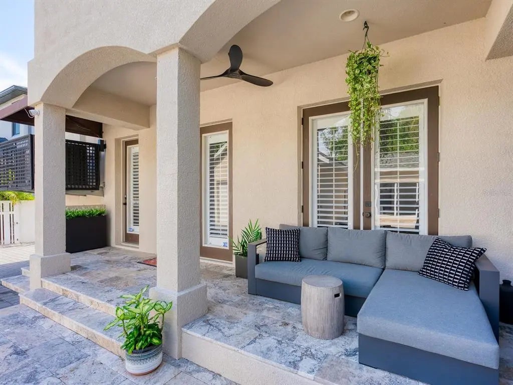 This stunning home blends modern luxury with effortless convenience in a prime location just moments from Southside Village, Sarasota Memorial Hospital, downtown and Arlington Park. The main house, constructed of all block and built solid, offers a bright, open floor plan with three bedrooms and 2.5 baths, while the new separate two-car garage and guesthouse studio apartment with a full bath provides a relaxing retreat for visitors, an au pair or an additional workspace. Enjoy views of the new sparkling pool and bring the outdoors inside through the French doors that open out from the main house living area to the paver back patio. The first floor features the main living areas, kitchen, dining and powder bath. Upstairs, enter the lavish primary suite through double doors and experience an expansive custom walk-in closet and designated office. The other two guest bedrooms rest on either side of the bright and purposeful upper foyer overlook. Thoughtfully designed for style and sustainability, the property boasts xeriscaping for low maintenance. With a prime lifestyle near top-tier amenities, this exceptional home with all one could need is a rare find. Walk to Arlington Park facilities, such as tennis, basketball courts, pool, playground, recreational equipment and park. Other features include 2021 roof, 2019 Trane HVAC units, plantation shutters throughout, gated entry from street to garage, oversized kitchen pantry and more.