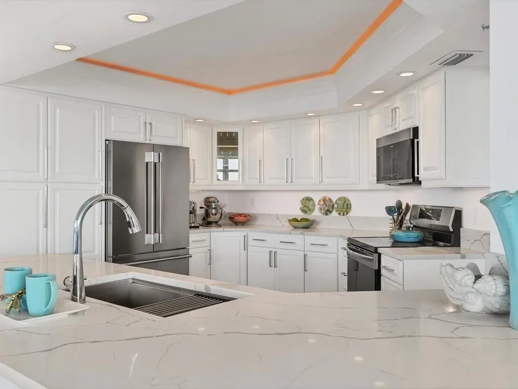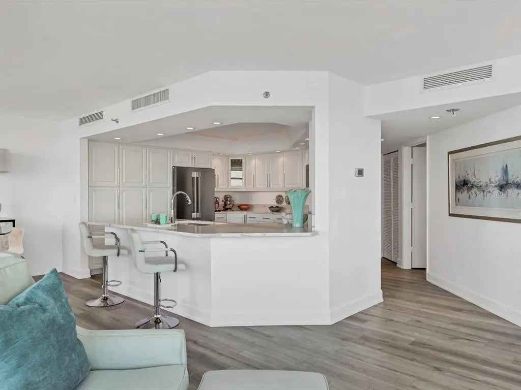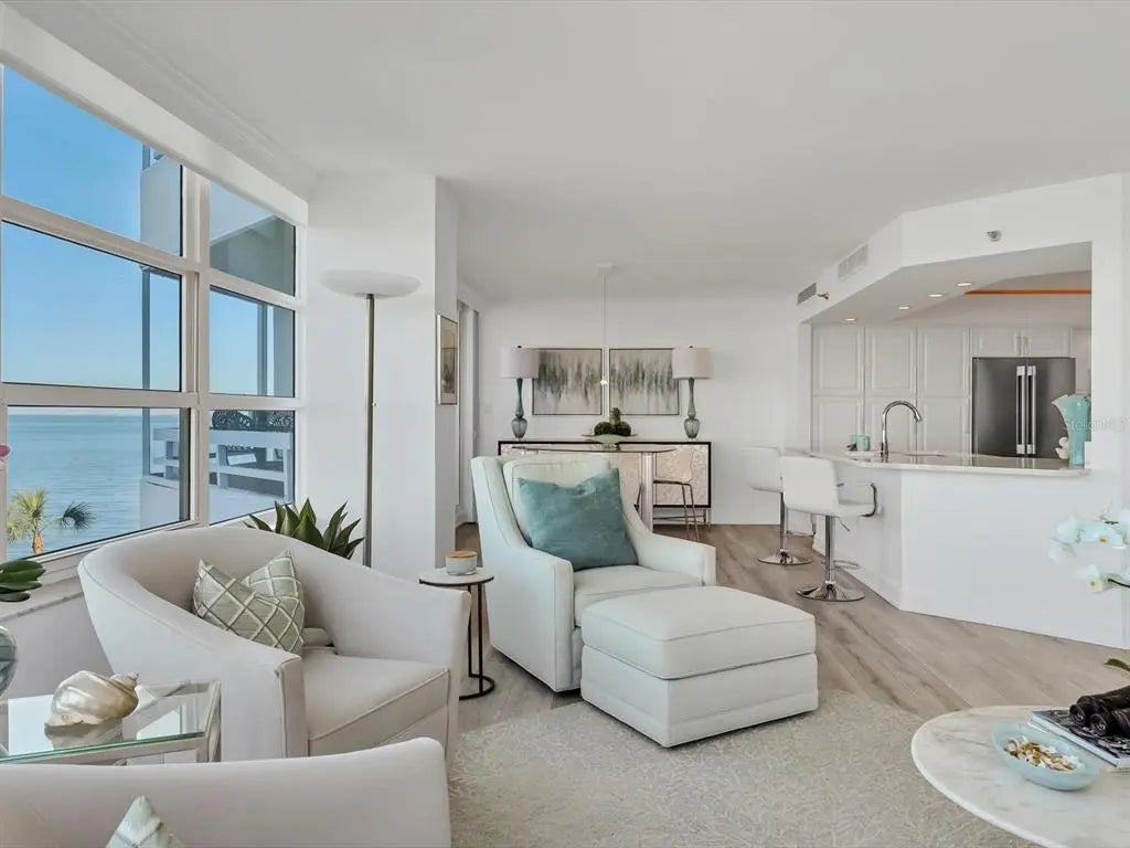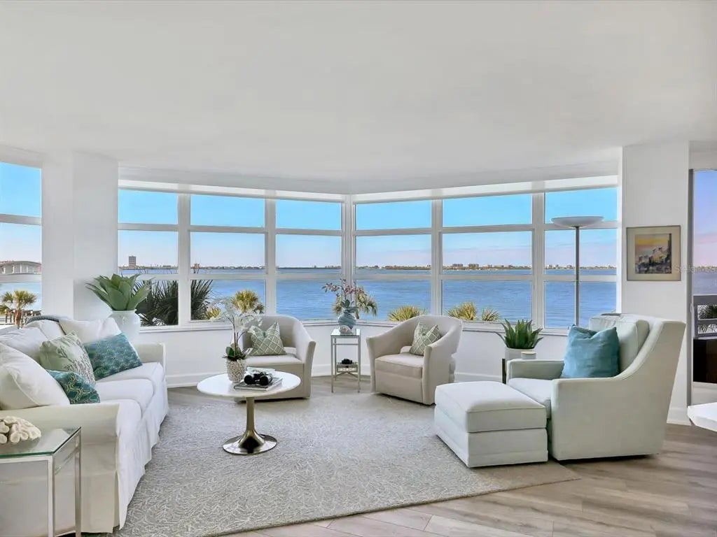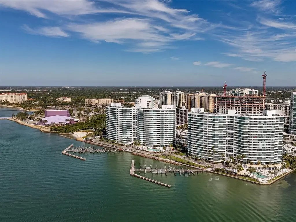 Exquisite Waterfront Luxury on Sarasota Bay. Live at the pinnacle of Sarasota’s waterfront lifestyle in this premier condominium offering unrivaled, forever-protected views of Sarasota Bay. Perched on the fourth floor and perfectly positioned along the water’s edge, this residence captures sweeping panoramas of the Ringling Bridge, St. Armands Circle, Longboat Key, and the glittering city skyline. Future construction can’t touch these views—what you see today is yours to savor for a lifetime. Located in the heart of Sarasota with direct water access, this exceptional property appeals to boating enthusiasts with available slips accommodating yachts up to 45 feet. Every convenience and cultural delight—world-class beaches, theaters, art galleries, museums, award-winning dining, and boutique shopping—is just a short stroll from your front door. This is resort-style living woven seamlessly into the best of city life. Step inside and experience elevated luxury at every turn. This recently renovated residence is completely move-in ready, offering meticulous upgrades and sophisticated finishes throughout. The spacious kitchen features newer cabinetry, sleek modern appliances, and captivating Bay views that make every meal feel special. Both bathrooms have been impeccably redesigned with premium, spa-quality finishes reminiscent of a five-star retreat. Hurricane-resistant lanai doors provide peace of mind without compromising the extraordinary vistas. Wake up in your serene primary suite and greet the day with coffee on your private balcony overlooking the water. In the evening, unwind on the living room balcony and take in breathtaking sunsets that paint the sky with color—night after night. The community’s amenities elevate daily living to an art form: lounge by the sun-drenched pool or indulge in the waterfront pool where the views are nothing short of spectacular. A state-of-the-art fitness center and additional premium facilities cater to every lifestyle. Once you experience this residence, you’ll understand why opportunities like this rarely come to market. This is more than a home—it’s unparalleled waterfront living.
