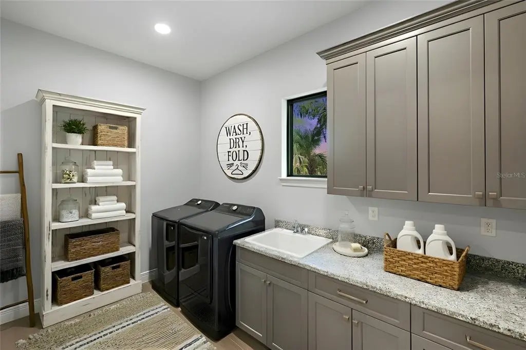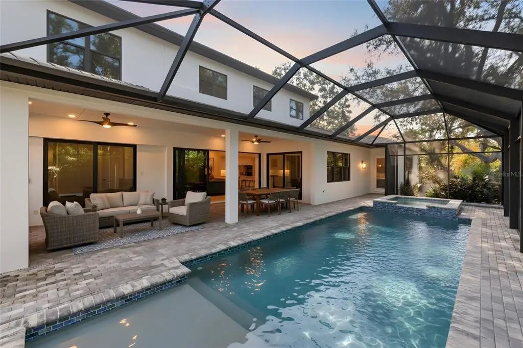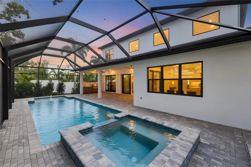 Experience Sarasota’s premier lifestyle from this just-completed, privately owned new construction home in the highly coveted Granada neighborhood, perfectly positioned 8 minutes to Siesta Key Beach, 4 minutes to Southside Village, and 8 minutes to downtown Sarasota. Enjoy the freedom of coastal living above the flood zone in a home built to the highest hurricane standards for lasting peace of mind. This British West Indies–inspired residence by award-winning Heritage Builders spans 3,810 square feet on an oversized .27-acre corner double lot, offering 5 bedrooms (or 4 plus bonus room), 4.5 baths, a dedicated office, and a 3-car garage. The setting captures the charm of Granada’s oak-lined, sidewalk streets and the convenience of a family-friendly community districted to top-rated Southside Elementary. Double entry doors open to soaring 20-foot ceilings, expansive glass sliders, and immediate views of the resort-style pool and tropical landscaping. The open-concept living space is anchored by a gourmet kitchen featuring luxury appliances, quartz countertops, custom white cabinetry, an oversized island, and a walk-in pantry. The adjacent dining area and family room with future wet bar provide the ideal layout for both entertaining and relaxed everyday living. The first-floor primary suite offers a private retreat with dual walk-in closets, pool access, and a spa-inspired bath with a walk-in rain shower and custom cabinetry. Also on the main level are an ensuite guest room, office, mudroom, and laundry room. Upstairs, two additional bedrooms, two full baths, and a spacious bonus room create the perfect space for guests, family, or a private lounge. Florida’s outdoor lifestyle takes center stage through sliding glass doors that open to the covered lanai with outdoor kitchen and an elevated spa with waterfall. The oversized pool and sun deck are surrounded by lush tropical landscaping, creating a private oasis for entertaining or relaxation. While the location offers proximity to the water, the home’s elevated position and hurricane-rated construction provide unmatched peace of mind. Concrete block construction, impact-rated windows, and a reinforced roof structure ensure durability, safety, and longevity, allowing you to enjoy Sarasota’s coastal lifestyle without compromise. Here, luxury means more than fine finishes—it is about confidence, craftsmanship, and care. From your morning coffee under the oaks to evenings spent poolside under the stars, every moment feels effortlessly elevated. Walk to Red Rock Park, launch your kayak at North Bridge, or explore nearby boutiques and restaurants in Southside Village. You are only minutes from downtown’s cultural scene and the powdery white sands of Siesta Key Beach. Move-in ready and privately owned, this home represents the best of Sarasota’s West of Trail luxury living with timeless design, modern safety, and a lifestyle built to endure. Schedule your private tour today and experience what it means to live beautifully above it all.