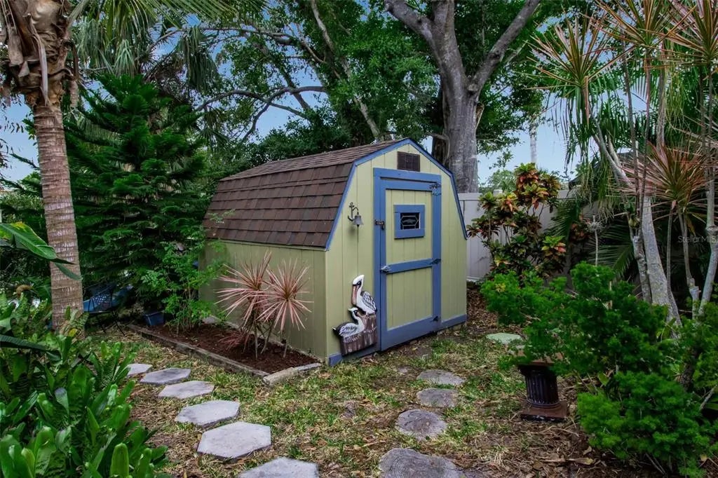 - Exterior FeaturesGarden, Outdoor Shower, Private Mailbox, Rain Gutters, Sliding Doors, Storage