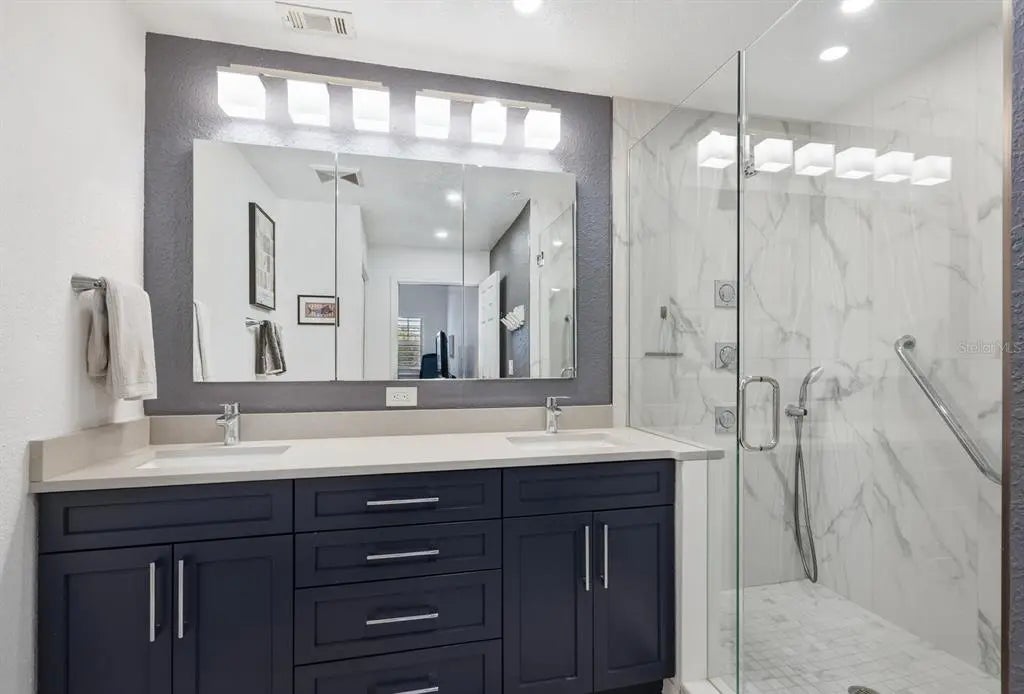 Welcome to refined downtown living at an exceptional value. Exquisitely renovated three-bedroom, two-bath corner residence; elevated finishes, sophisticated comfort & remarkable privacy, only one neighbor. Enter through the private courtyard & experience the home's sense of calm & understated luxury. Located on the coveted first floor, you will find soaring eleven-foot ceilings, effortless living with no need for elevators, a blend of warm wood & ceramic tile flooring, complemented by elegant shutters throughout. Gourmet kitchen with quartz countertops, soft-close cabinetry, updated appliances, abundant storage. Enhanced soundproofing between bedrooms creates a serene environment. Primary suite is a true retreat, featuring an oversized custom closet crafted with high-end built-ins, a spa-like bath with dual sinks & an impressively large shower. Two parking spaces & two rare, separate storage units are included. Furniture is negotiable. Complex offers abundant amenities, including a 24-hour concierge, library, billiards room, fitness center, saunas, a heated pool and spa, outdoor dining areas, & guest suites. Pet-friendly. Close to Publix, cafes, dining & steps from The Bay, the city's vibrant waterfront park for outdoor events & cultural gatherings. Experience the elegance, convenience, and sophistication of downtown Sarasota living without the downtown price tag.