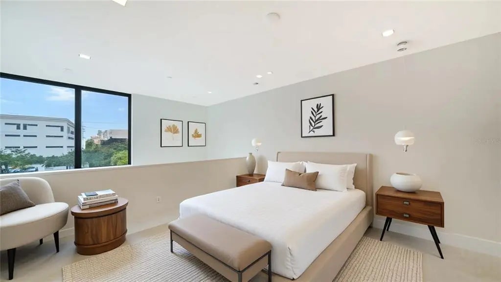 One or more photo(s) has been virtually staged. Brand new construction (never occupied), luxurious condo in the heart of Rosemary District. 2 bedroom, 2 bathroom "loft style" unit is ready for immediate occupancy. Another mesmerizing contemporary design by award-winning architects Halflants + Pichette. This unit has very HIGH CEILINGS going all the way up to floor 2. The patio off of the kitchen and a secured and covered parking space comes with with this unit with direct power for ELECTRIC CAR charging. Gated community (no guard) and locked gated entrances from the sidewalk. Add in a dozen restaurants within a three-block radius, along with art galleries, the Sarasota Ballet, Saturday morning farmers market and Whole Foods and you now have the delights of living in the Rosemary District. Garden living with the excitement of all that downtown living is all about. Elevators and stairwells escort you to your front door. Enjoy gated covered parking with an assigned reserved parking space with wiring for an EV charger. Contemporary cabinetry, quartz countertops, superb appliance packages, solid core doors, porcelain tile floors inside and out and efficient, insulated impact glass make your home a very special place. Fine and casual dining, the theater, the opera, art galleries, world-class shopping and Sarasota Bayfront Park. Just over the John Ringling Bridge to Lido Beach and delightful shopping of St Armands Circle! Call for your private showing today. Buyers and/or Buyers Agent to verify all pertinent information, including room sizes, as they may be approximate. All Association information should be verified with Property Management Company or Association. Information deemed reliable but not guaranteed.