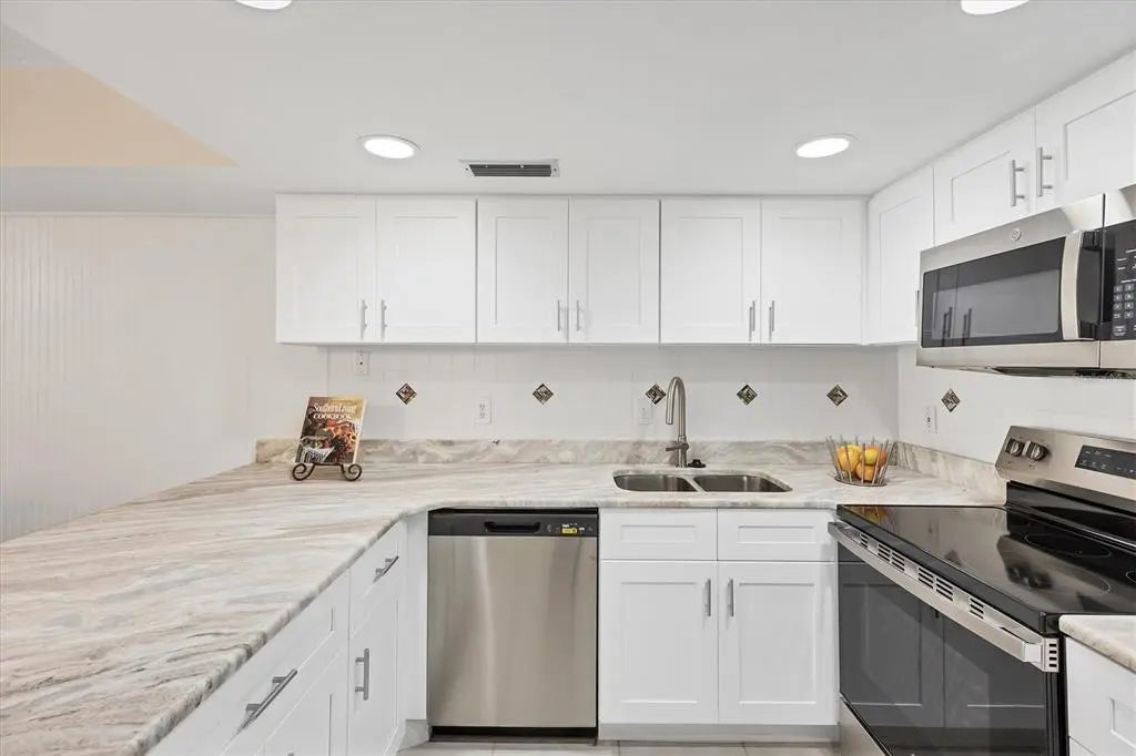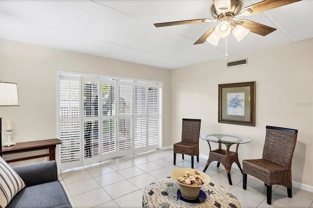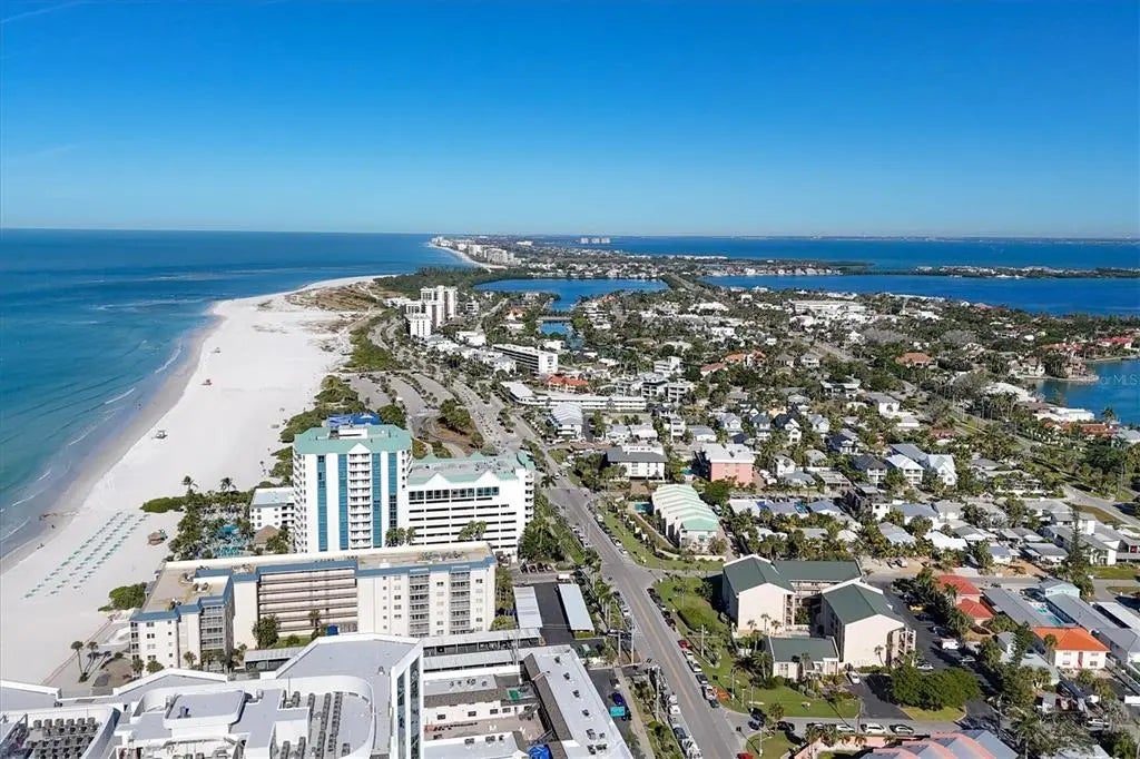 Coastal ease meets everyday convenience in this ground-floor retreat on Lido Key—just steps to the sand with beach access right across the street. Shade trees protect a private, fenced lanai paved in classic red brick; triple sliders open from the Florida room so indoor and outdoor living flow as one. Accordion shutters allow quiet separation when desired, or open wide to create an airy great room for gathering. The kitchen carries a fresh, coastal-meets-club vibe in its countertops and invites company to linger at a breakfast bar that comfortably seats three. A generous dining area, framed by floor-to-ceiling bead board, adds character rarely found today. The split plan enhances privacy: the north-facing primary suite avoids harsh morning sun and features a spacious walk-through closet to an updated bath with full shower, while the guest bedroom sits at the opposite end of the home. Live like you’re on vacation—pop over to the Lido Beach Resort, wander down to the Lido Pavilion to socialize, then head to St. Armands Circle for dinner and boutique shopping. Love the outdoors? Enjoy bike lanes along Benjamin Franklin Dr. and trails through both North and South Lido Parks. Whether you’re escaping for the season or sneaking away for the weekend, this easy, low-maintenance condo is the perfect lock-and-leave beach haven.