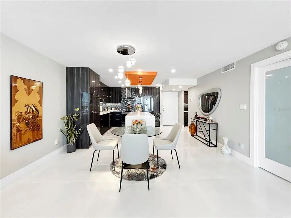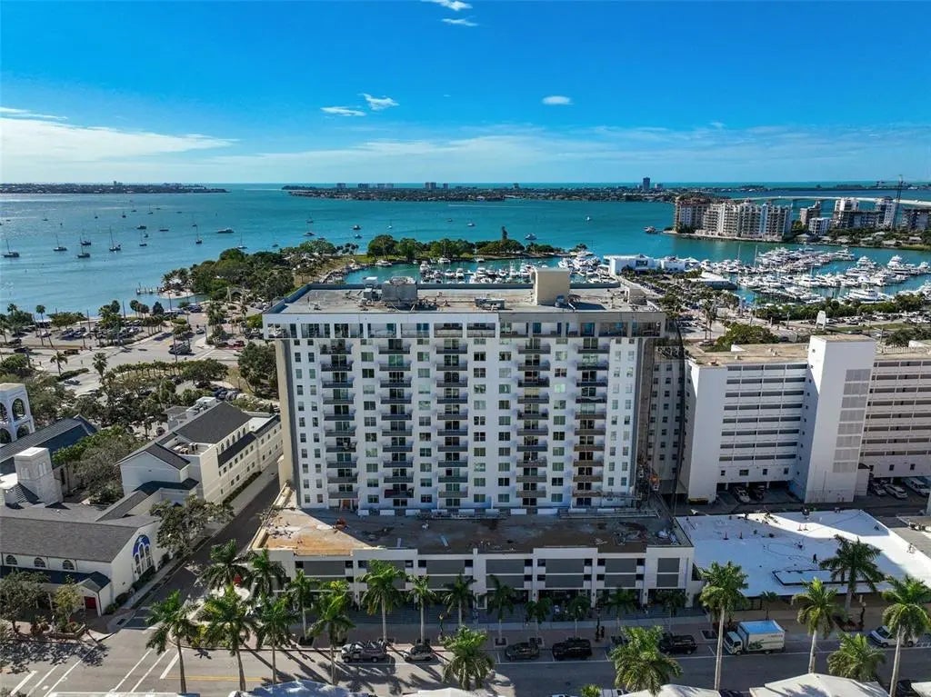 The asking price reflects an independent exterior bank appraisal on 10/03/25, so it did not include the furniture. Welcome to The 101 Condominiums overlooking Sarasota bayfront, one of the best locations in the heart of downtown Sarasota. This beautiful unit has been completely and smartly renovated ($133000+) to become a show stopper among its contemporaries. Featured on Sarasota Magazine Nov-Dec 2022, this one bedroom 2 full baths home offers the epitome of elegance, luxury, comfort and urban living. The kitchen boasts an expansive quartz waterfall style island, beautiful cabinatory/pantry and a luxurious tile backsplash. Designer Samsung appliances include the refrigerator, range, dishwasher and a drawer microwave. There is an under the sink osmosis system for your clean drinking and cooking water.There are ample eating spaces at the island or close by dining rarea. The laundry room is equipped with stacked Bosch washer and dryer and additional cabinets and shelving. There is also a drybar with cabinets and a wine cooler. The spacious bedroom has a walk-in closet and double sink with a lighted mirror. There are 30inch porcelain tiles throughout the home. All doors are shaded glass. There is also a Bosch surround sound for your music listening enhancement. The sunny balcony overlooks Palm Avenue with its art galleries, antique shops, resraurants and seosenal street music and dance and it is perfect for your morning coffee or evening glass of wine. The Whole Food market, Selby Library, famous Saturday's Farmer's market and the Main Street with all its offerings are just stepped away. Across the street from Island Park, you will find Marina Jacks with deep harbor docking, waterfront restaurant and nightly dancing and entertainment. The 101 condominiums multi-million dollar modernization project is ongoing. If you are looking for a one bedroom 2 bath in one of the best Sarasota downtown locations with outstanding design and renovation and existing high end furniture and wall arts, you owe it to yourself to visit this home. the monthly association fee includs bacic cable, internet and watrer. The owner is a real estate broker.