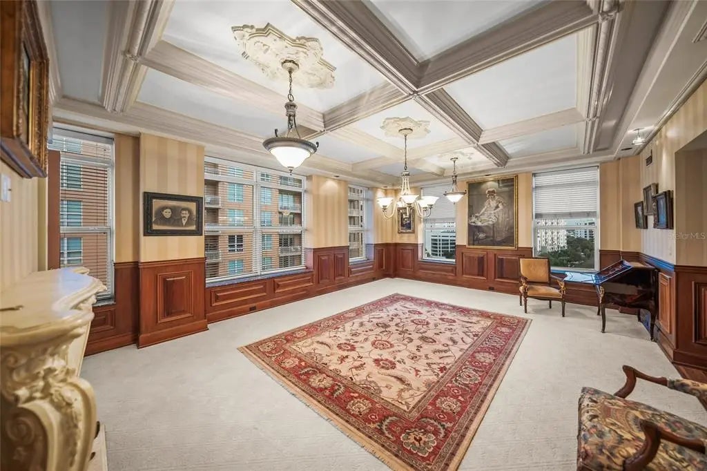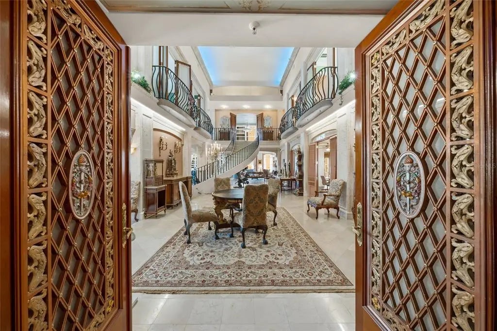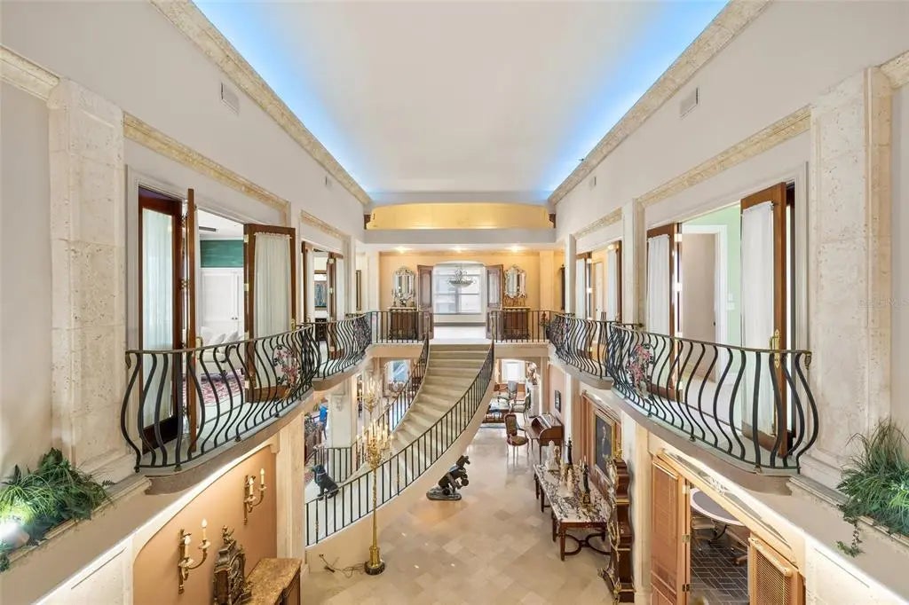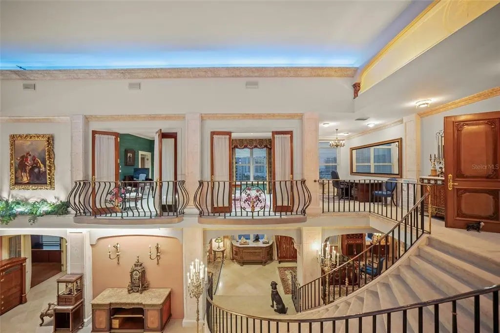 SPECTACULAR PENTHOUSE WITH TIMELESS GRANDEUR & SWEEPING GULF/BAY/DOWNTOWN CITY VIEWS. The Orange Blossom Tower is one of Sarasota’s most treasured landmark buildings and this extraordinary two-story penthouse masterfully blends historic elegance with modern luxury. Encompassing an impressive 7,188 square feet and capturing panoramic views with its's 47 windows of the Gulf & Bay and the city’s vibrant cultural district, this residence offers an incomparable lifestyle in the heart of downtown. IMPECCABLE DESIGN & EXQUISITE CRAFTSMANSHIP A dramatic 26-foot atrium and gallery—anchored by a breathtaking wraparound staircase—creates an unforgettable entrance that sets the tone for the home’s refined sophistication. Gleaming marble floors, a soaring cathedral ceiling, and architecturally rich details showcase unwavering attention to quality. The expansive great room is tailor-made for elegant entertaining, complemented by a formal dining room distinguished by a medallioned tray ceiling, solid mahogany wainscoting, and other artisan finishes. The commercial-grade gourmet kitchen is designed to impress even the most discerning chef. For quiet moments and productivity, the mahogany-paneled office/library offers a serene retreat with direct access to a private elevator foyer. The luxurious primary suite promises restful indulgence with its spa-inspired bath featuring dual sinks, a hydromassage tub, sauna, and steam shower. Two additional bedrooms overlook the central atrium with charming Juliet balconies, adding to the home’s architectural romance. A private rooftop terrace crowns the residence, delivering 360-degree bay and city vistas—an unforgettable setting for sunset gatherings, open-air dining, or front-row seats to Sarasota’s Fourth of July fireworks. Additional highlights include keystone columns, custom mahogany millwork, eight-foot hand-carved mahogany doors, garage parking, and a generous bonus room with potential for an additional full bath conveniently located near the rooftop terrace. A PRESTIGIOUS ADDRESS IN THE HEART OF SARASOTA Originally built in 1926 as the American National Bank—and later an apartment hotel frequented by Hollywood stars—Orange Blossom Tower stands as a distinguished landmark listed on local, state, and national historic registries. This building has an exclusive collection of just seven luxury residences atop two floors of commercial space, the building seamlessly pairs heritage with contemporary sophistication. An incredible Amenity to the Orange Blossom Tower is it enjoys all of the amenities of the 1350 Building 50 yards away to include 3 deeded parking spaces in the private parking garage, pool, work out room, business center, billiard room, TV gathering area, outdoor grills. Important to know the building’s Structural Integrity Reserve Study (SIRS) and Financial Reserve Study (FRS) were both completed in 2024, ensuring full compliance with current Florida regulations and giving buyers added peace of mind.
