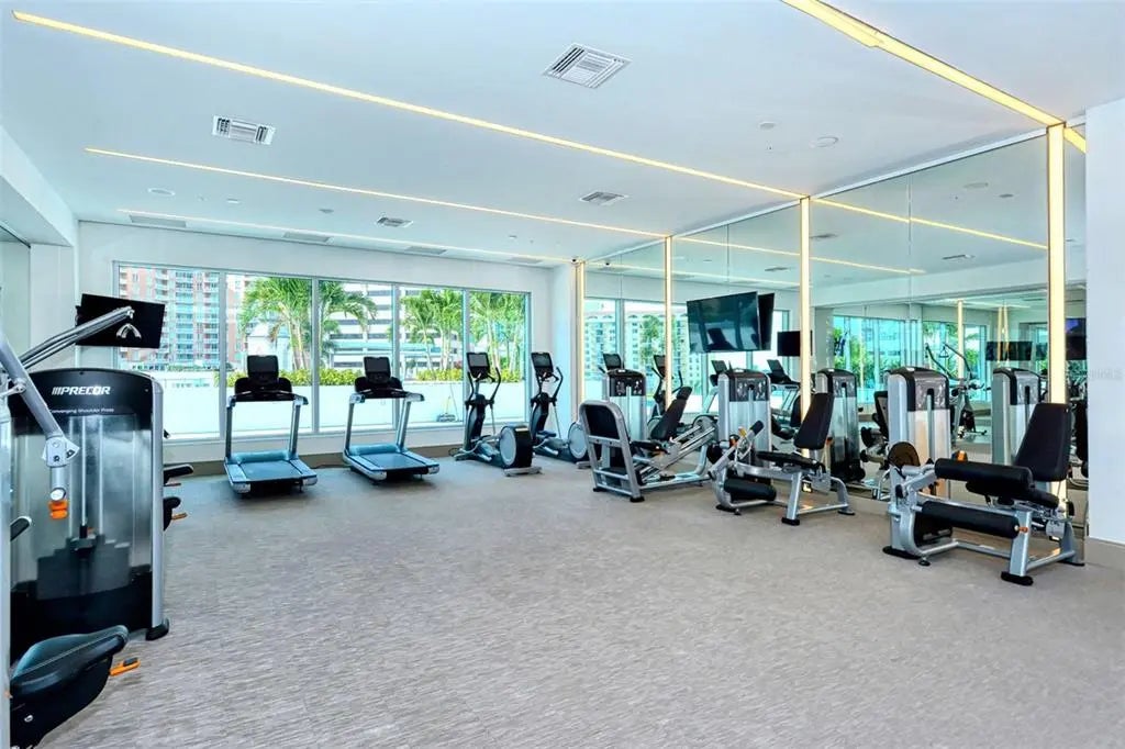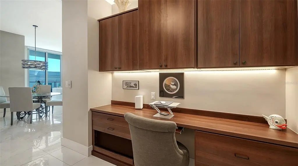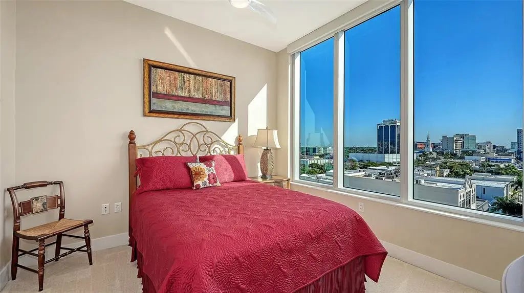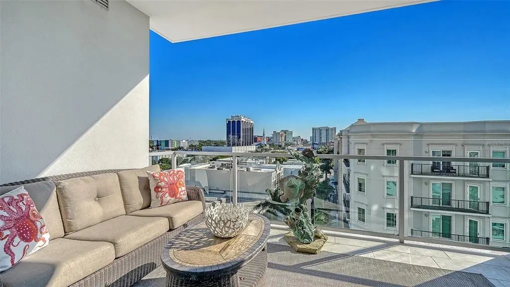 Welcome to The Mark- where it’s all happening in downtown Sarasota. This incredible city-view unit is the perfect height and position in the building- facing east for sun-filled mornings, it looks directly down State Street and at the city below. The Mark is a wonderfully amenitized newer building in the core of downtown Sarasota. Just out your front door is access to the finest in dining, shopping, and entertainment that Sarasota has to offer. Inside the building you will find a true oasis- you’ll be greeted by the friendly concierge, take the elevator up to you level and enjoy privacy and elegance. The amenities in the building include a heated pool and spa deck area with peek-a-boo views of the water and cityscape, outdoor seating and cabanas, a luxurious fitness center, meeting room, shared office area, grilling area, catering kitchen and much more. This unit stands out with one extra wide end parking space that was hand selected by the seller, and there is a 6x4 storage unit right across the hall. Inside this residence are lovely upgrades including tile in the main living area, automated blinds with blackout shades in the bedrooms, recessed can lighting, separate laundry room with sink, grass cloth accent walls and much more. You’ll love the open floor plan with bedrooms on either side, each with its own en-suite bathroom. There is a powder room for entertaining and abundant space for sitting and hosting in the main area. There is a tucked-away office area with built-ins, custom lighting throughout, and no storm concerns with impact glass windows in all openings! The luxurious kitchen features an island with bar seating, stainless steel appliances, custom glass tile backsplash and more. The primary suite offers abundant space, dual closets, bathroom with separately enclosed walk-in shower and commode, dual vanities, and access the balcony. The lovely east facing balcony is a great retreat to sit and let the day greet you, and even see the warm glow of sunset skies over the city in the evening. This unit has been lovingly cared for its original owner- don’t wait- schedule your private tour today!