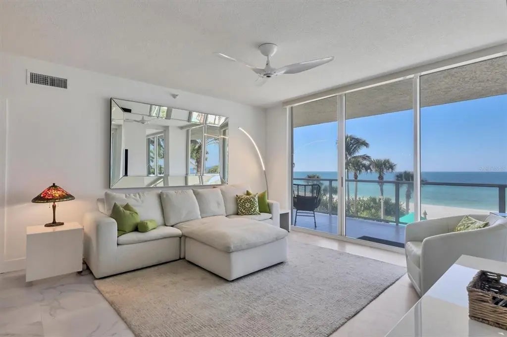 Experience luxury gulf-front living at L’Elegance on Lido Key Beach. This beautifully updated two-bedroom, two-bath residence offers stunning, unobstructed views of the Gulf of Mexico from every room. Recent updates include a contemporary and chic kitchen and bath design, porcelain tile flooring throughout, remote-control shades and a built-in Murphy bed in the second bedroom, ideal for maximizing comfort and functionality. A custom-designed window expansion in the primary bedroom enhances natural light and adds additional views of the Gulf vistas. Designed for comfort and elegance, the primary bath is a luxury retreat, showcasing a large soaking tub, an oversized walk-in shower and separate vanities. Both bedrooms and the living room have sliding glass doors to open to a full-length private balcony, extending the living space outdoors and offering a setting for peaceful mornings and breathtaking sunsets over the water. An additional plus is the unit features a full-size washer and dryer in the spacious in-unit laundry room. Other features are the remodel in 2022, air conditioner replaced in 2021 and water heater in 2021. The property also has a dedicated parking space in the parking garage. Directly on the Gulf of Mexico, L’Elegance is one of Lido Key’s premier beachfront communities. The building showcases expansive views of the Gulf, Sarasota Bay and downtown Sarasota skyline, and offers an exceptional array of amenities including an 85-foot year-round heated lap pool, Gulf-front spa, wading pool, direct private beach access, two Har-Tru tennis courts, a well-equipped fitness center with dry saunas in men’s and women’s locker rooms, underground assigned parking, and a gated entry with a state-of-the-art security access system. Gated with onsite guard and onsite management. Whether as a full-time residence or a coastal retreat, this exceptional home delivers the quintessential Lido Key lifestyle with luxury amenities, direct beachfront living and proximity to world-class dining, shopping and Sarasota’s vibrant cultural scene. Possible opportunity to purchase turnkey furnished. Please ask listing agent #1.