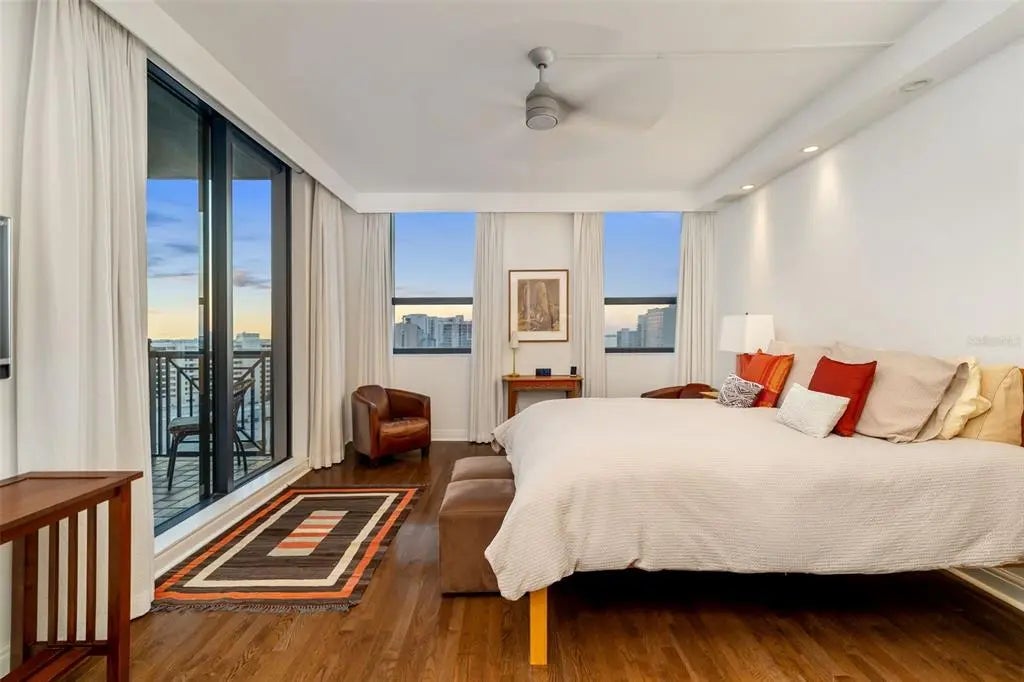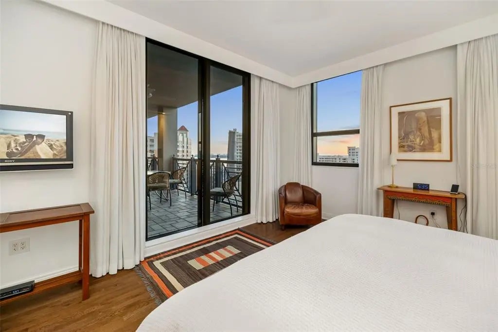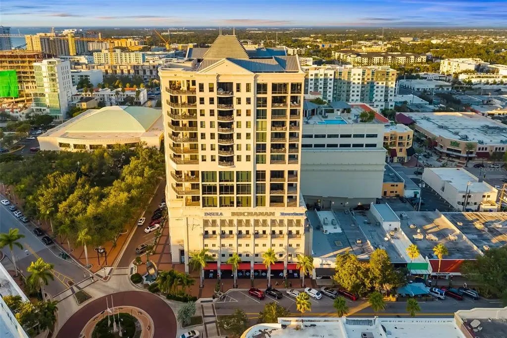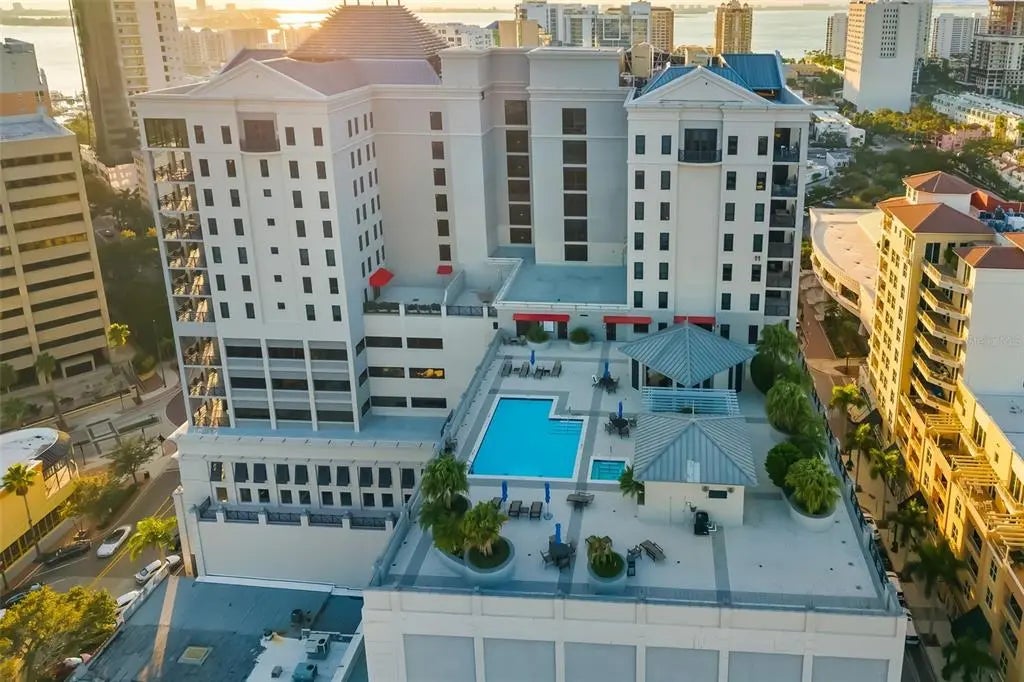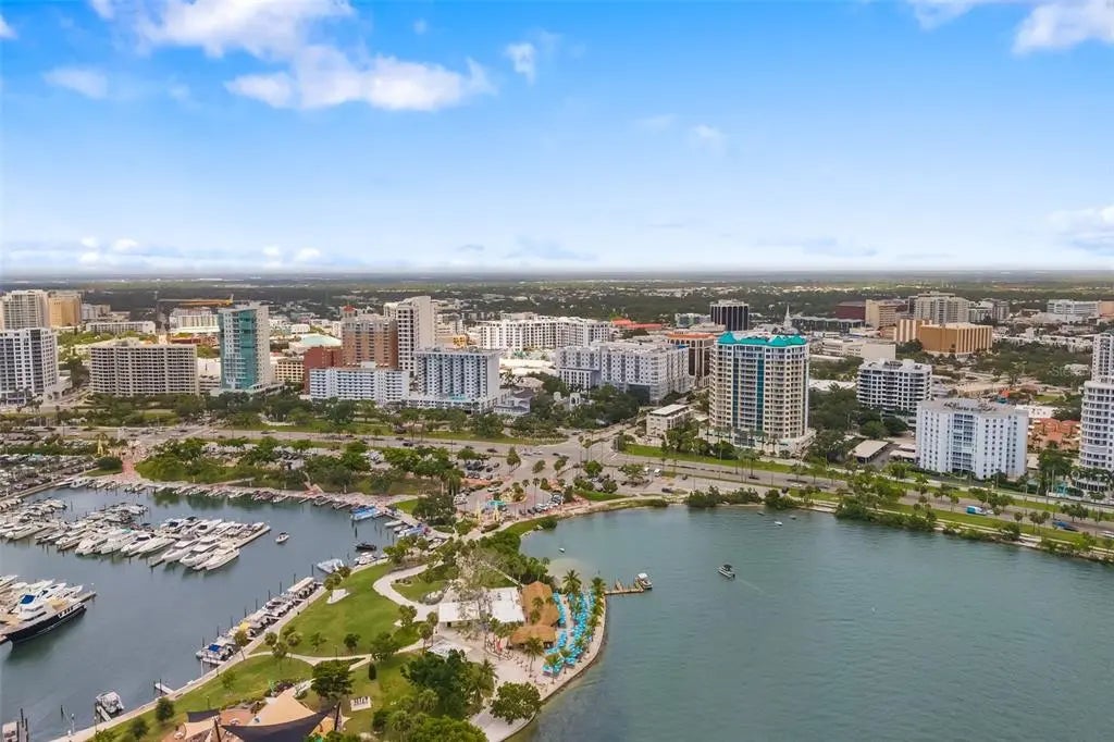 Experience luxury urban living at The Plaza at Five Points, one of downtown Sarasota’s sought-after high-rises. Ideally on the 14th floor, Residence 14D offers a refined north-facing vantage point with serene city and multiple water views from the spacious lanai with soft natural light, made for those who appreciate a stunning backdrop while being in the center of it all. Go outside and immerse yourself in Sarasota’s downtown lifestyle. Main Street dining, boutique shopping, cultural venues, theaters, Selby Library, weekend farmers markets and the sparkling Bayfront are all just near your door. Beaches, St. Armands Circle and the marina are only minutes away. The building itself is structurally sound providing peace of mind and is also connected to commercial businesses, which provide some financial contribution as well and has a resident on the commercial HOA board allowing all voices to be heard. Inside the building, residents enjoy a curated collection of resort-style amenities, including a heated pool and spa with cabana, sun deck with grilling area, fully equipped fitness center, a residents clubroom, boardroom/library, and a guest suite for visitors. Additional conveniences include concierge (7 a.m.-11 p.m.) valet services, secure access and garage parking, offering lock-and-leave convenience. Residence 14D blends the ease of luxury condominium living with the vibrancy of downtown Sarasota, making it an exceptional opportunity in desired address.
