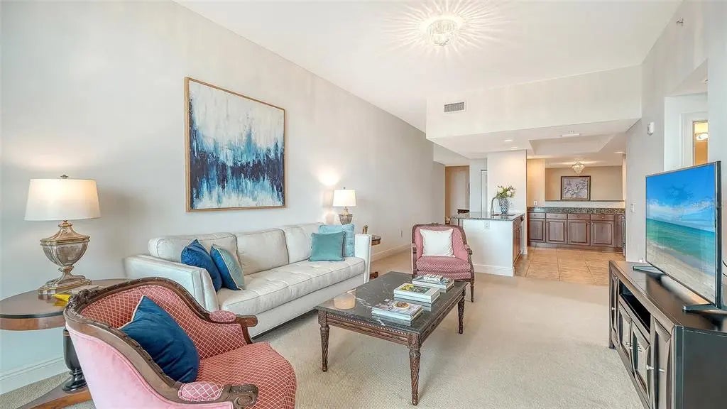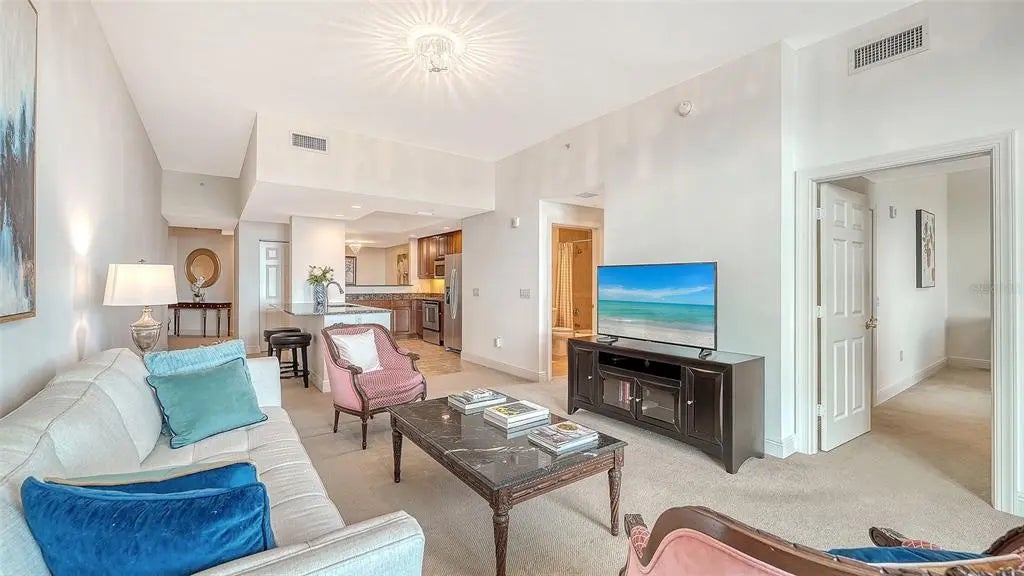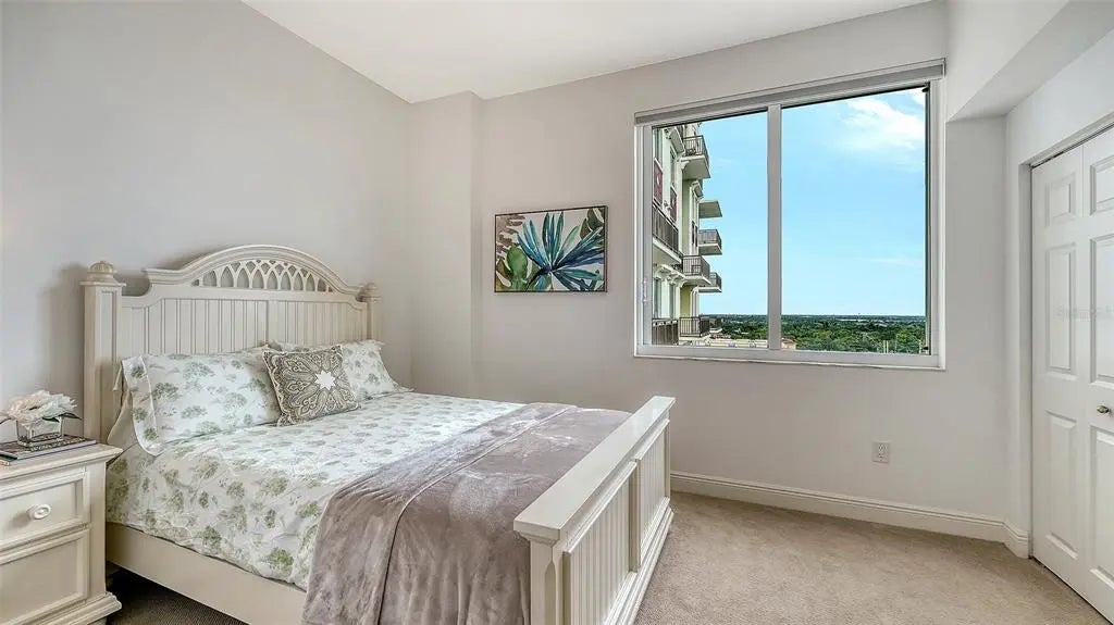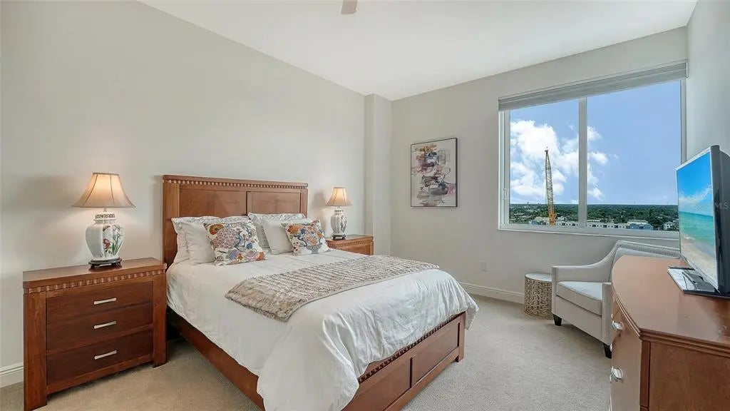 Welcome to Alinari, where it is all about the lifestyle. This pet-friendly condominium stands perfectly positioned on eleven acres in the heart of downtown Sarasota with lush, landscaped grounds and modern resort style amenities. This light and bright 15th floor unit with 1,484 square feet of living space features two bedrooms, office or dining room, and two baths within walking distance to the vibrant downtown scene. When entering the condo, the foyer leads to a bright open-concept floor plan that flows effortlessly to a terrace with an unobstructed scenic city view. High-ceiling and custom light fixtures create an airy atmosphere, making the living room an ideal space for entertaining. The spacious open kitchen boasts a tray ceiling, a low bar island with a breakfast bar, abundant wood cabinetry, Whirlpool stainless-steel appliances, granite countertops, and a closet pantry. Hurricane impact sliding doors connect the living area to the terrace, maximizing natural light and creating an inviting environment for relaxing while enjoying the stunning al fresco vistas. The primary suite offers serene comfort with a walk-in closet and a well-appointed en-suite. The floor plan offers a guest room and a full bath to provide a retreat for the family or guest, as well as a bonus room that can be used as a dining room or den/office. One unique amenity stands out: three guest suites are available in the building to accommodate additional overnight guests. Alinari delivers legendary services and desirable amenities including: 24/7 concierge service and security, on-site management and maintenance, business center, a heated lap pool and spa, fitness center, sauna, massage room, and an oversized club room and kitchen for gatherings. Residents can enjoy a climate-controlled wine room with private storage lockers, a theater with stadium seating, card and billiard room, business center, storage, EV charging stations and secure under building parking. Alinari offers a large, privately owned fenced green space for pets and parties, and additional condominium-owned development of land. You are just steps from the iconic Van Wezel Performing Arts Hall, Bayfront Park, St. Armand's Circle, and Lido Beach. This condo offers the perfect blend of comfort and convenience with a true sense of community. Whether you are looking for that perfect home, or prime investment property – this is a perfect opportunity to experience the ultimate blend of nature, culture, and upscale downtown living at its finest.