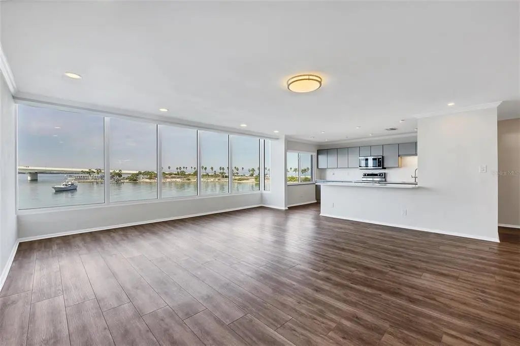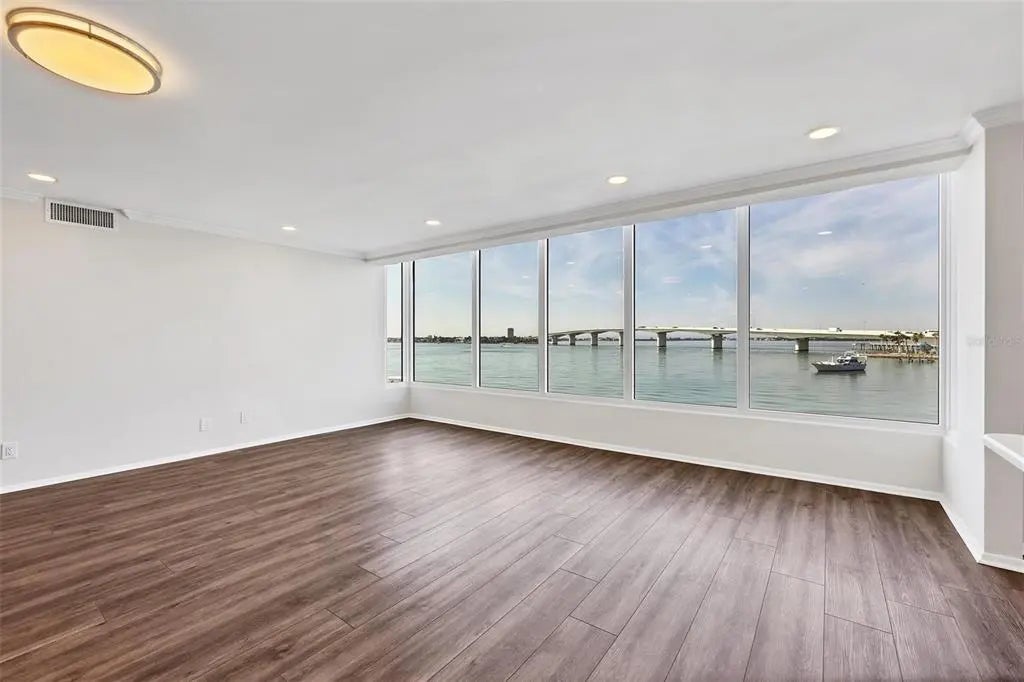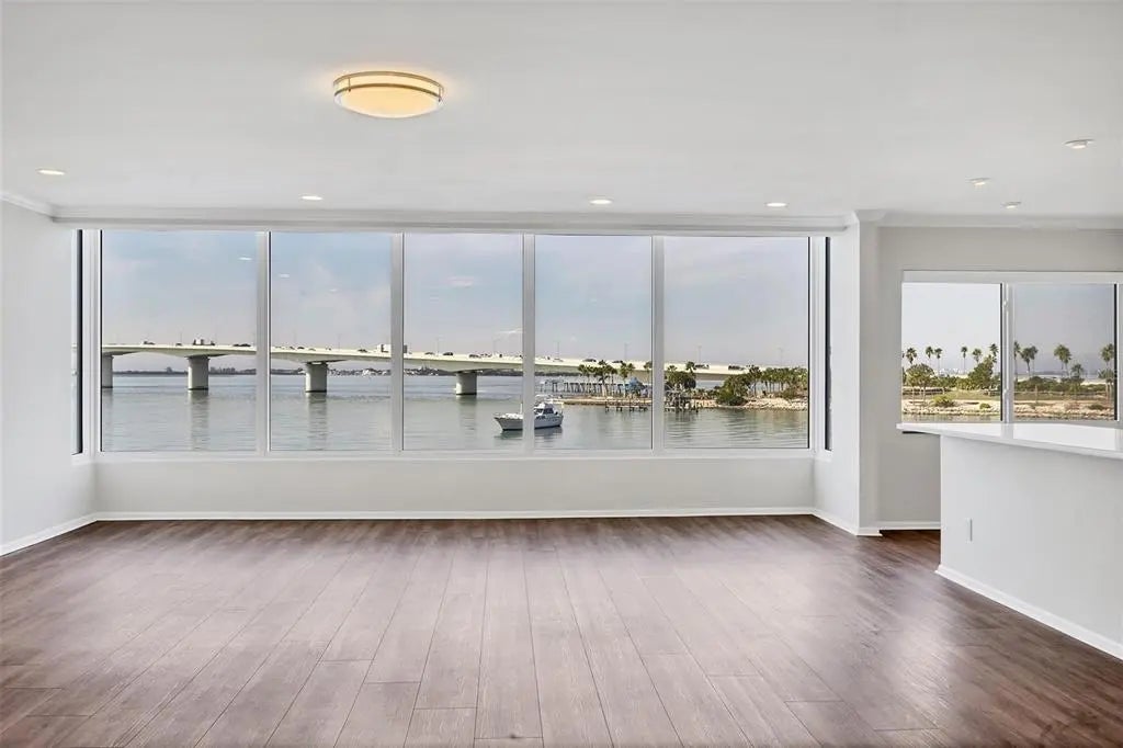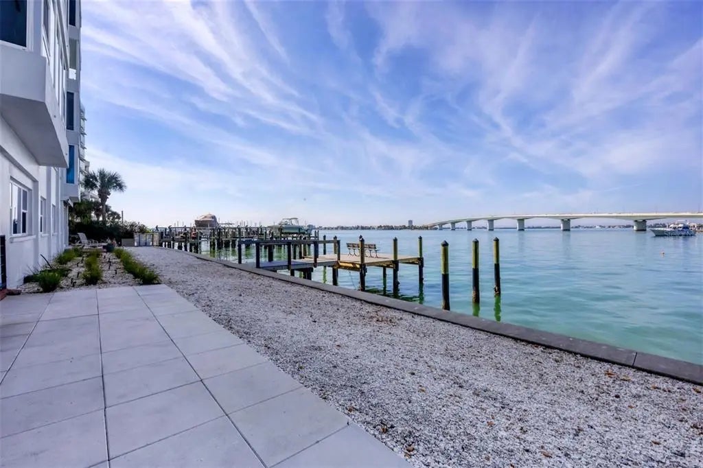 Renovated waterfront condominium in the sought-after Golden Gate Point neighborhood. Sleek modern design with open kitchen featuring custom cabinets, quartz counters and Kitchen-Aid appliances. Coveted great room design with crown molding, custom built-ins, modern light fixtures and luxury vinyl planking. Owners suite has 2 closets, updated bath with porcelain tile, sliding glass shower door and modern fixtures… both lighting and plumbing. Guest bath has been updated as well. Unit has laundry room with utility sink and more custom storage. All main living areas have picture perfect views from impact windows. Enjoy sunsets over the Ringling Bridge, views of Bird Key, an ever changing array of boats in the Bay, and even an occasional dolphin. The condominium association has done a modernization over the past few years. They have done a remarkable job creating an inviting, modern look to this building. Updated composite dock has room to enjoy the views of Sarasota Bay. Golden Gate Point is a short distance to Marina, The Bay Park, Harts Landing, Lido Beach, St Armands Circle, downtown’s culture district, restaurants and shoppin
