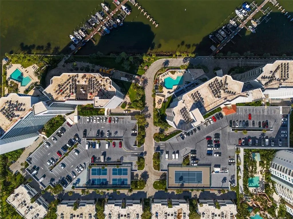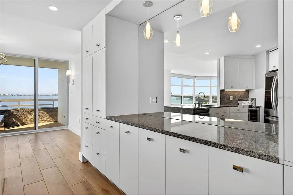 One or more photo(s) has been virtually staged. Welcome to the extraordinary Waterfront Residence at Condo on the Bay, a premier gated community directly on Sarasota Bay. Location is Everything! This very desirable mid-building location offers not only the breathtaking panoramic views that stretch across the sparkling Bay to the Ringling Bridge and Longboat Key, but it also offers the bonus of watching boats passing by and the opportunity to observe the active marine life with soaring pelicans and the frequently seen dolphin frolicking in the Bay. Completely renovated in 2023 with the touches of a renowned designer, this Van Gogh unit with its modern open floor plan offers wall to wall windows and expansive sliding glass doors, filling every room with sunlight creating a warm and sophisticated atmosphere. No detail was missed and no expense spared, with this renovation, including tankless water heater, full house filtration system and RO drinking water filtration system. The custom cabinetry, porcelain tile floors, elegant hardware and lighting fixtures along with the upscale kitchen appliances offers a kitchen appealing to the gourmet chef or the casual entertainer. The primary suite is a serene retreat, with its own private terrace also with stunning Bay views, an elegant ensuite bath with double vanity and oversized shower, offering a spa-like escape. The second bedroom doubles beautifully as a guest room or office/den, outfitted with a convenient queen Murphy bed and wall to wall windows. Beyond your door Condo on the Bay offers many amenities: two heated swimming pools, a grilling station, private boat docks with fishing stations, tennis and pickleball courts, two fitness centers, elevated sky lobbies perfect for your larger gatherings or just to enjoy the sunset. Each Tower has a social room equipped with a full kitchen where planned events happen regularly if you want to meet your neighbors. There is assigned lower garage parking with abundant upper deck guest spaces plus EV charging stations. Perfectly located next to Sarasota's new 40-acre waterfront park, The Bay, The Van Wezel Performing Arts Center and minutes from downtowns vibrant dining and shopping, The Rosemary District, and the nearby St. Armands Circle, Lido Beach and the SRQ Airport. All just a short drive away! Condo on the Bay is more than a luxury residence; it's an invitation to embrace the very best of Sarasota's waterfront lifestyle.