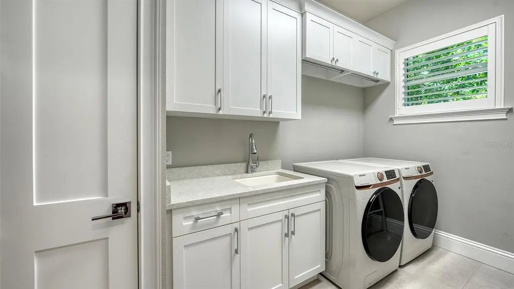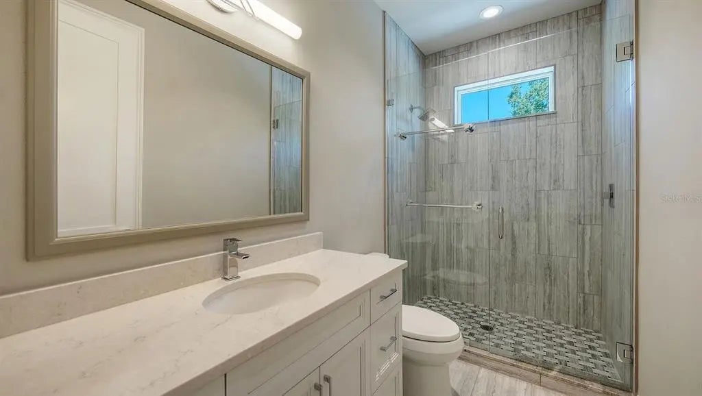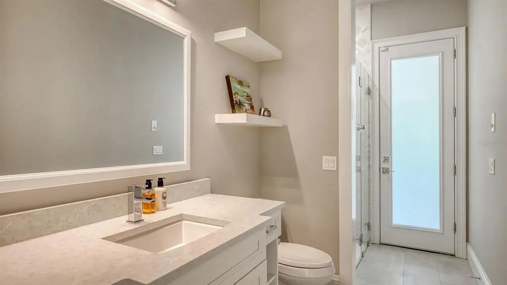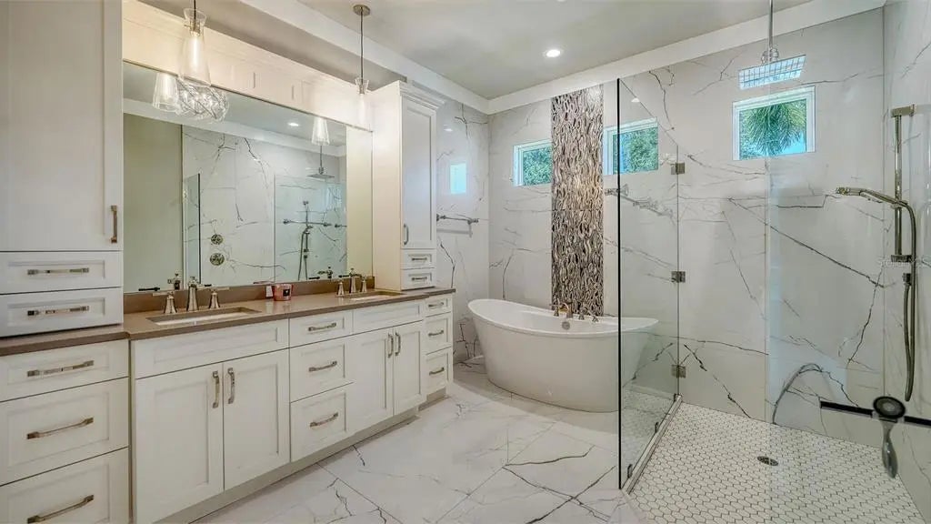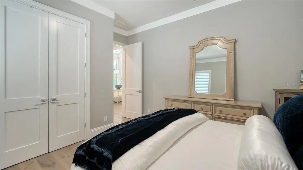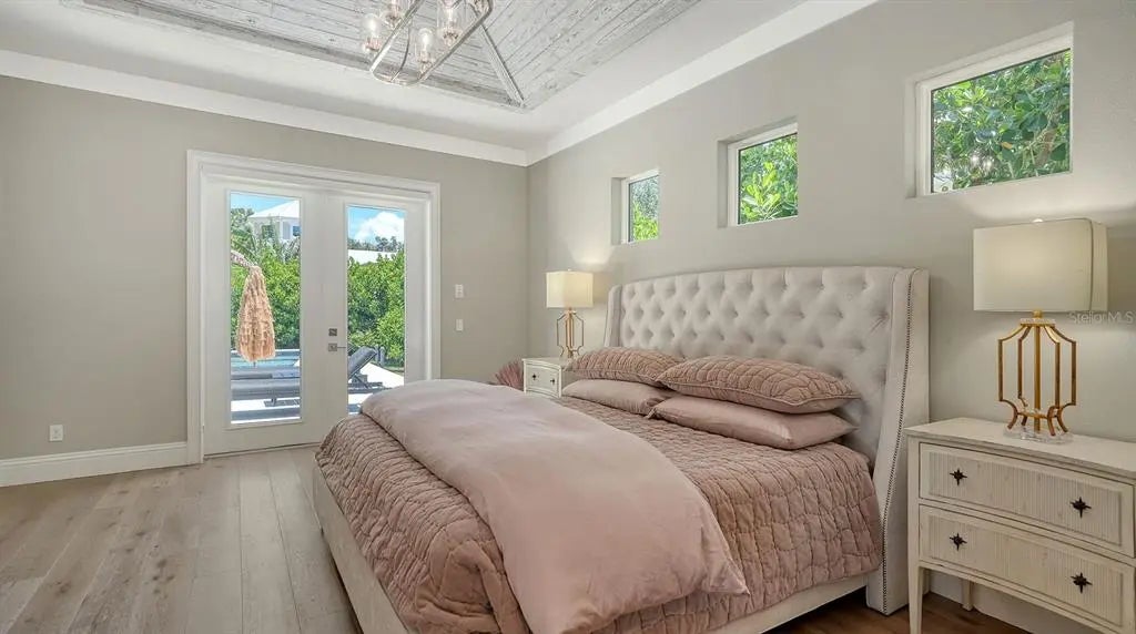 Luxury living in beautiful park like neighborhood West of Trail. Close to anything and everything. Walking distance to Southside village and Southside elementary and Sarasota Memorial Hospital. Single step into Foyer greets the eye with wall to wall floor to ceiling impact pocketing sliders lending views of the sparkling pool/ hot tub with water/fire features. Enjoy the covered outdoor kitchen and living area complete with gas fireplace Hardwood throughout all living areas and tile in all bathrooms/laundry room. Primary and Second Bed down with split plan. Second bed down could also make a great office/ yoga studio and allow second bath down to be pool bath. Home feels like new and has been gently lived in and impeccably maintained. The open floor plan allows for seamless transition from dining to living areas both inside and out...feels cozy yet, perfect for entertaining! Solid doors, custom cabinetry, high-efficiency appliances and LED lighting. The home is flooded with natural light and the north facing rear yard allows for opportune use! Upstairs leads to 2 more beds and full baths and a flex room with wet bar. Artificial turf and beautiful Florida Native plantings are watered through well system for low cost and ease of maintenance. Super quiet location but central to EVERYTHING!