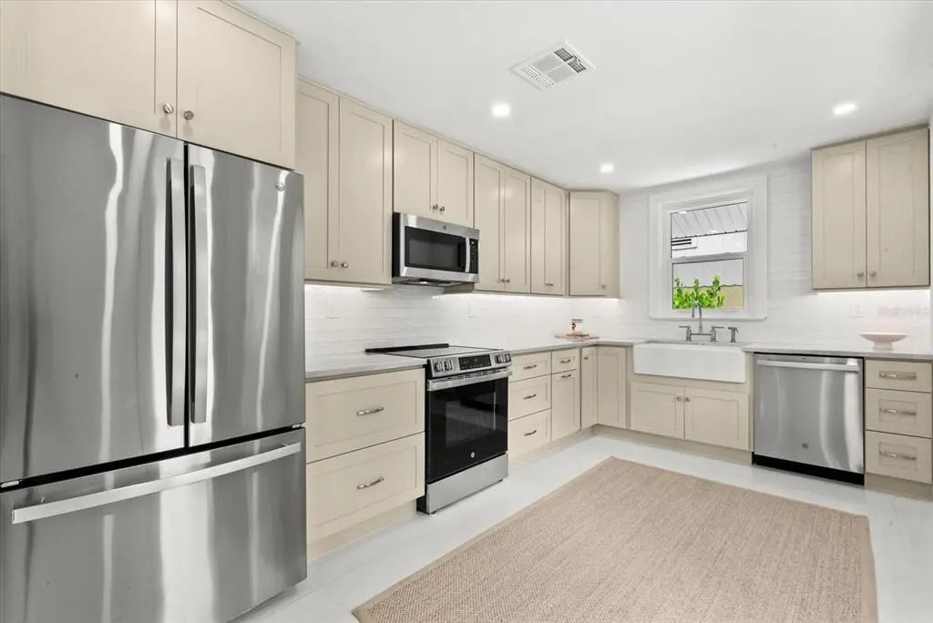Fully furnished charming Fully Remodeled 3-Bedroom Cottage – Steps from Indian Beach & Starbucks and NOT in a flood zone! Nestled in the heart of the highly sought-after West of Trail neighborhood, Mindy Webb Design Development presents completely remodeled 3-bedroom, 2-bath cottage seamlessly blends modern updates with timeless charm. No detail was overlooked in this stunning transformation—featuring brand-new Impact window package, electrical, plumbing, air conditioning, water heater, and a beautifully designed kitchen with all-new appliances. Both bathrooms have been thoughtfully renovated, providing a spa-like retreat. Step outside to enjoy a lush new landscaping package with irrigation, creating a picturesque setting for relaxing or entertaining. This home is a walker’s and biker’s paradise, located just a short stroll to Indian Beach, where breathtaking sunsets await, and only one minute from Starbucks for your morning coffee fix. Experience city living at its best, with downtown Sarasota, SRQ Airport, and world-renowned beaches just minutes away. Don’t miss this rare opportunity to own a move-in-ready designer gem in one of Sarasota’s most charming and established neighborhoods! Schedule your private showing today.
