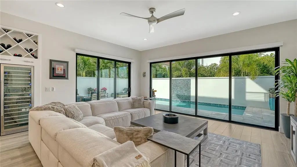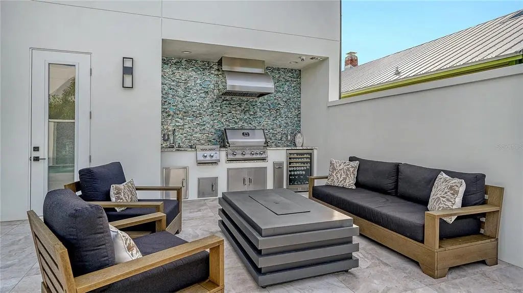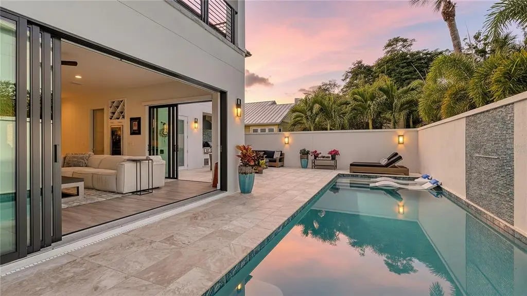 One or more photo(s) has been virtually staged. Welcome to 1659 Devonshire Lane in the heart of Downtown Sarasota's Laurel Park neighborhood. This beautifully designed 2,754 sq. ft. residence completed in 2024 offers four spacious bedrooms and three and a half bathrooms, blending elegance with functionality. The open-concept kitchen and living area are perfect for entertaining and showcase premium stainless steel Thermador appliances, including a gas range with hood and a built-in coffee/tea beverage center for added convenience, additionally a walk-in pantry adds ample storage and the large kitchen island accommodates up to seven, a separate ice maker and two wine coolers that can accommodate over 200 bottles. Step outside to your private oasis featuring a heated saltwater pool enhanced by four fountains, a waterfall feature and colorful lights that enhance the pool at night and a beautiful outdoor kitchen, all set within gracefully textured stucco walls, perfect for entertaining. Enjoy added conveniences such as a full-house Generac backup generator, reverse osmosis water filtration system under the kitchen sink with separate faucet for drinking, and a water softener/filtration system. Constructed entirely of block with cat 5 hurricane windows, stucco exterior and durable metal roof, this home boasts quartz countertops throughout, an irrigation system, and a two-car garage with epoxy flooring. The outdoor spaces are equally impressive, with a marble pool deck on a concrete base, a covered marble front porch, and two balconies—one front and one rear—featuring ceiling fans and porcelain tile flooring. Additional amenities include a half bath off the pool deck and outdoor shower for added convenience. The primary suite offers a luxurious ensuite bath and a large walk-in closet, creating a serene retreat within this exceptional property. The two upstairs guest bedrooms are separated by a Jack and Jill bathroom with dual sink vanity and a large walk-in shower with a separate handheld sprayer, bench seating and a window for natural light. The first floor bedroom can be used as office or den with an attached full bathroom with walk-in shower with separate handheld sprayer. All of this located in the heart of downtown Sarasota just 4 blocks to Main Street and 1 block to Historic Burns Court shops and restaurants. Just one block to Marie Selby Botanical Gardens and a short walk to Bayfront Park and Marina. A two mile drive takes you across the John Ringling Causeway bridge to Lido Beach and St Armands Circle and a short 15 minute drive south takes you to the world famous Siesta Key Beach. This highly sought after convenient location in downtown Sarasota won't last long so book your tour today!! Some photos have been virtually staged. All measurements are approximate and should not be relied upon as exact.