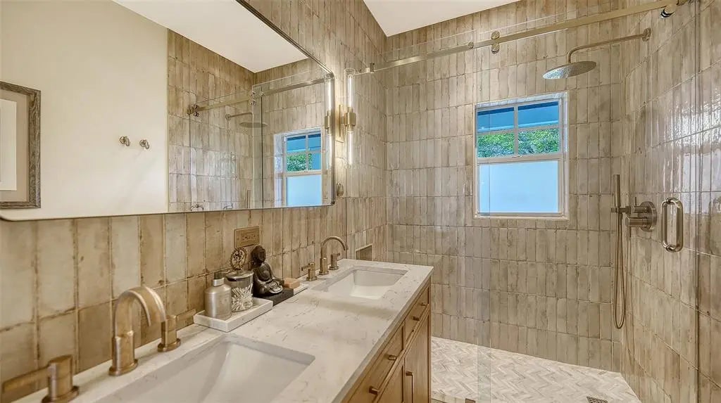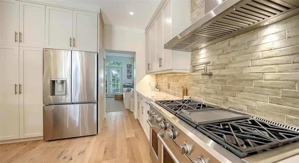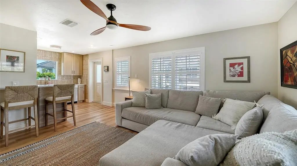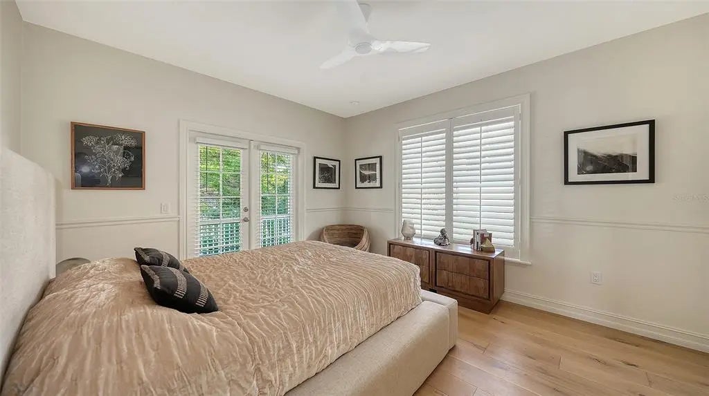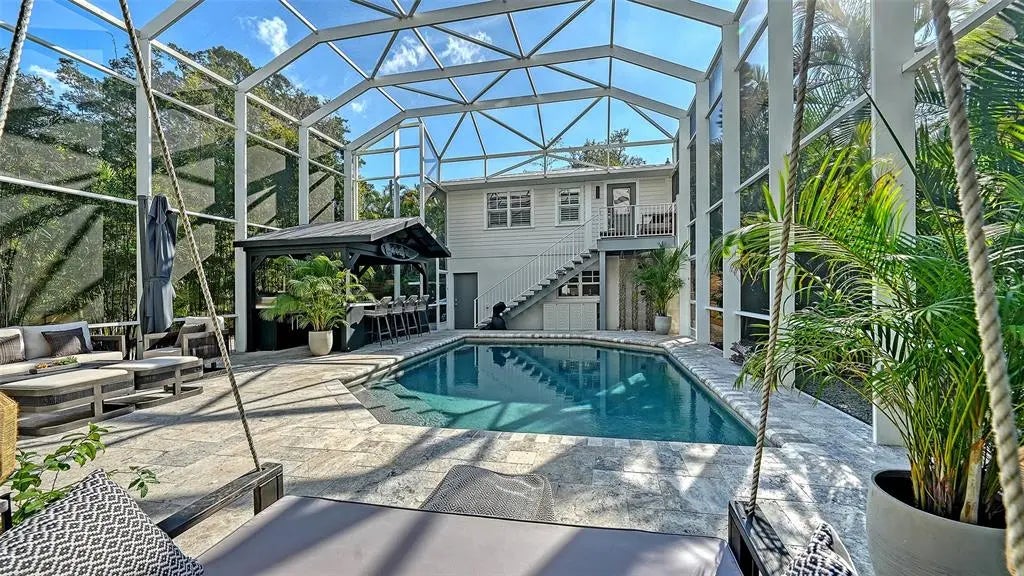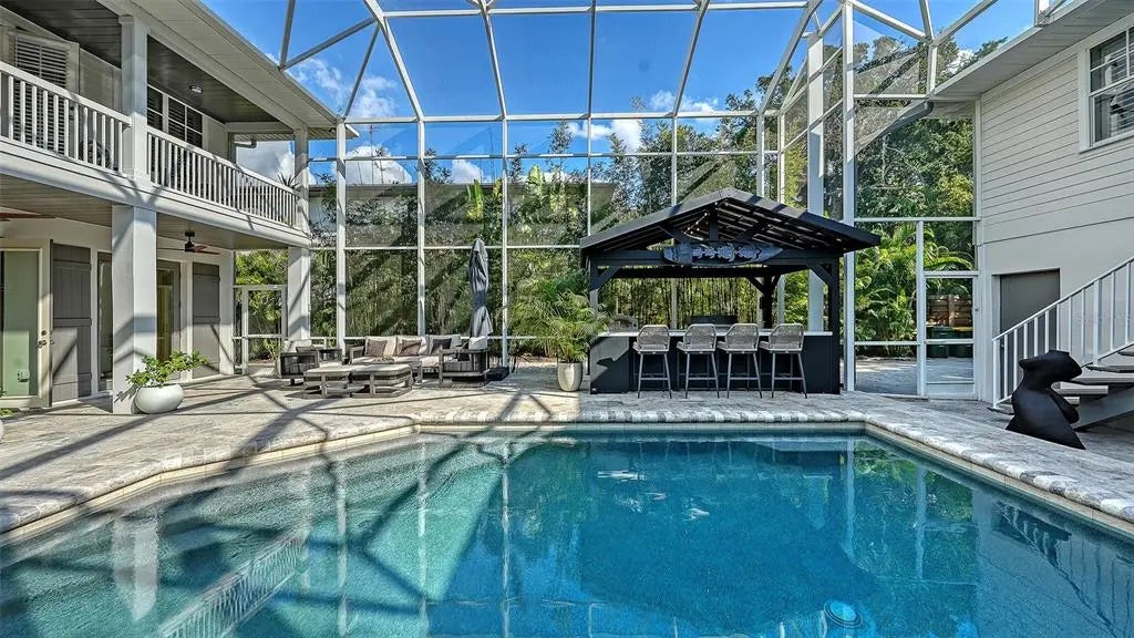 Prime West of Trail location just six houses from the always-popular Southside Village restaurants and shops. This beautifully remodeled home, originally built in 2004, offers three bedrooms and three full baths in the main house, plus a generous guest apartment above the garage. The apartment includes its own full kitchen, spacious living room, bedroom, bathroom, and even a washer and dryer - perfect for visitors, extended family, or rental flexibility. Inside the main home, you'll find French oak flooring throughout, high ceilings, and an open floor plan. The renovated kitchen flows easily into the family room, where French doors open to the screened-in pool area. The main level also includes a separate dining room, a full bathroom, and an office that doubles as an additional guest bedroom. Upstairs, the primary suite features a private terrace overlooking the pool, an upgraded bathroom with a soaking tub and large walk-in shower, and a closet that feels like a showroom. Two additional well sized guest bedrooms and an updated full bathroom complete the second floor. Step outside to the impressive outdoor living space. The covered patio includes a stunning outdoor kitchen equipped with a grill, pizza oven, beverage fridge, sink, and bar-top seating - ideal for entertaining. The saltwater pool has been completely refreshed with new PebbleTec and tile surfacing and all-new Pentair equipment for worry-free enjoyment. An oversized garage has custom built-ins. With numerous upgrades and thoughtful touches throughout, this home shows beautifully. Come see it for yourself!