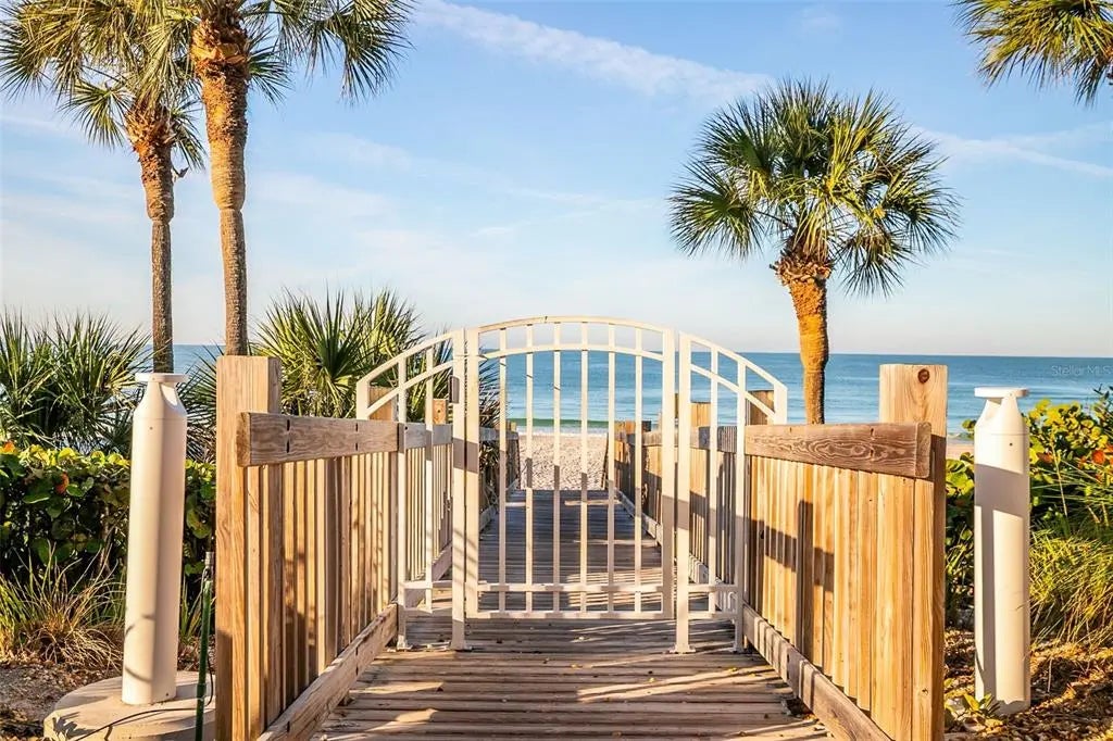 Imagine waking each morning to soft coastal light drifting across your floors-the sort of quiet golden light that tells you you're somewhere special. You open the sliding doors and step out onto your wraparound balcony, the air warm, the bay shimmering below. Birds glide over the mangroves, the skyline reflects on the water and for a moment the world feels calm. You sip your coffee while watching the city slowly wake. No honking horns, no crowded sidewalks-just water, sky and the hush of the Gulf. In the afternoon, you take a gentle stroll down the privare boardwalk to Lido Beach. The sand is white and cool beneath your feet, the waves rhythmic and reassuring. Maybe you walk to St. Armands Circle for lunch-a glass of wine, fresh seafood and sunlight filtering through the palm fronds. Evening comes softly. You return home, open the balcony doors again and feel the warm breeze shift. The Gulf side sky begins its nighly transformation-peach, coral, gold, deep violet. Your private balcony becomes the perfect place to pause and breathe, to watch the sun settle into the water as if the day is bowing just for you. Inside feels cozy. Engineered wood floors, fresh paint, impact windows that silence the outside world, three bed and baths to assure your guests comfort and a furnished interior designed for effortless comfort. A full laundry makes everyday life simple. Resort amenities surround you-a lap pool that mirrors the sky, a quiet spa to sooth sore muscles, tennis courts lit for evening play, a library and fitness center just steps away. You move through the home, your home, with a quiet sense of gratitude, realizing this isnt just a place to live-its a place to exhale.