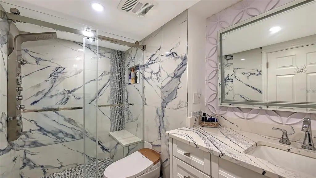 Discover poshly remodeled coastal luxury in this light-filled 2-bedroom, 2-bathroom condo with a versatile flex room—all set against mesmerizing, unobstructed views of Sarasota Bay and the sparkling Sarasota skyline. From your expansive windows, enjoy daily entertainment by nature itself: soaring birds, playful dolphins, and breathtaking sunsets over the water. Every inch of this 2035 sq ft residence has been masterfully redesigned with the finest contemporary finishes. Sleek porcelain flooring flows throughout, while the designer kitchen features quartz waterfall countertops and striking modern cabinetry. Spa-inspired bathrooms showcase top-tier materials and state-of-the-art fixtures for a sanctuary-like experience. The open, airy floor plan is ideal for elegant entertaining or intimate family gatherings, complemented by abundant storage throughout. The building itself has been refreshed with a chic, contemporary aesthetic—perfectly complementing the luxury within. Located in Key Tower South, your backyard is the Gulf of Mexico. Step outside to enjoy peaceful walks on silky white sands at a moment’s notice. And just minutes away awaits the world-renowned St. Armands Circle, brimming with international dining, boutique shopping, and coastal charm. This is more than a home—?It’s a rare gem of Sarasota living, ready for you to make it your own.