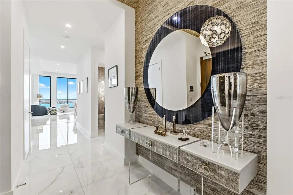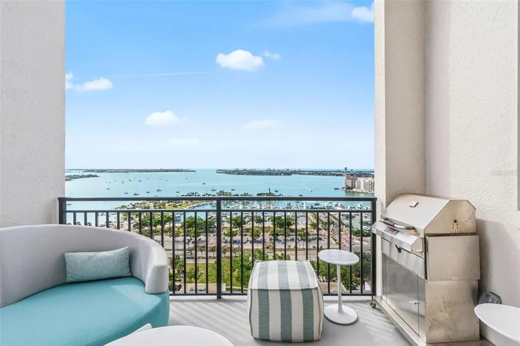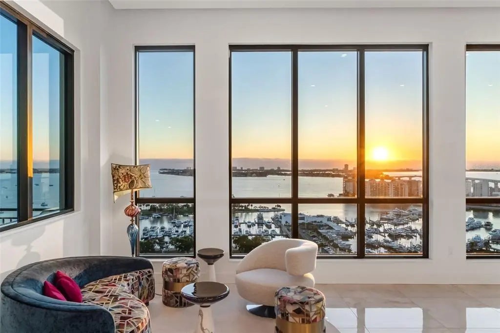 UNPARALLELED LUXURY HIGH ABOVE SARASOTA BAY!! Are you looking for the best views in Sarasota? Look no further...Soaring 17 stories above Sarasota's most coveted address, this extraordinary 3,407-square-foot residence redefines elegance. Residence 1701 at 33 South Palm Avenue presents a rare opportunity to own one of the finest penthouses in Sarasota, where breathtaking panoramic views meet impeccable Italian craftsmanship. From the moment you enter, floor-to-ceiling windows framed by 12-foot ceilings unveil a mesmerizing 360-degree canvas. Watch sailboats glide across Sarasota Bay, admire the barrier islands stretching toward the Gulf of Mexico, observe the vibrant marina below, and take in the glittering city skyline. These aren't just views—they're an ever-changing masterpiece visible from every room. The gourmet kitchen stands as a testament to culinary excellence, featuring custom Italian cabinetry, premium Miele cabinet-panel appliances including gas cooking, dual ovens, and dual dishwashers. Quartz countertops and walls provide both beauty and durability, while a full standing freezer in the walk-in pantry ensures you're always prepared for any occasion. Wine connoisseurs will marvel at the custom 2,500-bottle climate-controlled wine room—a sophisticated showcase for your collection and the perfect conversation piece for entertaining. This three-bedroom haven offers ultimate privacy with en-suite bathrooms for each bedroom, all appointed with spa-like finishes that transform daily routines into restorative rituals. A dedicated office with a private balcony and custom built-in wall units and desk provides the perfect work-from-home sanctuary, while a convenient powder room accommodates guests. The living spaces feature custom built-in entertainment centers and bar cabinetry, seamlessly integrating technology and function with Italian design sensibility. Ascend to the rooftop oasis where a sparkling pool, spa, and outdoor kitchen await against a backdrop of endless sky and sea. The rooftop lounge with catering kitchen makes entertaining effortless, while the fitness center keeps you at your best. Two assigned valet parking spaces ensure convenience and security. This is more than a residence—it's a front-row seat to Sarasota's cultural renaissance, steps from world-class dining, performing arts, and the marina. Experience the pinnacle of luxury living where every detail has been carefully considered and every view takes your breath away.