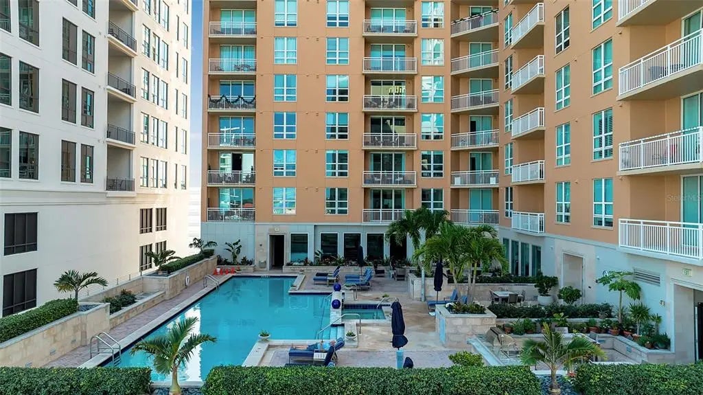 In the vibrant heart of downtown Sarasota, 1350 Main places you just moments from galleries, boutiques, restaurants, Marina Jack, the theatre district, and a quick drive to Lido Beach and St. Armands Circle. It’s the kind of address that makes city living feel both effortless and energizing. Perched on the 7th floor, this light-filled residence is ready for your personal touch. From the balcony and main living areas, peaceful views of the pool and courtyard create a quiet counterpoint to the lively city beyond. Inside, the thoughtful layout includes two bedrooms and two full baths, with the guest room featuring a built-in desk—perfect for work or creative pursuits. The main suite offers a generous custom-designed closet and a spa-like bathroom with dual sinks, a walk-in shower, and a garden tub. Trey ceilings and crown molding add understated elegance, while the kitchen—with stainless steel appliances, granite countertops, and excellent storage—makes everyday living a pleasure. Step onto the balcony to enjoy Sarasota’s mild winters, morning sunshine, and the soothing view of gardens and water below. This amenity-rich community elevates daily life with a club room, catering kitchen, fitness center, library, conference room, and attentive concierge services. Secured under-building parking for one car completes a truly desirable downtown package. Call today for your private showing—your next chapter in Sarasota living awaits.