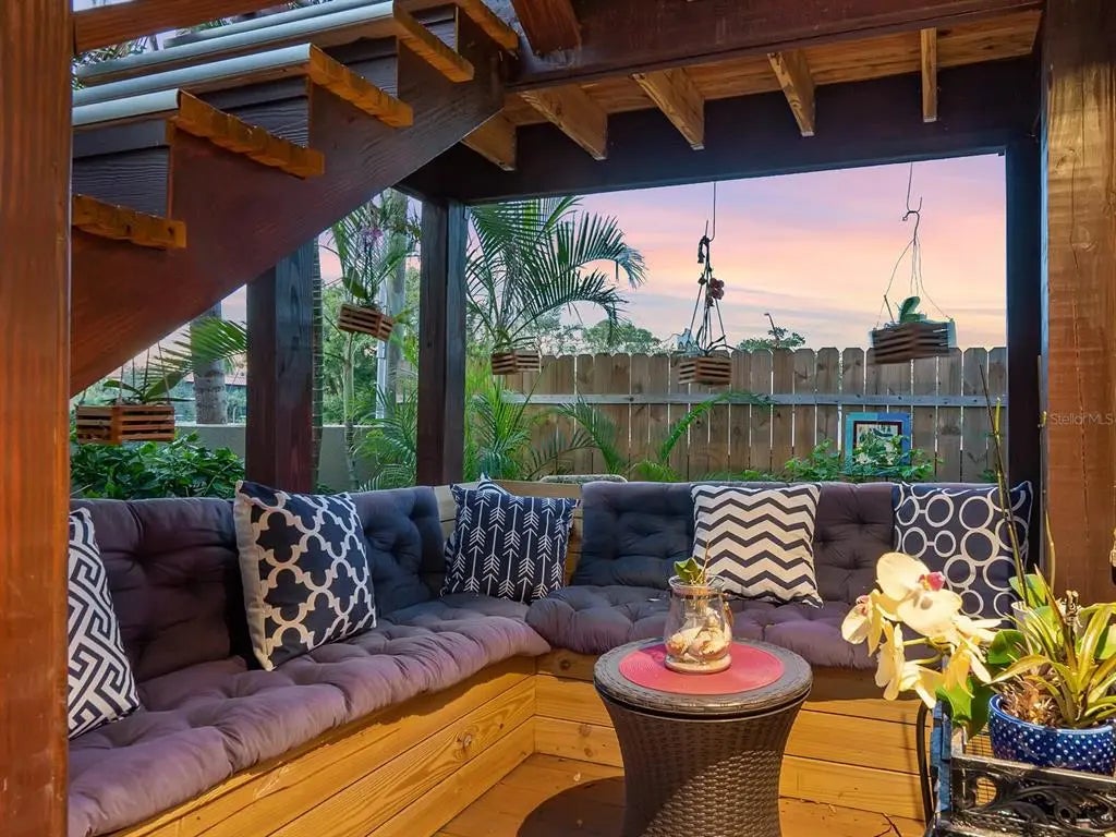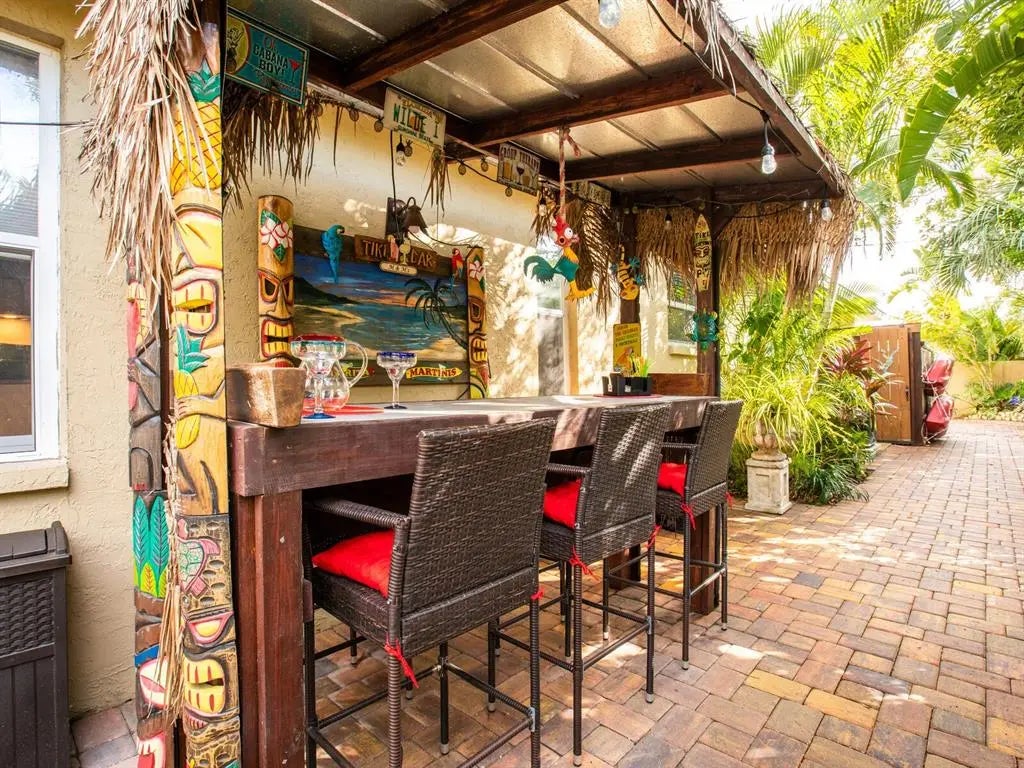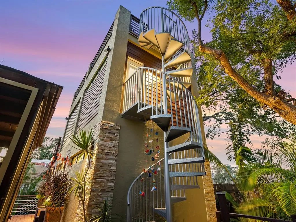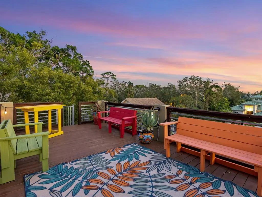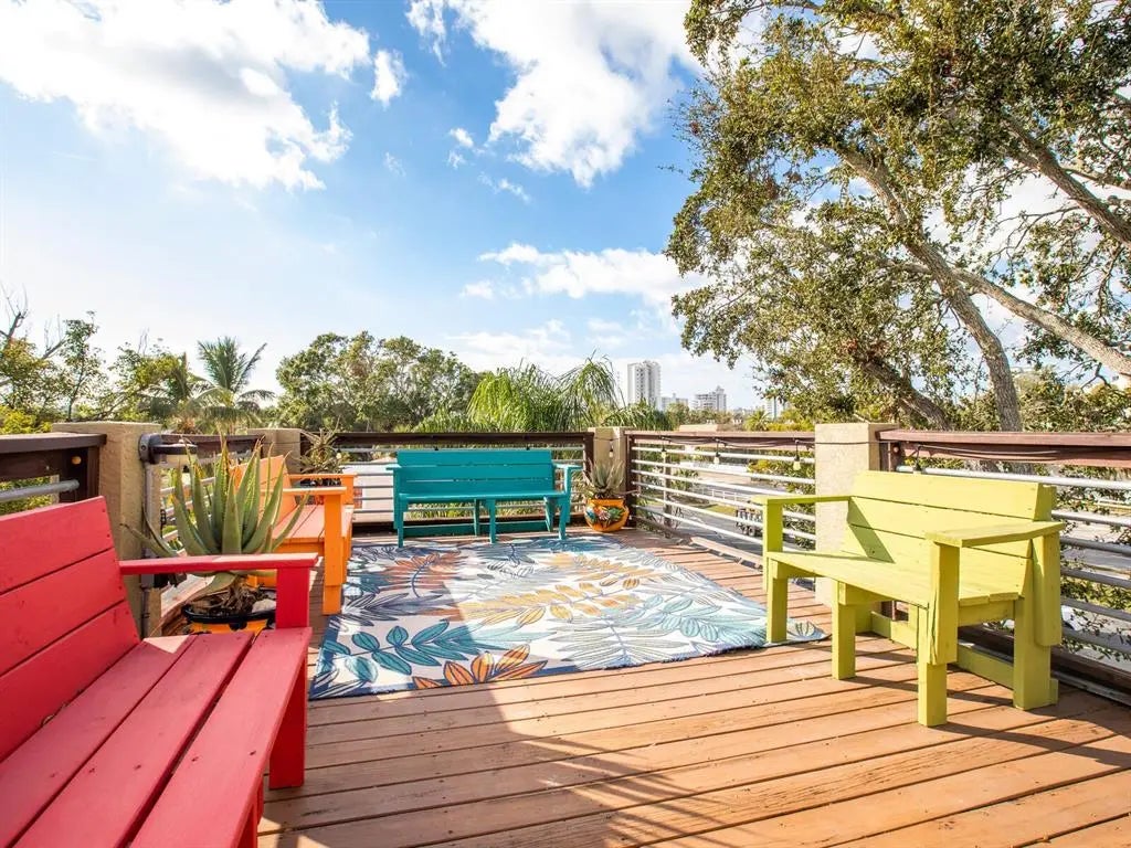 Investment or full time living, this beautiful and unique compound in the heart of Sarasota is just steps away from the downtown, hospital, shopping, and the bayfront is the coveted West of the Trail Hudson Bayou Neighborhood. This one a kind home with a separate art studio and studio apt in the back consists of a beautiful and cozy main house with 2 bdr, 2 baths, dining, updated kitchen with granite countertops and stainless steel appliances was designed and well loved by its owners, one a Ringling Art graduate and both longtime Sarasota residents, for a full time retreat over the past 15 years. Custom details such as ceramic tile, hardwood floors, with the main house completely replumbed just recently in 2025. In 2020, a second building was custom built in the back to allow for an art studio on the first level and regular stairs, as well as a custom-made spiral staircase lead you to a fantastic studio apt/"She Shed" on the second floor for guests and/or Air BNB possibilities in the future. Continue on and gather on the rooftop for views of the city and fireworks with a sneak peak of Hudson Bayou depending upon neighbor's foliage height. No flooding or damage from past hurricanes. This home remained high and dry and has been lovingly updated and maintained. Home and apt Air BNB vs seasonal rental potential. Rental income potential estimates available.