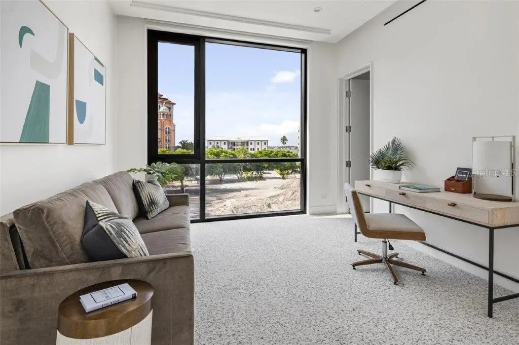 Owner will consider holding financing for this beautiful condo residence that is priced to sell and will also forgo the first year's HOA fees. New Construction Move - in Ready! Golden Gate's Newest Condominium! Relish a luxurious, carefree lifestyle in the beautiful full-floor residence in En-Pointe, a four-unit condominium in Golden Gate Point, ideally situated between the Ringling Bridge and vibrant downtown Sarasota. The 2,439 square-foot residence features 3 bedrooms and 3.5 bathrooms. Two private covered terraces and walls of glass showcase scenic views at every turn, including the bay, Ringling Bridge, downtown and marina. Designed by Echt Architects and constructed by Nautilus Homes, each En Pointe residence features refined craftsmanship and modern features, offering a convenient lock-and-leave lifestyle. From the condominium's private lobby, an elevator transports you to your private entry foyer. At the center of the flow-through floor plan is a chef-inspired kitchen, flanked by the spacious living room and dining room. The living room seamlessly transitions to the sunset terrace, while the dining room opens to the sunrise terrace - perfect for relaxing and entertaining. The generous primary suite includes a spacious walk-in closet, double vanities, large shower and soaking tub. The bedroom offers access to the sunset terrace, boasting picturesque views to the north and west, while abundant natural light floods the south-facing primary bath. There are also two additional en-suite bedrooms. En Pointe's amenities include a 7'x36' heated saltwater pool with a bench, plus elevated decks for lounging and dining. Each unit includes two dedicated covered parking spaces, an electric car charger and secured ground-floor bike parking. A lively downtown lifestyle awaits nearby, including abundant fine dining, shopping and cultural arts, with easy access to St. Armands Circle and Lido Beach, less than 3 miles away.