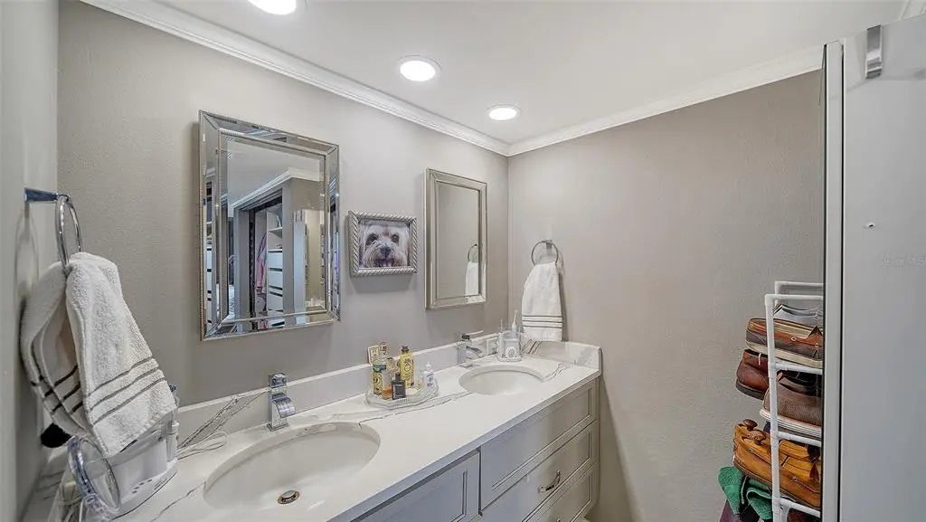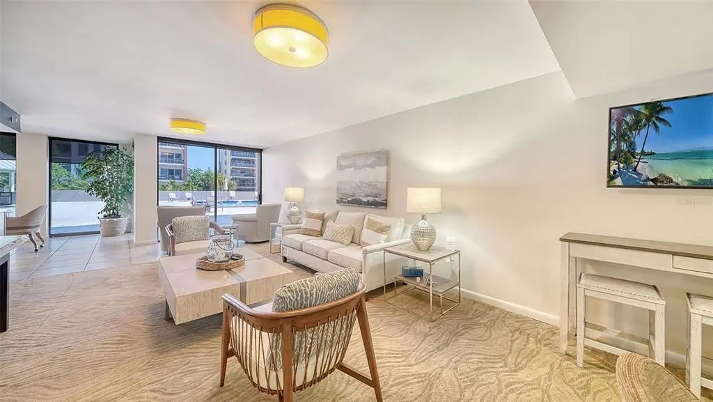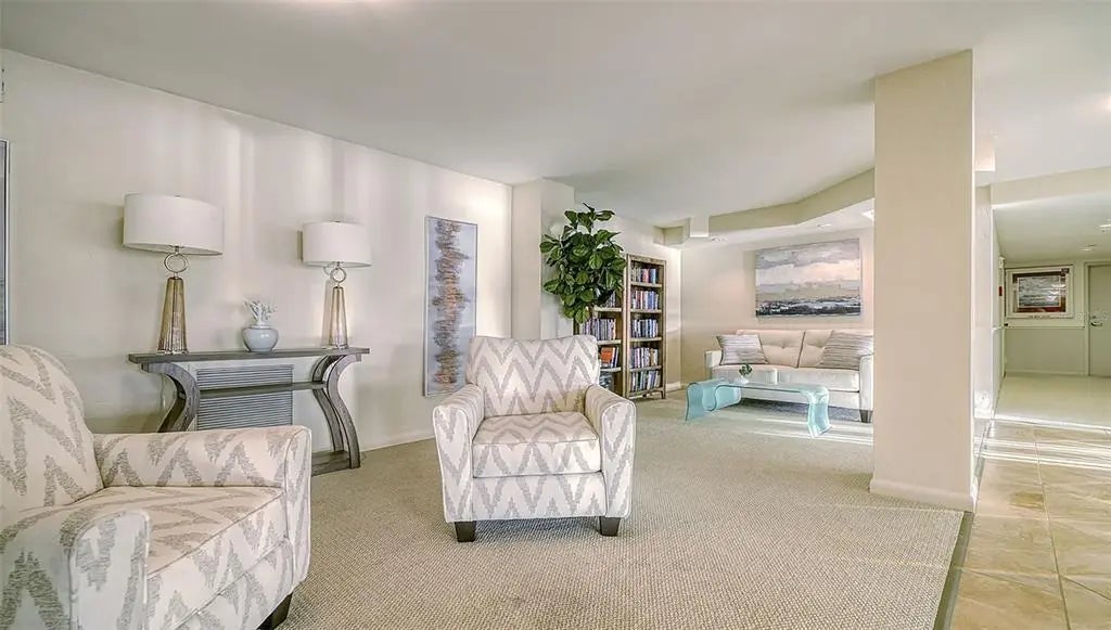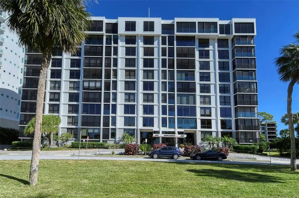 Be prepared for the breathtaking, unobstructed water views from this exquisite condominium in the Essex House – one of the very few residences unaffected by neighboring development. Perfectly positioned to capture sweeping vistas of Siesta Key, Sarasota Big Pass, Marina Jack and Downtown Sarasota, this exceptional 2+ bedroom, 2 bath residence offers a front-row seat to spectacular sunsets through dramatic floor-to-ceiling windows. Thoughtfully updated, the residence features coffered ceilings with recessed lighting, and a built-in electric fireplace, creating a warm and inviting ambiance for relaxing evenings while gazing out at the water. The contemporary gray-on-gray kitchen is both stylish and functional, featuring stainless steel appliances, an open shelves, and generous quartz counter space. The redesigned primary suite is a serene retreat with a custom closet, built-in desk area, bench seating with additional storage, dual sinks, quartz countertop and a beautifully appointed walk-in shower. You will appreciate the clean lines of wood imprinted porcelain tile flooring throughout, additional storage, built-in bookcases and washer/dryer. A true highlight of the home is the fully enclosed glass Florida Room, designed as a seamless extension of the living space and accessible from the living area and both bedrooms. Surrounded by glass and equipped with screens, this exceptional room is ideal for enjoying morning coffee or evening cocktails while taking in the ever-changing, memorizing views. Located in the heart of downtown Sarasota, you are just steps from award-winning restaurants, theatres, art galleries, boutique shopping, and Whole Foods. The Essex House amenities include a fitness center, pool deck, security, covered garage parking with an assigned space, and pet-friendly living. A rare opportunity for unobstructed water views and sophisticated downtown urban living.