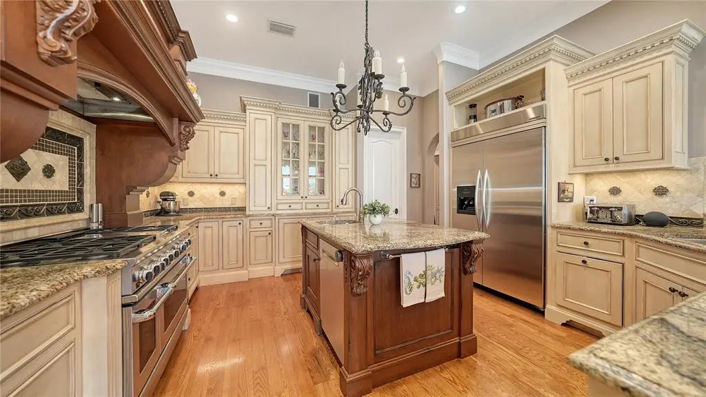 - Interior FeaturesBuilt-in Features, Cathedral Ceiling(s), Ceiling Fan(s), Crown Molding, Eating Space In Kitchen, High Ceilings, Kitchen/Family Room Combo, Living Room/Dining Room Combo, Primary Bedroom Main Floor, Solid Wood Cabinets, Split Bedroom, Stone Counters, Thermostat, Vaulted Ceiling(s), Walk-In Closet(s), Wet Bar, Window Treatments