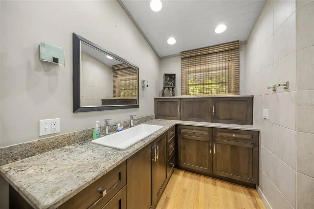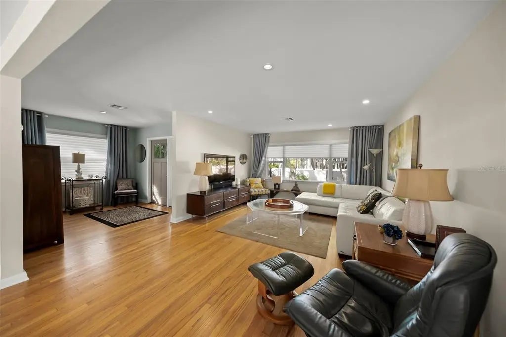 A private, gated masterpiece where Old Florida romance meets modern coastal luxury. Tucked within the coveted West of the Trail enclave, this exquisitely reimagined estate delivers a rare blend of architectural heritage, refined craftsmanship, and elevated contemporary living. Beyond the stately motorized wrought-iron gate, a sweeping brick-paver drive meanders beneath towering live oaks, setting an unforgettable first impression of timeless elegance and privacy. Wrapped in a freshly painted pecky cypress façade and crowned by a newer standing-seam metal roof, the residence honors classic Florida design while embracing today’s luxury standards. Inside, a welcoming foyer unfolds into an airy, open-concept living space anchored by rich natural wood floors and impeccable finishes throughout. A dramatic dual-sided stone fireplace creates a striking focal point between the living and dining areas, while a sophisticated dry bar sets the stage for effortless entertaining. A private office—thoughtfully positioned away from the main living areas—offers flexibility as a refined workspace or guest retreat, complete with an adjacent half bath. At the heart of the home, the chef’s kitchen is nothing short of spectacular, featuring premium stainless steel appliances, a natural gas range, custom cabinetry, designer backsplash, and an oversized marble island that commands attention. A built-in coffee bar adds a touch of indulgence, while French doors invite the outdoors in. Step into a resort-inspired sanctuary where a heated saltwater pool and spa shimmer beneath a newly installed panoramic screen enclosure. Entertain with ease in the fully equipped summer kitchen, complete with stainless gas grill, vent hood, and prep station, or gather around the gas fire pit for evenings under the palms. A newly updated outdoor shower with hot and cold water enhances the spa-like ambiance, while the expansive, lushly landscaped yard offers exceptional privacy and room to relax, play, or unwind. The primary suite is a true retreat, featuring three generous closets, a cozy fireplace, and French doors opening directly to the lanai for seamless indoor-outdoor living. The spa-inspired en-suite bath showcases luxurious finishes, custom vanities, and a walk-in shower designed for pure relaxation. Additional highlights include a spacious laundry room, oversized two-car garage, and curated architectural lighting that bathes the estate in a warm, elegant glow at dusk. Perfectly located just minutes from the Siesta Key North Bridge and the boutiques and dining of Southside Village, this property offers the rare balance of serene seclusion and coastal convenience. Situated outside of a flood zone—with flood insurance optional—this estate represents both luxury and peace of mind.