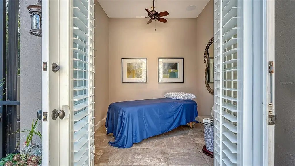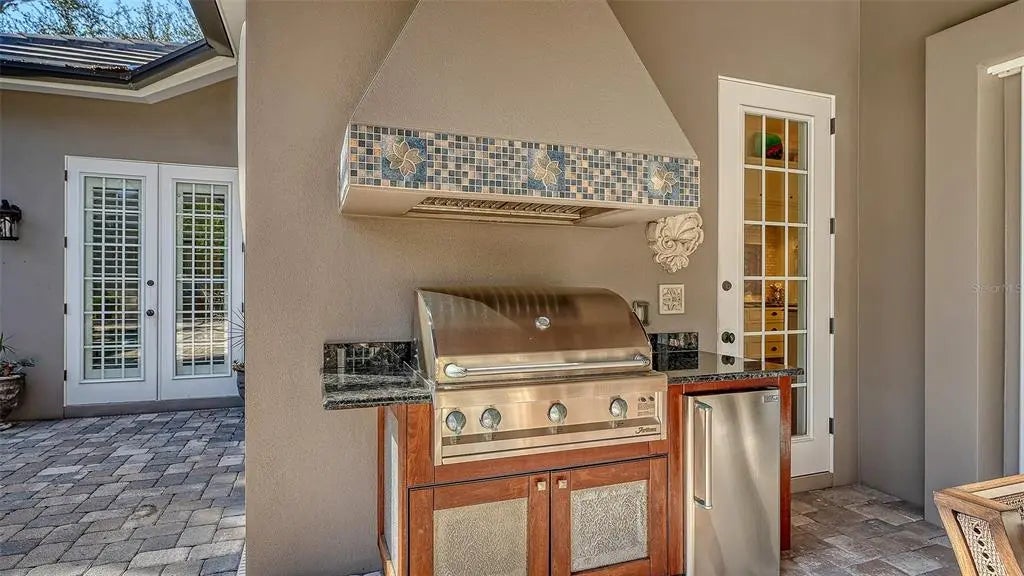 Simply stunning custom residence crafted by Todd Johnson, set within a private, oversized homesite west of the Trail. Designed for effortless one-level living, this refined home offers an open, flowing floor plan with three spacious bedrooms—each with an en-suite bath—plus a well-appointed powder room. Warm and inviting interiors feature rich wood floors throughout and generous living spaces ideal for both everyday comfort and elegant entertaining. A handsome study just off the living room showcases custom woodwork and built-ins, creating a distinguished retreat for work or reading. The gourmet kitchen is a standout, appointed with extensive cabinetry, a large center island, paneled appliances, gas cooktop, double ovens, a full-size wine refrigerator, and an oversized walk-in pantry. Expansive sliding glass doors open to a screened patio and pool area, seamlessly blending indoor and outdoor living. Designed with entertaining in mind, the outdoor space includes a built-in gas grill and refrigerator, a cozy fireplace, and a heated pool and spa for year-round enjoyment. A private massage room just off the patio adds a spa-like touch rarely found. Additional highlights include a side-load 2.5-car garage with abundant storage, an impressive 22-foot elevation—among the highest in the area—and construction with the highest quality materials, including full impact windows and doors for comfort and peace of mind. Ideally located within easy walking distance to Southside Village and Southside Elementary School, this exceptional home offers privacy, quality, and convenience in equal measure. Truly a residence that is sure to please.