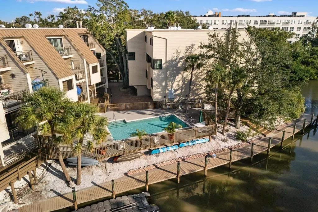 One or more photo(s) has been virtually staged. Experience easy, coastal living in this two-story, two-bedroom, two-and-a-half-bath townhouse overlooking the tranquil Hudson Bayou, with direct access to Sarasota Bay. This quaint waterfront community offers a private boat dock and kayak launch, making it ideal for those who enjoy life on the water. Perfectly situated in downtown Sarasota, you’re just one block from Burns Court, three blocks from Main Street, and directly across from Selby Gardens and the Bayfront. The Legacy Trail, Lido & Siesta Key Beaches, and all the cultural, dining, and shopping amenities Sarasota is known for are just minutes away. The setting is peaceful and leafy, surrounded by mature trees and adjacent to historic Laurel Park, creating a true neighborhood feel. Residents enjoy a pool and gas grill, while practical features include a garage with private EV hook-up and private storage room beneath the building. A rare combination of walkability, waterfront access, and serenity, this home offers a high quality of life in one of Sarasota’s most desirable locations.