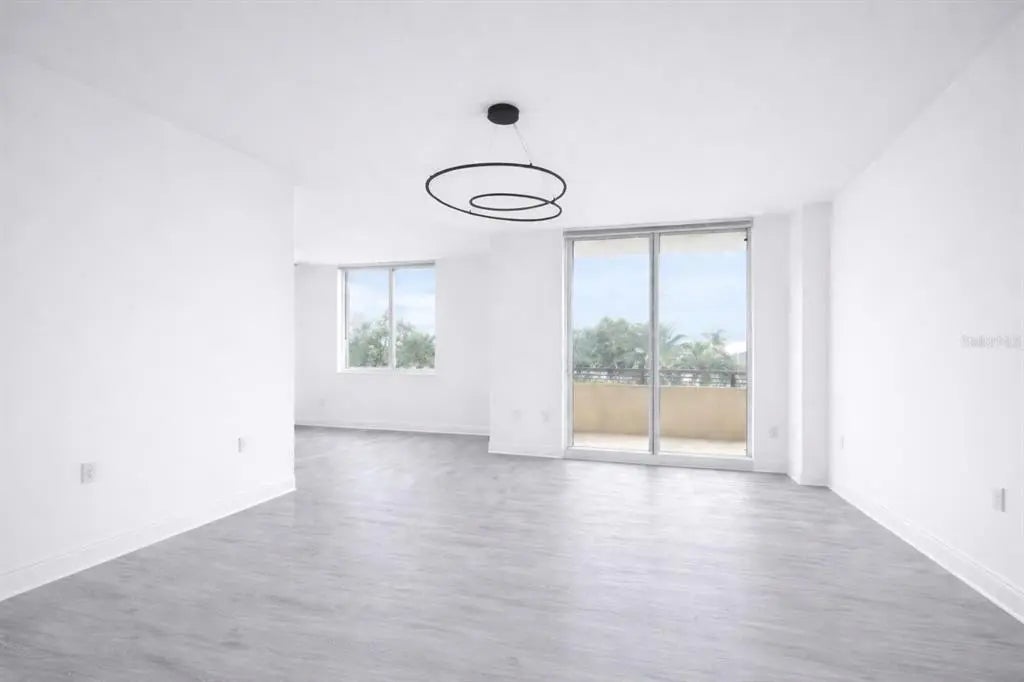 One or more photo(s) has been virtually staged. An exceptional residence offering the scale and livability of a single-family home within a full-service community. This expansive 2-bedroom, 3-bath home with den and bonus family room spans 1,911 square feet and is thoughtfully designed with high ceilings, large windows, and abundant natural light throughout. The open, flexible floor plan allows for multiple gracious living and sitting areas or the opportunity to create a third bedroom, providing rare versatility to suit an evolving lifestyle. A wraparound, west-facing balcony—accessible from both the living room and the primary suite—extends the living space outdoors and showcases water views, perfect for sunset enjoyment. The primary suite offers a serene retreat, while the additional rooms provide comfort and flexibility for work or guests. A temperature-controlled storage unit is included for added convenience. Enjoy effortless access to the third-floor amenities, including resort-style lap pool and spa, a state-of-the-art fitness center, and men and women's saunas. The building delivers an elevated downtown lifestyle with 24/7 concierge service, on-site guest parking, guest suites, wine room, library, club room, business and conference facilities, game room with pool table, and a brand-new private movie theater with stadium seating. A rare opportunity to enjoy refined, resort-inspired living where comfort, space, and lifestyle converge.
