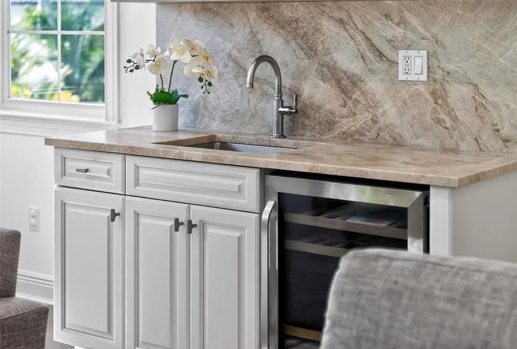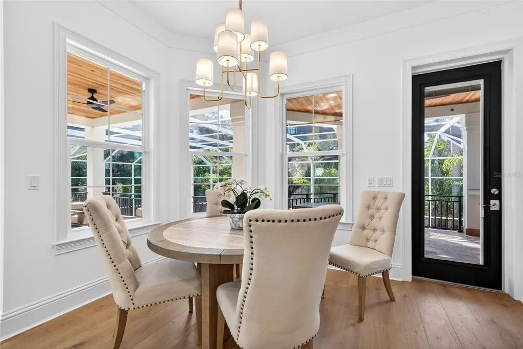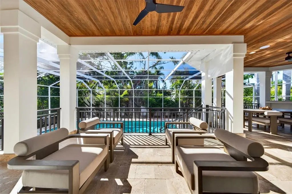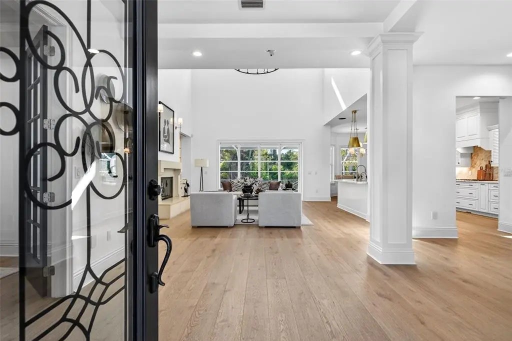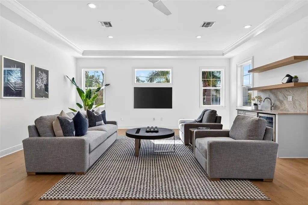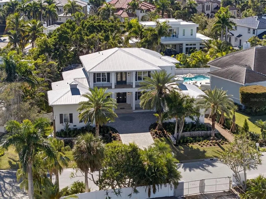 Located in Harbor Acres, one of Sarasota’s most coveted neighborhoods, this coastal traditional residence enjoys an exceptional in-town setting just minutes from downtown and Southside Village, home to 14+ restaurants, Morton’s Gourmet Market, and Sarasota Memorial Hospital—truly the epicenter of city living. Poised on an elevated lot, this newly renovated 4-bedroom, 4-bath home offers a highly desirable and functional floor plan filled with natural light, high ceilings, and abundant windows throughout the main level. The thoughtfully designed first floor features a spacious primary suite with dual closets and a bath with soaking tub, along with an additional bedroom suite and a private office conveniently located near the living room and primary bedroom. The living room is anchored by a fireplace flanked with custom built-in bookcases and opens via sliding glass doors to the covered patio, creating seamless indoor-outdoor flow. A well-proportioned dining room sits just off the kitchen, ideal for both everyday living and entertaining. The open kitchen features new luxury appliances, quartzite countertops, a farmhouse-style sink, beverage refrigerator, custom pantry, breakfast bar overlooking the living room, and a sun-filled breakfast room. An oversized laundry room offers ample space for custom built-ins and includes a new washer and dryer. A full bath on the main level serves both the additional downstairs suite and functions as a pool bath. Recent updates include wide-plank oak flooring, quartzite kitchen countertops, new appliances, new light fixtures throughout, two new air conditioning systems, fresh interior and exterior paint, new vanities in the primary bath and one upstairs suite, and new tropical landscaping that creates a lush garden setting. Upstairs, a large family or game room is flanked by two bedroom suites and opens to a front terrace. Designed for indoor-outdoor living, the home features a screened pool, outdoor dining area, and summer kitchen. A 4-car garage with additional storage completes this exceptional offering. Harbor Acres is renowned for its voluntary homeowners association and strong sense of community, making it one of Sarasota’s most desirable neighborhoods.