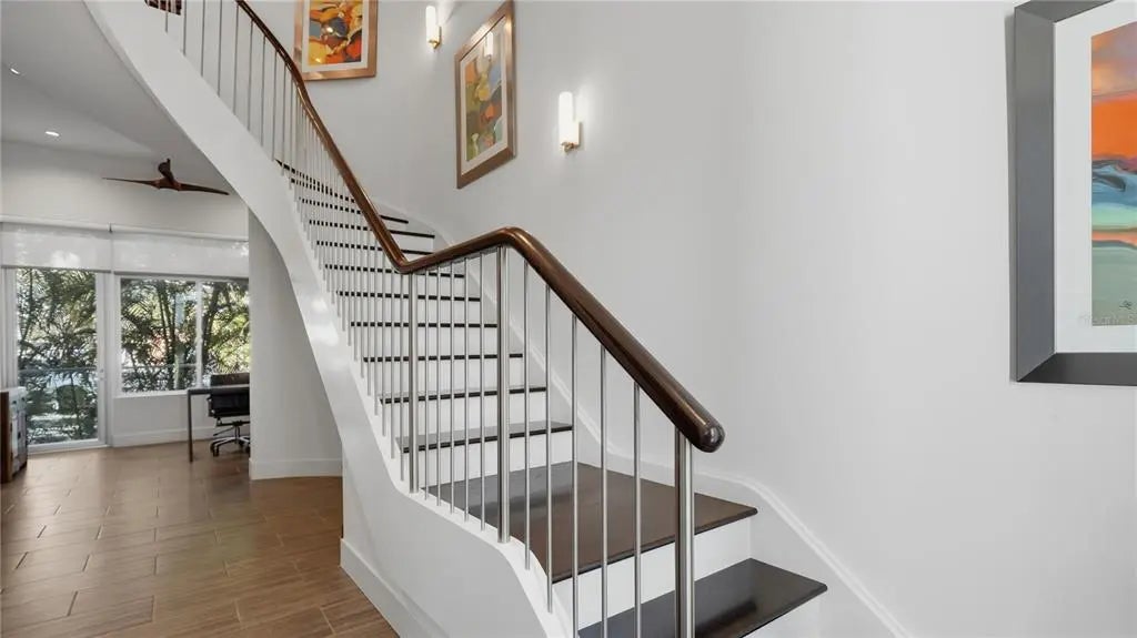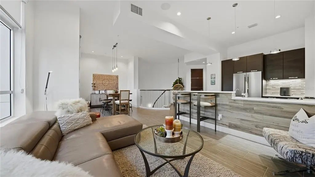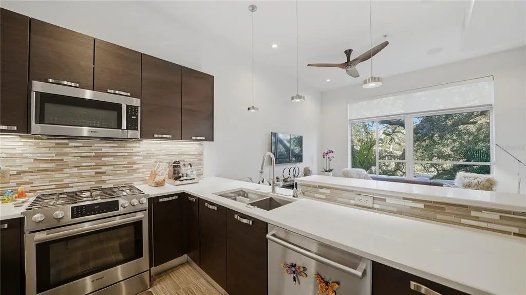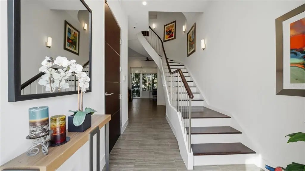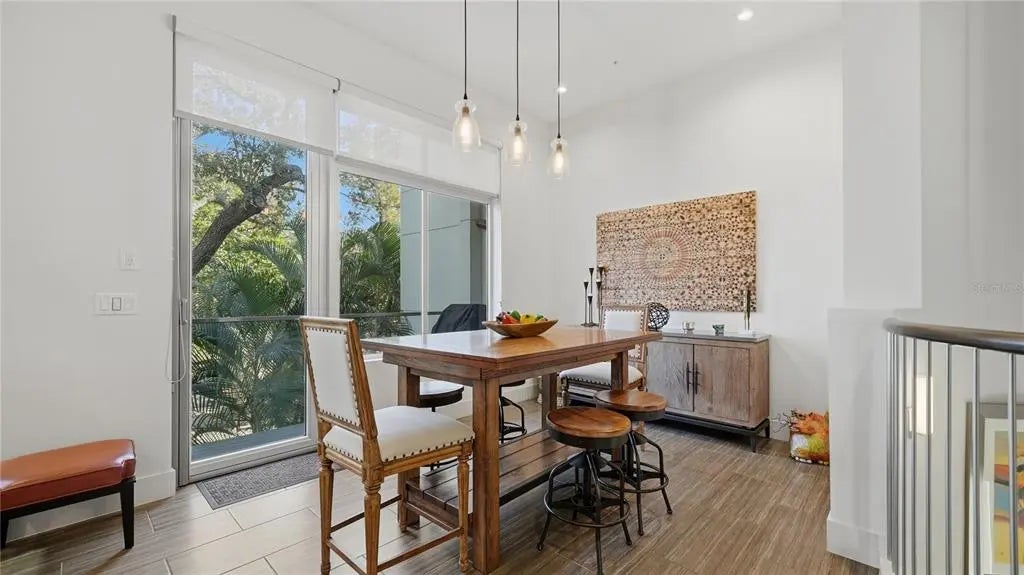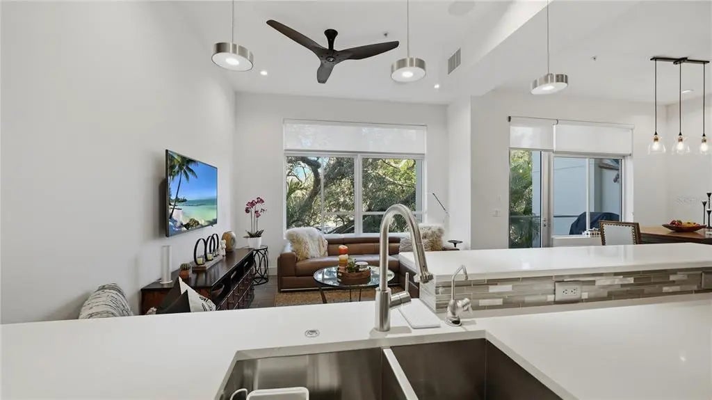 Amazing property and location! This Townhome is located between Osprey and Orange Avenues off of Ringling Blvd. in downtown Sarasota with 2 spacious bedrooms and 2.5 Baths. The Q is a unique enclave of 40 individually owned townhomes (not a condo). The moment you enter the front door, you will be mesmerized by the 13-foot-tall ceilings, the 8'-foot-tall solid wood Italian doors and a serene view through the foyer out the back door to historic Laurel Park. The downstairs area (11' x 10') is a great office space with large windows that could also work as a den. The second bedroom is conveniently located on the first floor and boasts both a walk-in closet and a double closet. This spacious second bedroom has an ensuite bathroom with a Lube single sink cabinet with quartz countertops and an oversized walk-in shower. Landry room is also, conveniently located on level one. On level 2, At the top of the stairs you are greeted by an amazing kitchen with Modern cabinets, quartz countertops and stainless-steel appliances. The glass tile backsplash and knee wall facing the living room are stylist and accessible, shimmering with light from the over-sized windows. The view from the upstairs living room and dining room is a scenic view of the treetops of historic Laurel Park. Step out onto the serene, private balcony where you feel like you're in the treetops. All windows are impact glass. The attached 2-car garage has spacious storage. The location is ideal. You are two blocks from the Saturday farmer's market and one block from amazing restaurants. If that's not enough, stroll to the theater, opera, or the marina. The Q is a very short ride or walk to the Legacy Trail connecting you from downtown to Venice. The free Breeze trolley runs every 30 minutes to takes you to St. Armand's Circle or out to Lido Beach. Buyers and/or Buyers Agent to verify all pertinent information, including room sizes, as they may be approximate. All Association information should be verified with Property Management Company or Association. Information deemed reliable but not guaranteed.