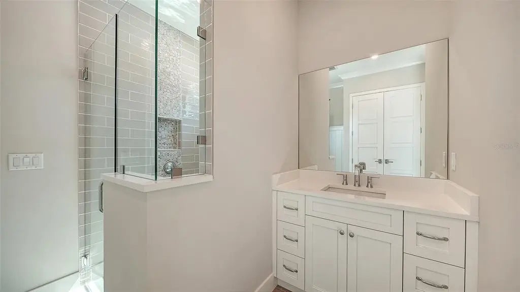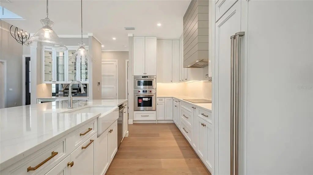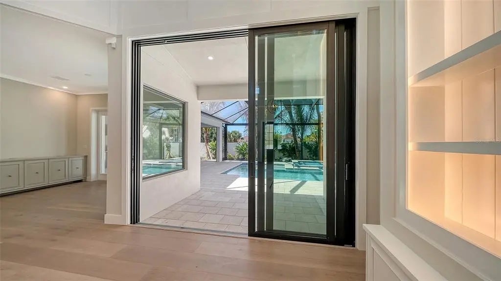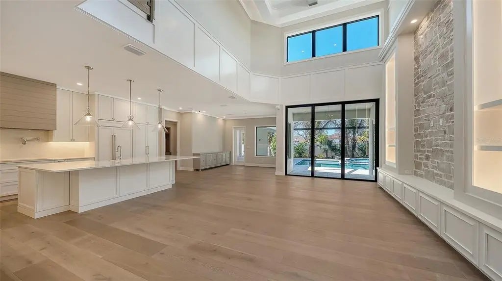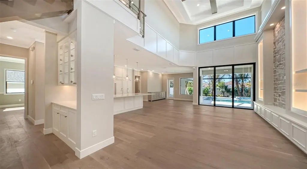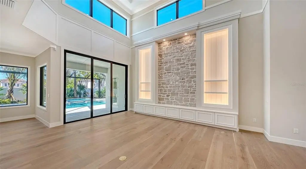 The highly-acclaimed team of professionals at Allegra Homes has yet again created a vision of luxury, elegance and simplistic functionality. A dynamic 4,224 sq. ft. open layout is rich in gorgeous details everywhere you turn. Feast your eyes on the “St. Michael,” a two-story beauty with stunning curb appeal and exciting interiors thoughtfully designed for grand-scale living. In addition to 4 bedrooms, there’s also a separate 254 sq. ft. casita ideally suited for in-laws or guests wanting to enjoy the fantastic Florida ambiance just a little longer. The extended foyer and great room feature an amazing 21-ft ceiling and invite you into a fascinating space with see-thru views out to the magnificent outdoors. Step into the heart of the home, where the great room exudes warmth and sophistication. A wood-beamed ceiling adds character and warmth, while clerestory windows flood the space with natural light, creating an inviting and airy ambiance. Triple sliders seamlessly connect the indoors to the covered poolside lanai. In the family room, a stunning stone-faced center wall serves as the focal point, flanked by built-in shelving with elegant lighting. The consummate chef will delight in the variety of accoutrements offered in this delectable space honed to perfection. A large stone-topped island easily seats 5 and the premium appliance package encompasses a 36” Wolf gas induction cooktop, a 42” Sub-Zero fridge, a Wolf oven with matching drop-down microwave, an ASKO dishwasher, a Sub-Zero wine cooler, and adequate counter and storage space including a pantry. Adding stylish flair to the dining room is a built-in buffet with full mirrored wall and wide windows overlooking the tropical pool setting. A separate dry bar with pass-thru is convenient to both the great room and kitchen for ease of serving family and friends. Overlooking the pool is a bonus room with a pool bath and wall of pocketing sliders opening wide to a covered 545 sq. ft. outdoor oasis with tongue-and-groove ceiling, nicely equipped summer kitchen, and abundant room for both dining and lounging. The pavered lanai is enclosed with ClearView screening and includes a 25’x19’ heated pool with 6 stepping pads, spill over spa, sun shelf, LED bubbler, salt conversion generator and Pebble Tec finish. The owner’s wing, with an adjacent study, may become your most prized room of the home with its drop tray ceiling, spacious seating area, soaking tub inside an exquisite large glass shower, separate dual vanities and water closet. An additional bonus room with wet bar, two bedrooms and a bath are located upstairs. Other honorable mentions include a 3-car garage with epoxy floor, tankless gas water heater, 10-ft ceilings, modern staircase with floating steps, recessed lighting, crown molding, brick paver drive and walkway, 8’ interior solid core doors, professionally landscaped, and irrigation system. Poised on over a 1/3 acre lot in prestigious Harbor Acres with a sought-after central location near the arts, entertainment, dining, shopping, beaches, boating, golf and other year-round adventures. For families with elementary school-age children, top-ranked Southside School celebrates 120 years of excellence in academic achievement. This stately new residence has been masterfully crafted inside and out, and will add a sense of pride and joy to an already perfect lifestyle.