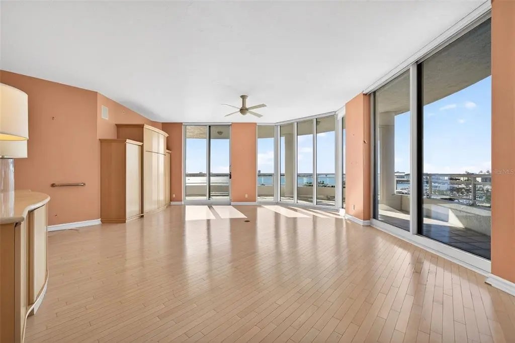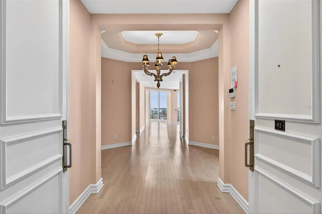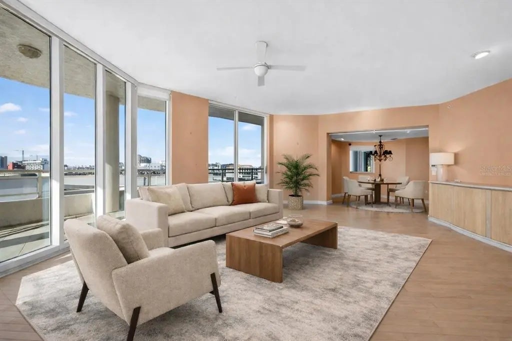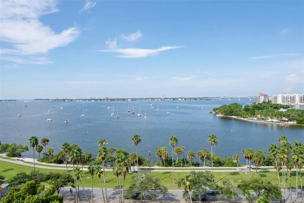 One or more photo(s) has been virtually staged. Unobstructed water views take center stage in this rarely available residence at Tessera, ideally positioned on esteemed Palm Avenue. Offering breathtaking vistas of Sarasota Bay and the Gulf of Mexico, this exceptional condo presents a unique opportunity for its next owner to thoughtfully customize a truly special waterfront home. Tessera is prized for its quiet, serene setting while remaining effortlessly connected to the energy of downtown Sarasota. With only 24 private residences in the building and two residences on Level 9, the building delivers an elevated sense of privacy that discerning buyers value. The arrival is nothing short of impressive, featuring paneled solid wood doors that open to a gracious foyer with an immediate, unobstructed view of the water beyond. The thoughtfully designed split floor plan with 3,315 sq ft of interior space includes a private office near the entry, two en-suite guest bedrooms on one wing, and an expansive primary suite on the opposite side. The primary retreat is exceptional in scale, offering sweeping water views, two oversized closets rarely found in newer construction, an additional closet within one of the two primary bathrooms, and direct access to the terrace creating an inviting way to begin each morning. The Great Room is wrapped in floor-to-ceiling glass, capturing Sarasota’s ever-changing coastal beauty. A generous wraparound terrace extends from the Great Room to the kitchen, creating the perfect backdrop for sunsets, watching yachts glide through the marina, and admiring the iconic John Ringling Causeway leading to Longboat Key, St. Armands, and Lido Key. Completing this offering are two private single-car garages—an exceptional rarity in downtown condominium living. Amenities include a recently update fitness center and an outdoor pool that is perfect for swimming laps. Relax in the spa located near the pool in this private and serene setting. This is a remarkable chance to transform a coveted Tessera residence into a refined waterfront showpiece while enjoying Sarasota’s vibrant arts scene, boating lifestyle, pristine beaches, and an array of celebrated dining destinations just moments from your door.