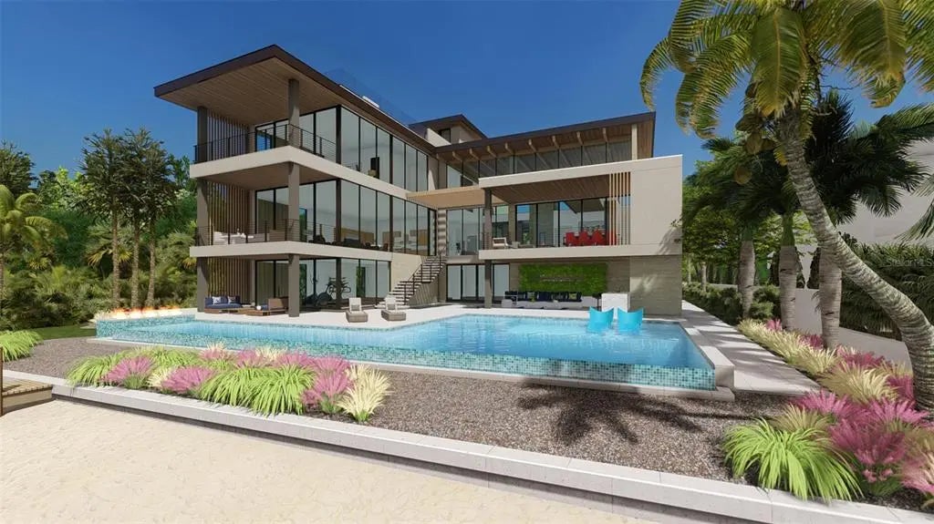 Pre-Construction. To be built. Soon to be under construction. Located on the coveted waterfront of Bay Point Drive, this extraordinary custom residence represents a rare opportunity to own a truly bespoke new-build in one of Sarasota’s most desirable bayfront settings. Designed by the acclaimed DSDG Architects and expertly built by Dynan Construction, this home blends striking modern architecture with timeless coastal elegance. Showcasing open bay views, the residence features an expansive open floor plan anchored by a dramatic great room and living area with soaring ceilings, walls of windows, and floor-to-ceiling sliding glass doors that flood the interiors with natural light and seamlessly connect indoor and outdoor living. Entertain effortlessly with a sophisticated lounge and temperature-controlled wine cellar, complemented by a chef’s kitchen and oversized chef’s pantry. The home offers a six-car garage, ideal for collectors and car enthusiasts, and includes an elevator servicing all floors for ultimate convenience. The entire top floor is dedicated to a private primary suite retreat, complete with a serene sitting area and a private study, creating a peaceful sanctuary with elevated views. Outdoor living is equally impressive, featuring an expansive waterfront patio, tranquil koi pond, and multiple covered seating areas designed for year-round enjoyment and entertaining against the backdrop of Sarasota Bay. This exceptional new construction home is a statement of architectural excellence, craftsmanship, and luxury waterfront living—offering refined design, thoughtful amenities, and breathtaking views in a premier Sarasota location.