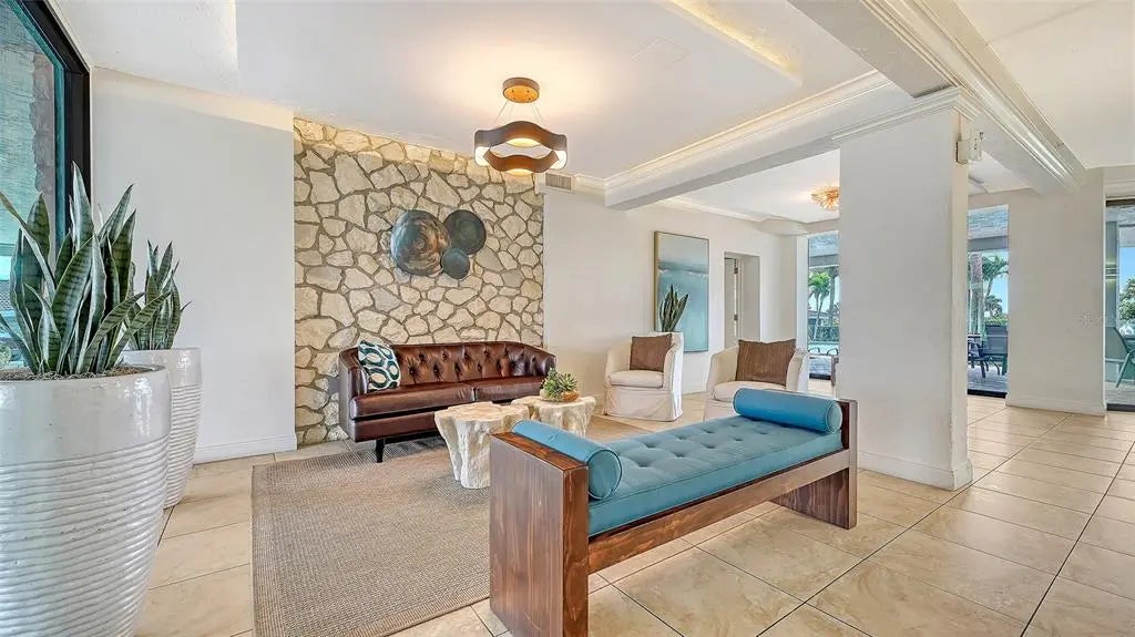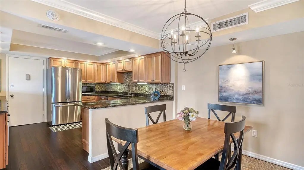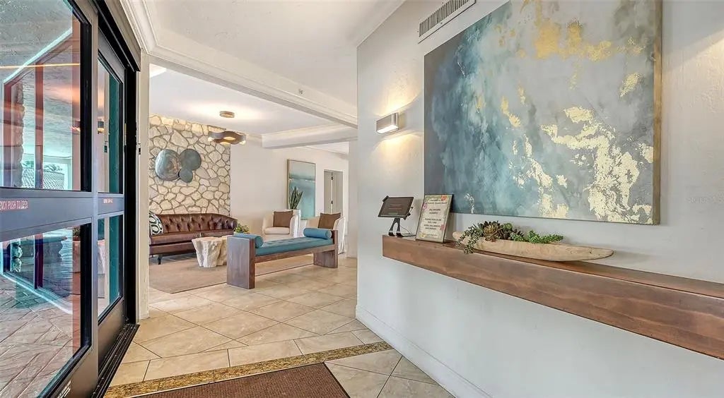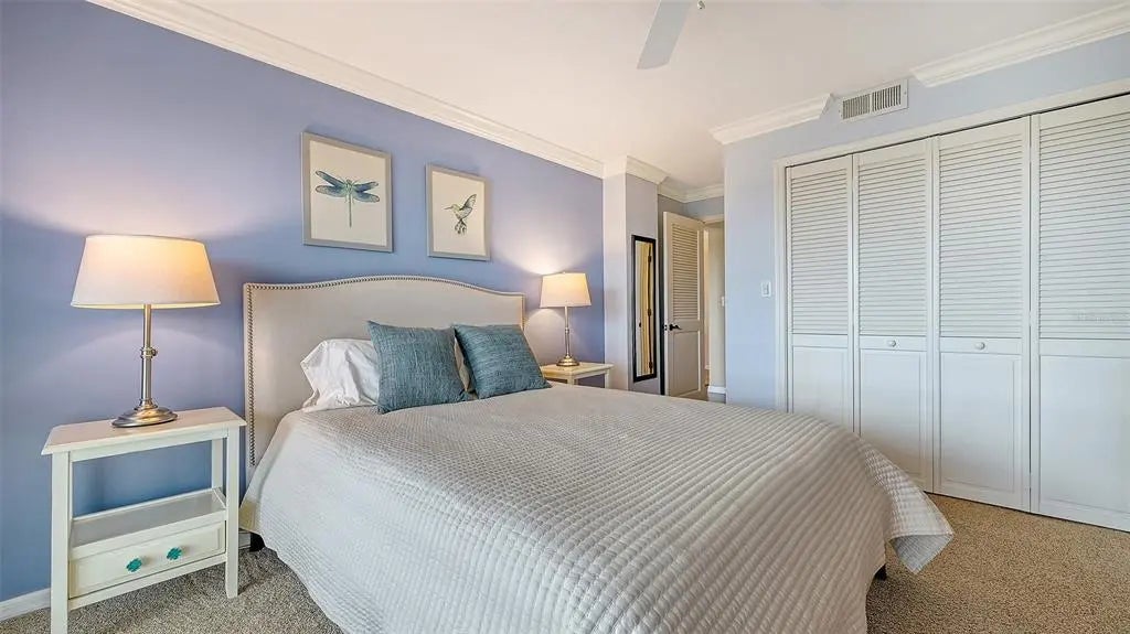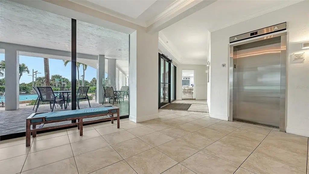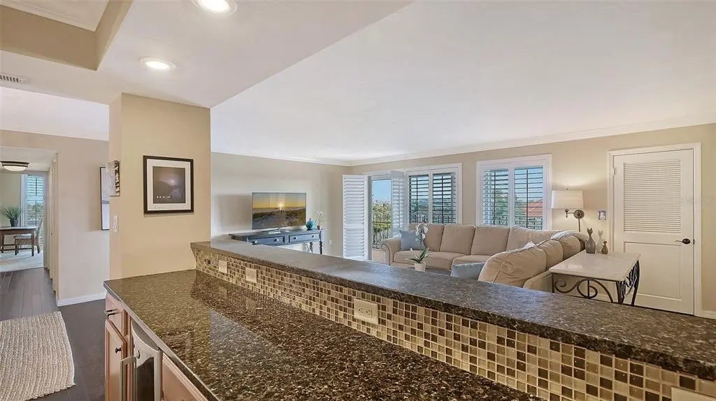 ST. ARMANDS TOWERS NORTH - Located directly across from the sugar-white sands of Lido Beach and just one block from vibrant St. Armands Circle boutiques, galleries, and culinary experiences. This stylish northeast-facing residence on the fifth floor is sold furnished and ready for immediate enjoyment. The interior was designed for effortless elegance, featuring warm bamboo flooring, crisp crown molding, and plantation shutters that beautifully filter the Florida sun. The open-concept floor plan flows seamlessly through three sets of sliding glass doors (with new hurricane shutters) in the living room and both bedrooms, to an expansive 240 sq. ft. balcony—your private sanctuary for enjoying tropical breezes. The kitchen boasts a delightfully functional layout, with ample cabinetry, granite countertops, and stainless-steel appliances. Two full bathrooms include a primary ensuite, offering privacy for you and your guests. Convenience meets beachside luxury with an in-unit washer/dryer, large storage closet, and a dedicated covered carport space with an adjacent storage locker. The St. Armands Towers North community provides a worry-free living experience, having completed all required structural reviews. An on-site manager keeps the building in top condition; proactive maintenance keeps fees low, and the reserves are fully funded. Residents can indulge in a resort-like lifestyle with fantastic amenities, including a heated pool with Gulf views, exercise room, library, and beautiful newly remodeled community room. Location is everything, and this condo delivers. Whether you enjoy sunbathing on the sands of Lido Beach, exploring the kayak launches and nature trails of nearby South Lido Park, shopping, and dining on St. Armands, or relaxing in the splendor of your refined retreat, this property offers the ultimate island experience. A free local shuttle with a stop nearby even provides convenient transport directly to downtown Sarasota, allowing you easy access to explore the area's rich cultural offerings. Enjoy sophisticated, maintenance-free coastal living at one of Lido Key’s most desirable addresses!