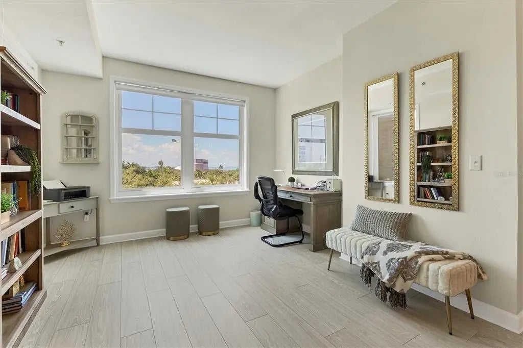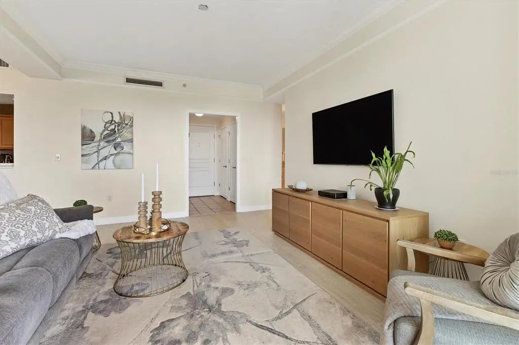 Under contract-accepting backup offers. Experience the best of downtown Sarasota living from this beautifully positioned fourth-floor residence at Renaissance, where sweeping views of the turquoise Sarasota Bay and the newly developed Bay Sarasota Park, a resilient green space creating a daily backdrop of coastal beauty and vibrant city energy. Offering 1,020 square feet of heated living space and 1,072 total square feet, this thoughtfully designed one-bedroom, one-bath residence delivers an exceptional blend of comfort, functionality and timeless appeal, ideal for full-time living and seasonal enjoyment. Natural light fills the interior through expansive windows, enhancing the open and inviting layout. The primary living area flows seamlessly into a versatile den, providing valuable additional space for a home office, reading lounge or guest accommodations. The kitchen is well-appointed with new appliances and ample cabinetry, while the updated bath features clean, modern finishes. A large walk-in closet adds generous storage, and the residence has been tastefully maintained to support an effortless lock-and-leave lifestyle. Indoor and outdoor living converge beautifully as tranquil bay views become part of everyday living. There is a spacious balcony off the living area with westerly views. Beyond the residence, Renaissance offers a comprehensive suite of resort-style amenities within a secure, 16-story high-rise known for its enduring construction and thoughtful design. Residents enjoy landscaped plazas, fountains, a grand Italian villa-inspired entrance and a striking lobby with concierge services. The building features key-card access, a staffed front desk, overnight security, on-site management, a clubroom, business center, fitness center and a private resident theater. Renaissance was engineered with exceptional attention to structural integrity. Constructed with reinforced concrete beams, fireproofed materials and pilings drilled deep into the ground, the building was designed to perform like a fortress. The property is in Flood Zone X and outside the floodplain. The lobby and guest parking are elevated more than 15 feet above base sea level, providing additional peace of mind. This residence includes one assigned, secured parking space on the first floor of the garage, also elevated over 15 feet above sea level. Ideally in the heart of Sarasota’s cultural district, Renaissance places residents moments from world-class dining, performing arts, galleries, waterfront promenades and year-round social events. This is a rare opportunity to enjoy downtown Sarasota living with Sarasota Bay views, exceptional security and outstanding value. Schedule your private tour today before this updated residence is gone.