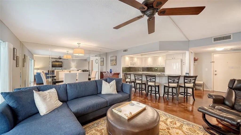 Welcome to your slice of beach paradise in the heart of Sarasota! Step outside to sink your toes into the powdery sands of world-famous Lido Beach or take a leisurely stroll into St. Armand’s Circle for dining and boutique shopping. This prime corner location offers a rare blend of privacy and sunshine, with just a single shared wall and the benefit of two windows that fill the primary suite with natural light. The split two-bedroom floorplan is perfect for hosting friends and family, providing your guests with a spacious bedroom and their own private bath. The primary suite is designed for both comfort and function, featuring a large walk-in closet with custom built-in storage, an ensuite bath complete with a washer and dryer, and ample space for a work desk or cozy reading nook. The open kitchen boasts granite countertops, a wine cooler, and plenty of storage—ideal for entertaining and extended visits. The open living/dining area flows seamlessly onto the screened-in patio, perfect for savoring sunsets during happy hour. For your peace of mind, the unit features newer hurricane impact windows and sliding doors (2021), a new water heater, and a recently replaced roof (via the association). The condo sits comfortably above the beach on the second level with easy access via stairs or elevator to the community pool, fitness room and clubhouse. An assigned covered parking spot and secure private storage area provide the comforts of home, right on the beach. Nestled among multi-million-dollar properties, the Lido Ambassador stands out with its stunning beach access as the closest beachfront condo to iconic St. Armand’s Circle. For a vacation-like experience any day of the week, simply step next door to the Lido Beach Resort Tiki Bar or the 8th-floor “Drift” restaurant, where phenomenal views across the beach and skyline await—both open to the public. You really cannot find a better beachfront value nested in the heart of Sarasota’s most popular attractions. This property is offered turnkey furnished and is ready for immediate occupancy, so you can embrace the beachfront lifestyle without delay. Schedule your tour today!