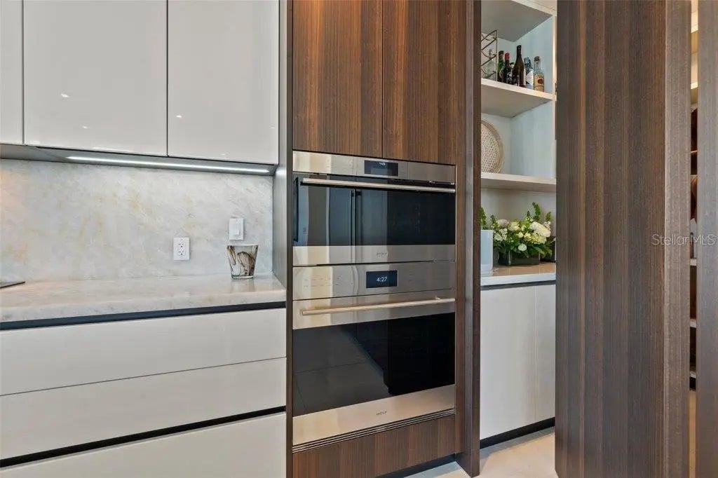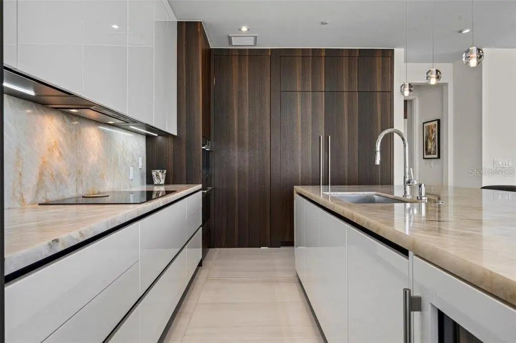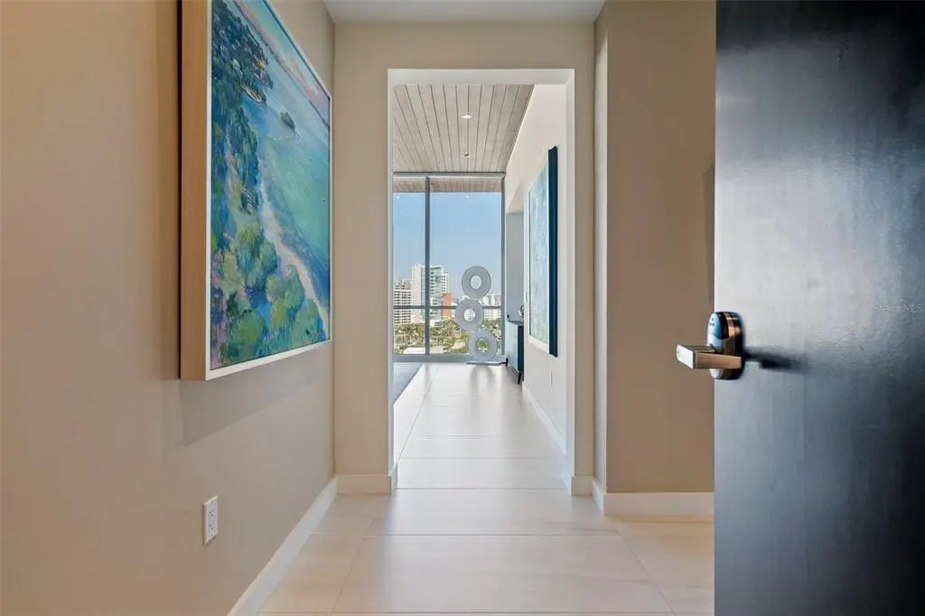 Offered at $5,995,000 over $1,250,000 below what the sellers have into this UNMATCHED VALUE penthouse at The Evolution is downtown Sarasota's most exclusive high-rise opportunity - and is just steps away from dining and downtown living. This one-of-a-kind, TOP-FLOOR PENTHOUSE spans 3,527 SQ FT of interior living plus 562 SQ FT of wraparound TERRACE SPACE across THREE generous balconies for endless possibilities of indoor/ outdoor living. Offering FOUR BEDROOMS plus a DEN and 4.5 BATHS, this residence provides the comfort of a single family home with the elegance of HIGH-RISE LIVING. Sweeping NORTH, EAST, and SOUTH WATER VIEWS showcase SARASOTA BAY, the GULF, MARINA, and the CITY SKYLINE. FLOOR-TO-CEILING WINDOWS fill the home with natural light and allow year-round coastal breezes, and designer LUTRON ELECTRONIC SHADES grace each window, allowing privacy with ease. Interior features include ONYX QUARTZ COUNTERTOPS, PORCELAIN TILE SLABS, oversized PORCELAIN FLOORING, DESIGNER LIGHT FIXTURES, and CUSTOM EUROPEAN CABINETRY in the kitchen, baths, and closets. The PRIMARY SUITE features SILK WALLPAPER, and a SPA-INSPIRED BATH with dual sinks, a freestanding soaking tub, and onyx quartz and porcelain slab finishes. The CHEF'S KITCHEN includes WOLF APPLIANCES, sub-zero fridge-freezer with filtered water feature, induction cooktop, steam oven, built-in coffee station, a wine refrigerator, and a HIDDEN WALK-IN PANTRY. Imported European fixtures complete the space. Enjoy THREE WRAPAROUND TERRACES for ALFRESCO DINING, YOGA, or SUNSET COCKTAILS. The unit includes a DEEDED PRIVATE TWO-CAR GARAGE and is MOVE-IN READY with every upgrade imaginable. Community amenities at THE EVOLUTION include a POOL WITH OUTDOOR KITCHEN, FITNESS CENTER, YOGA ROOM, SAUNA, CLUB ROOM, and a ROOFTOP TERRACE with PANORAMIC VIEWS, OUTDOOR LOUNGE, SPA, and FIREPLACE. Experience the pinnacle of WATERFRONT LUXURY in DOWNTOWN SARASOTA's largest and most exclusive penthouse residence at THE EVOLUTION, a boutique community designed by architect MARK SULTANA, DSDG. With only 20 RESIDENCES, this is a rare opportunity to own one of Sarasota's most exclusive penthouses. Schedule your private tour today and experience the ultimate in penthouse living. Square footage developer plans. Buyer to verify dimensions. Golden Gate Point improvement and maintenance built into taxes.