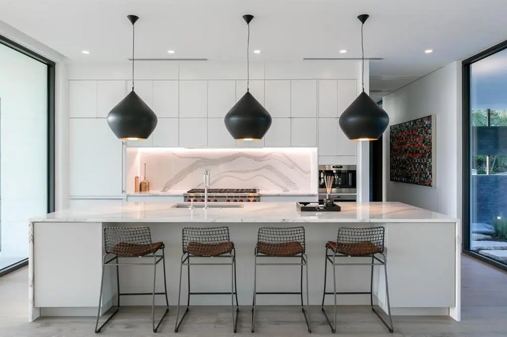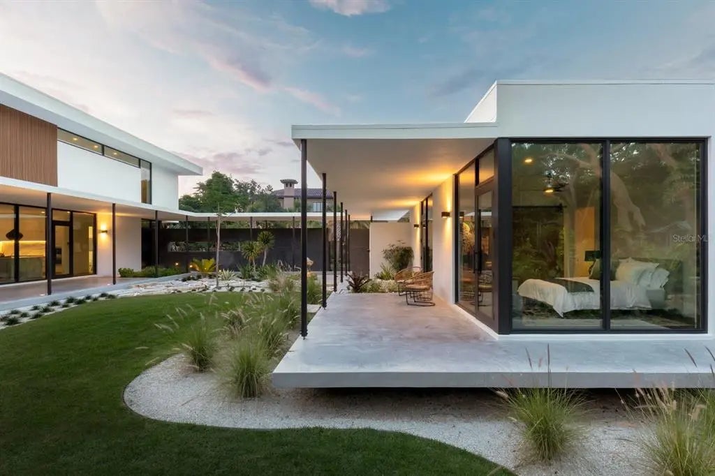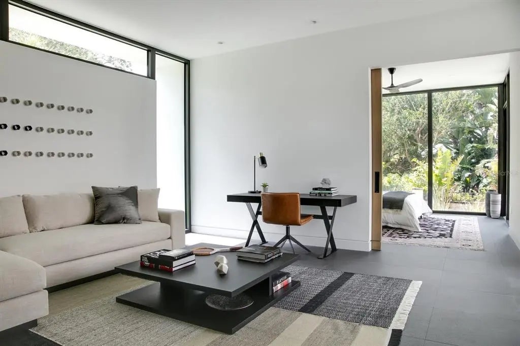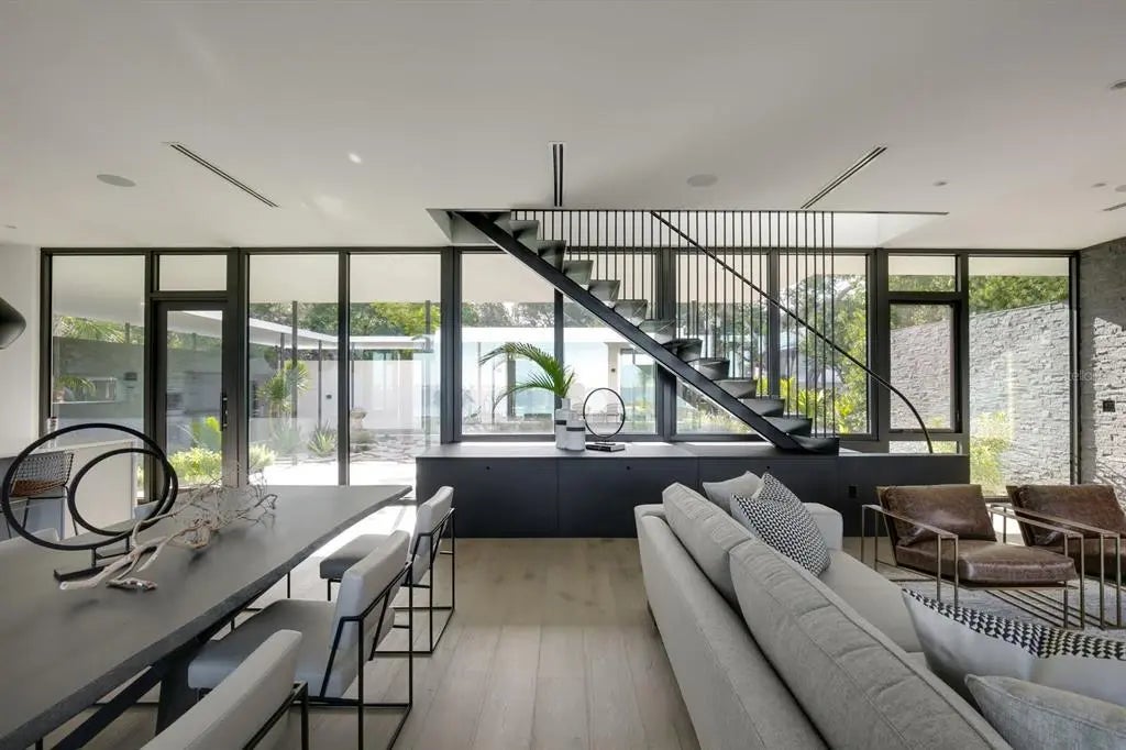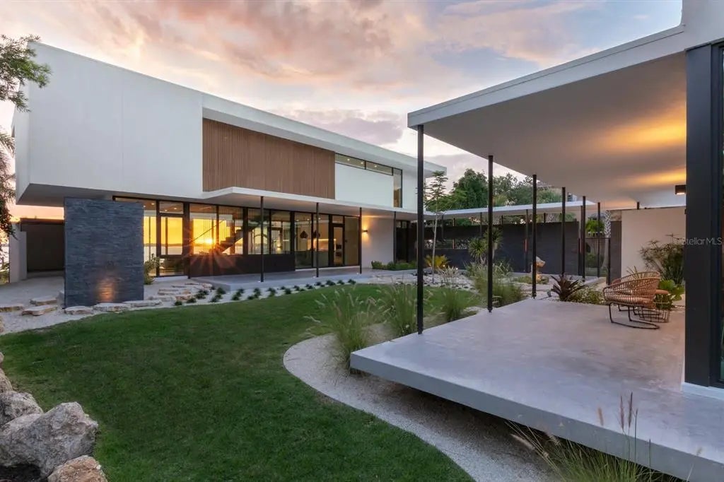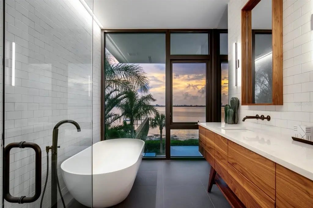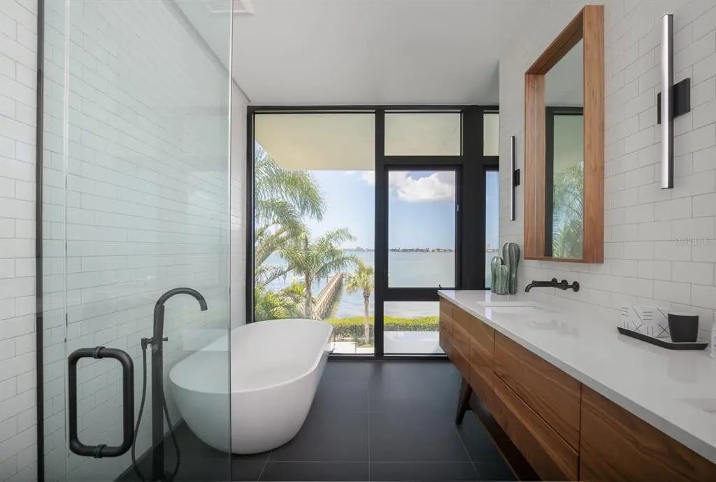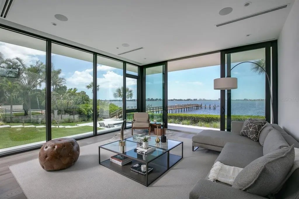 Nestled in the heart of Sarasota, Florida, "The Seathrough House" stands as a testament to timeless elegance and modern sophistication. Designed by the acclaimed architectural firm Sweet Sparkman and meticulously crafted by builder Josh Wynne, this mid-century marvel redefines luxury living. From the moment you step inside, the panoramic bay views captivate the senses, seamlessly blending the indoors with the breathtaking natural beauty of the surroundings. Every room boasts expansive windows, offering an uninterrupted vista of Sarasota Bay that is nothing short of mesmerizing. This architectural masterpiece features five bedrooms and five baths, providing ample space for both relaxation and entertaining. Each room is thoughtfully designed to maximize comfort and functionality while showcasing the stunning waterfront backdrop. Situated "West of the Trail," this premier location places you just minutes away from the world-renowned Siesta Beach, downtown Sarasota, and the charming Southside Village. Whether you're strolling along the pristine shores of Siesta Key or indulging in the vibrant cultural scene of downtown, every convenience is within easy reach. For those who appreciate the finer things in life, "The Seathrough" house offers more than just luxurious living—it promises a lifestyle of unparalleled elegance and sophistication. With a shared dock featuring a 16,000 lb lift, residents can effortlessly explore the azure waters of the Gulf Coast or simply bask in the warmth of the Florida sun as they watch the gorgeous sunsets from the home or the bayfront poolpaint the sky in hues of orange and gold. "The Seathrough" house is not just a home—it's a sanctuary where every moment is infused with beauty, tranquility, and the unmistakable charm of Sarasota living at its finest.