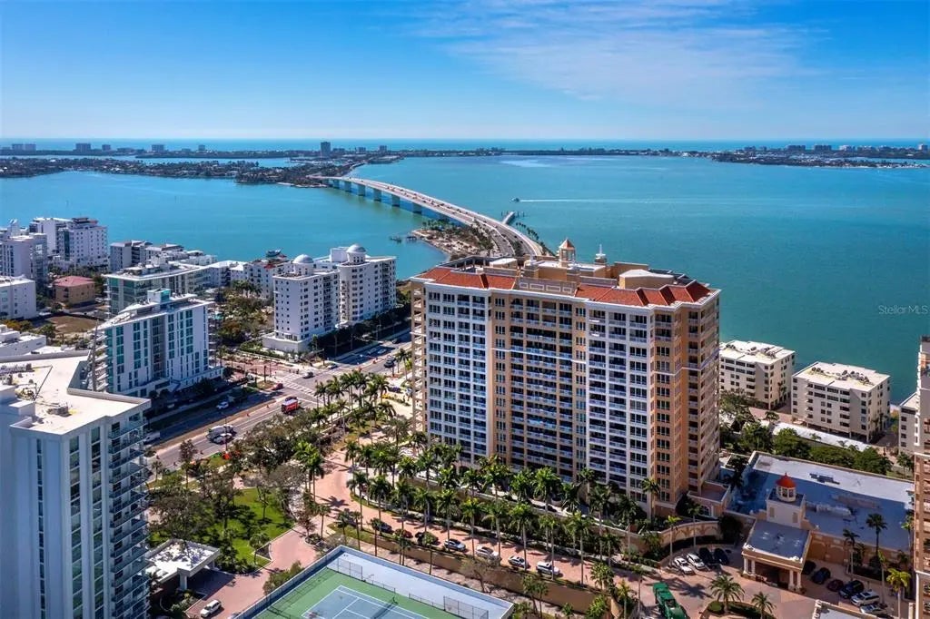 Set high on the 14th floor of the private, luxurious Ritz-Carlton Tower Residences, this elegant three-bedroom, three-bath residence captures breathtaking views of the blue-green waters of the Gulf and Sarasota Bay. Every room with Floor-to-ceiling windows fill the home with natural light, framing ever-changing skies, sparkling water, and glowing sunsets that feel like they were made just for you. Step outside to the nearly 600-square-foot terrace—perfect for morning coffee, sunset cocktails, and effortless entertaining. Inside, the professionally designed interior features gorgeous hardwood flooring throughout, custom cabinetry and built-ins, motorized blinds, plantation shutters, and an integrated entertainment center with televisions and surround sound—creating a space that is both elevated and comfortable. Every detail is designed to feel refined, inviting, and easy to live in. Living at The Ritz-Carlton is more than just owning a beautiful residence—it’s a world-class lifestyle with legendary service. Owner amenities include beautifully appointed social and recreational spaces, state-of-the-art fitness facilities with sauna and steam baths, a massage room, and a resort-style outdoor heated pool and hot tub. Enjoy concierge service, 24-hour in-residence dining, valet, and around-the-clock security. Perfectly positioned in the heart of downtown Sarasota, you’re just moments from the area’s finest beaches, shopping, dining, fishing, golf, theater, and art galleries. Membership opportunities are also available for The Members Golf, Beach and Spa Clubs, offering an additional layer of private, resort-style experiences.