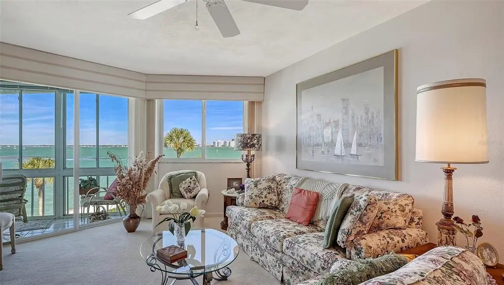 Imagine living in a prime, unique waterfront community with an amazing location—maybe the best Bayfront community in Sarasota! You’re just a short walk from downtown, St. Armands Circle, Lido Beach, and the Sarasota Yacht Club. Sarasota Harbor East is a 55+ waterfront community with all the perks of maintenance-free living. This third-floor unit gives you stunning views of Sarasota Bay and the city. It has 2 bedrooms and 2 full baths, perfect for you to make your own. Plus, you’ll have an enclosed four-season glass lanai and high-impact sliding glass doors and windows. The clubhouse has been updated and includes a fully equipped kitchen, a new metal roof, a library, full bathrooms, and a large lap pool with Bayfront views. There’s even a designated area for storing kayaks and bicycles! You’ll have one covered parking space and plenty of guest parking. The community is very neat and tidy, and the maintenance fees cover everything from docks and exterior building to cable TV, a heated community pool, building insurance, internet, exterior maintenance, ground maintenance, a manager, exterior pest control, pool maintenance, sewer, trash, and water. Deep-water boat slips are available on a first-come, first-served basis, and all costs are included in the maintenance fee. (Slips are currently available.) The boat slip can accommodate up to a 30’ powerboat or sailboat. Leasing is not allowed for one year after purchase. Pets permitted with valid service or support animal documentation.