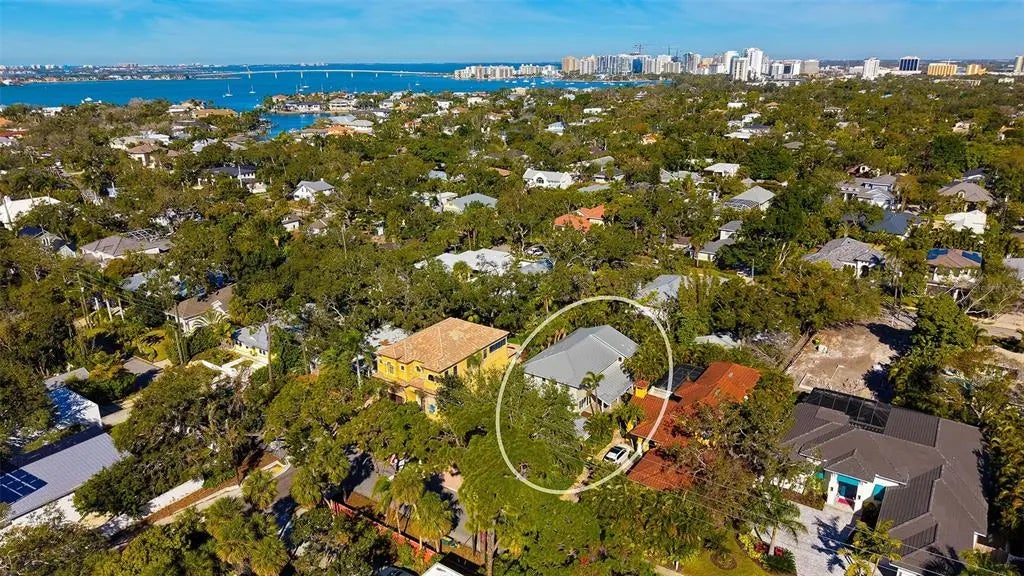 Exceptional Living in Sarasota's Premier Southside Village. Discover quality living in one of Sarasota's most sought-after addresses. This beautifully maintained 3-bedroom, 2.5-bathroom residence offers an excellent combination of thoughtful design, premium finishes, and an enviable location just half a block from the vibrant shops and restaurants of Southside Village. The heart of this home is a spacious great room with soaring 18-foot ceiling and tasteful hand-hewn hardwood oak flooring that exudes warmth and character. A convenient dry bar equipped with its own refrigerator, wine cooler, and adjacent powder room makes entertaining effortless. Integrated surround sound creates the perfect ambiance throughout the first floor, while French doors open to a generous 20' x 12' screened lanai featuring a private relaxing hot tub. The thoughtfully designed kitchen is well suited for the culinary enthusiast, featuring an abundance of custom cabinetry with pull-out shelves, under-cabinet lighting, and expansive counter space. Premium appliances include an island-mounted DCS gas range with professional-grade hood, Sub-Zero refrigerator, Bosch dishwasher, and a built-in Miele espresso/cappuccino maker for your morning ritual. The adjacent dining area provides ample space for gathering family and friends around the table. A downstairs office showcases custom-built cabinetry and shelving, creating an ideal work-from-home environment. Quality touches throughout include solid wood core doors and a convenient in-wall vacuum system. Retreat to your spacious primary bedroom where French doors open to a private balcony overlooking mature, lush landscaping. Dual walk-in closets feature organized closet systems, while the spa-inspired en-suite bath boasts stone countertops, a solid wood vanity with dual sinks, an oversized shower with rainfall sunflower head, and a stunning Oceania jacuzzi soaking tub. Two spacious secondary bedrooms share a Jack and Jill bathroom perfect for family or guests. The upstairs laundry room is thoughtfully equipped with its own sink, folding table, and storage cabinetry. A fully equipped outdoor kitchen and patio bar complete with refrigerator, sink, gas grill w/range hood, kegerator, and granite bar provide a great gathering spot. Hurricane impact windows throughout, a metal roof, and resilient Hardie board siding provide exceptional protection against Florida's elements. Situated 20+ feet above base flood elevation, flood insurance is not required, offering both security and long-term savings. 3-car carport. In addition to the amenities of Southside Village you're in close proximity to Sarasota Memorial Hospital, downtown Sarasota, top-rated schools including Sarasota High and Southside Elementary and only 5 miles to world-renowned Siesta Key beach Everything you love about Sarasota living is moments away. This exceptional residence offers the complete package: prime location, superior construction, thoughtful amenities, and the ultimate Sarasota lifestyle. Schedule your private showing today. ________________________________________