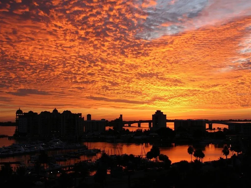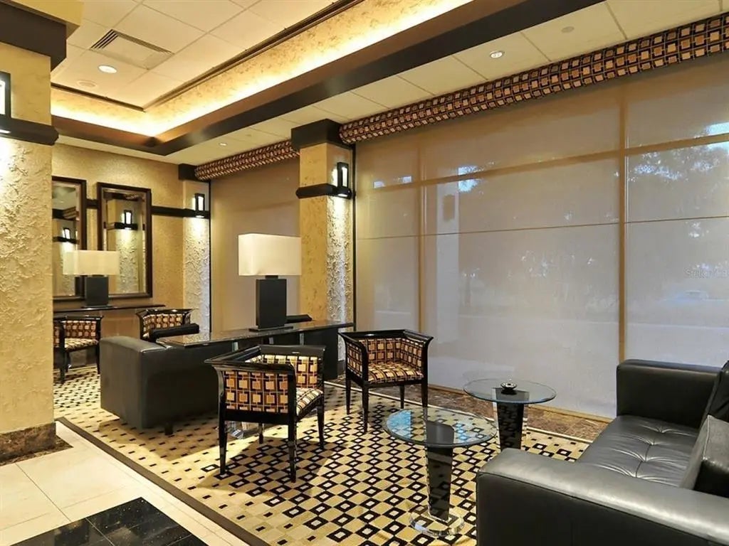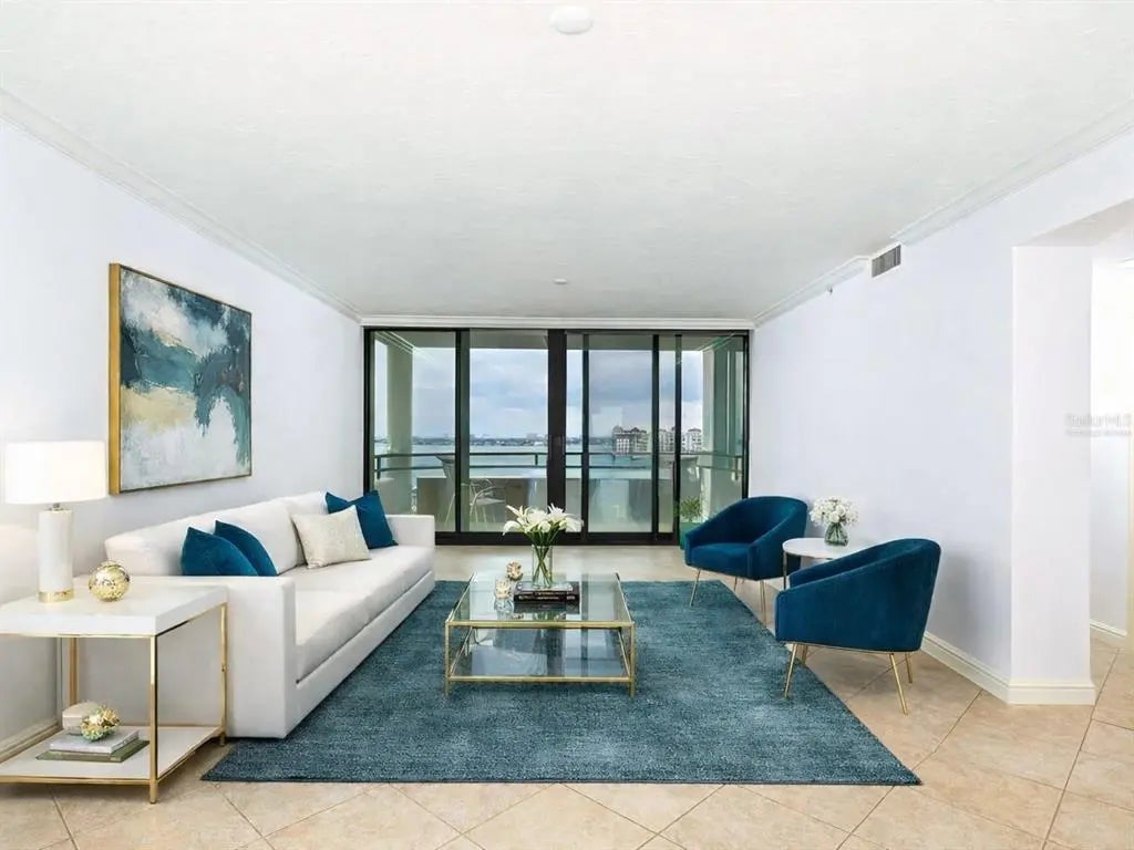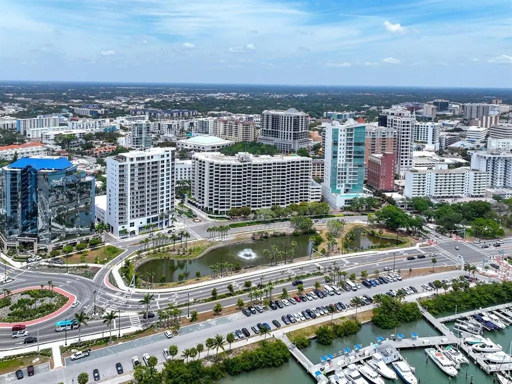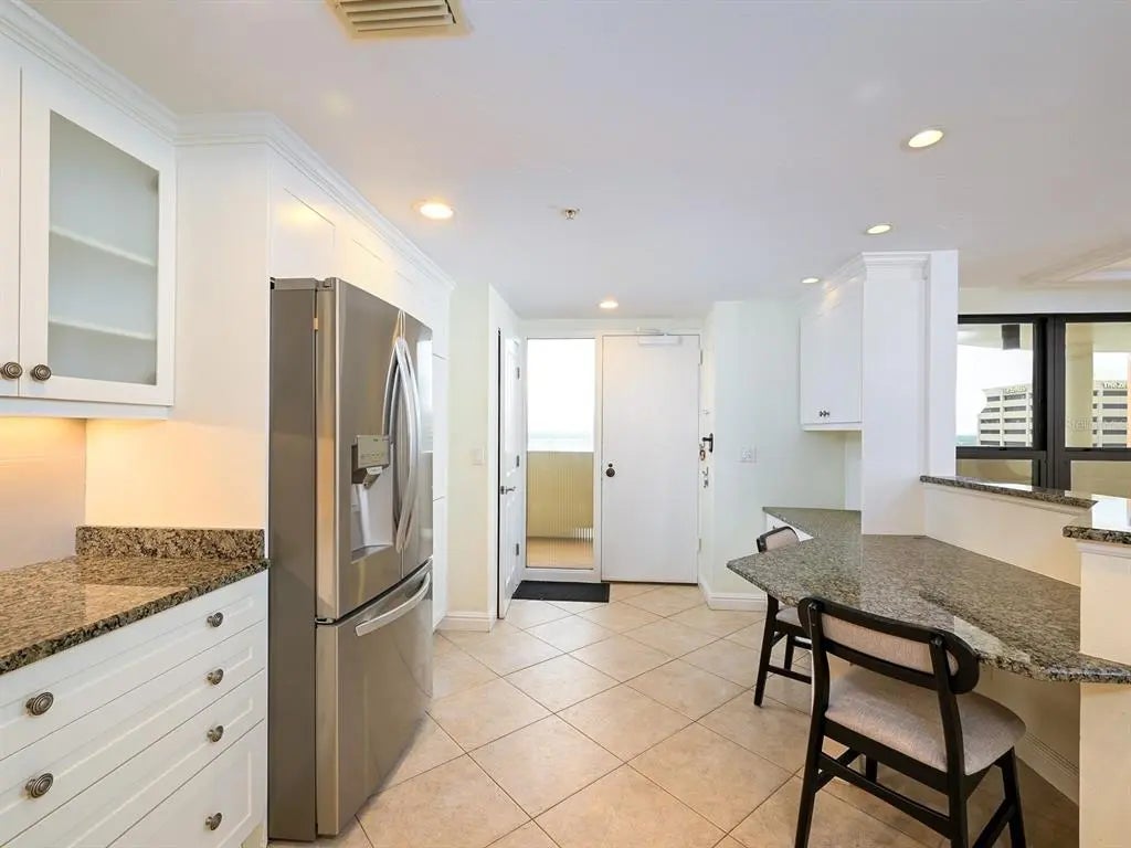 One or more photo(s) has been virtually staged. Experience the pinnacle of downtown Sarasota living at Bay Plaza, where the 11th floor showcases breathtaking, sweeping vistas of Sarasota Bay and the Gulf of Mexico—views that truly impress from every angle. An updated great room with a spacious, inviting layout, perfect for both relaxation and entertainment. It offers ample space for both the living and dining areas, making it ideal for gatherings. Additionally, there are two beautifully designed en-suite bedrooms and bathrooms. Throughout the home, you'll find crown moldings, recessed lighting, custom built-ins, solid-surface counters, modern, high-quality cabinetry, and tiled flooring set on the diagonal, all of which truly elevate the space! You'll absolutely love this elegantly remodeled kitchen! It’s generously sized, with dramatic granite countertops and a delightful peninsula with bar seating. The open shelving and glass shelves add a stylish touch, while the service entrance and convenient laundry closet make life easier. Imagine creating your dream coffee bar or a cozy home office nook in the flexible space. Plus, it comes equipped with a built-in pantry, sleek stainless-steel appliances, a tiled backsplash with glass tile accents, and task lighting. The Owner’s Suite is thoughtfully located for privacy and boasts amazing views. It has an accessible bathroom that is appealing to everyone, including individuals with disabilities. Key features include double sinks, lots of cabinetry, solid surfaces, a zero-entry tiled shower with dual showerheads, and a wide doorway with a pocket door leading to an expanded water closet designed for mobility with bonus storage. The double primary certainly has its standout characteristics on the other side of the floor plan, with convenient access to the secondary bath and views of the bay. This residence is not only move-in ready for your comfort and enjoyment, but it also shines with spotless perfection. Discover the joy of stepping into a home that feels custom-made for you, where you can truly relax and make it your own from day one! As a resident of Bay Plaza, you will benefit from exceptional amenities, including 24/7 valet parking, convenient EV charging stations, and unmatched concierge services available around the clock. The building has recently been transformed with the installation of impact-resistant glass, elevating its sophistication and ensuring both style and safety. Unwind in the luxurious heated swimming pool, soak in the rejuvenating spa, or maintain your fitness routine in the state-of-the-art fitness room, complete with a European sauna and steam room. Nestled in the heart of downtown Sarasota, this prestigious building is surrounded by a variety of trendy restaurants and boutiques. Residents can effortlessly immerse themselves in the vibrant cultural scene, with Whole Foods, the Theatre, and the Opera just moments away. Enjoy the spectacular 4th of July fireworks at Marina Jacks from the comfort of your balcony. With its unbeatable location just minutes from St. Armands Circle, Longboat Key, and Sarasota’s stunning beaches, this unit offers an unparalleled opportunity to embrace the dynamic social lifestyle that downtown Sarasota proudly provides. Don't miss your chance to make this exquisite residence your own!