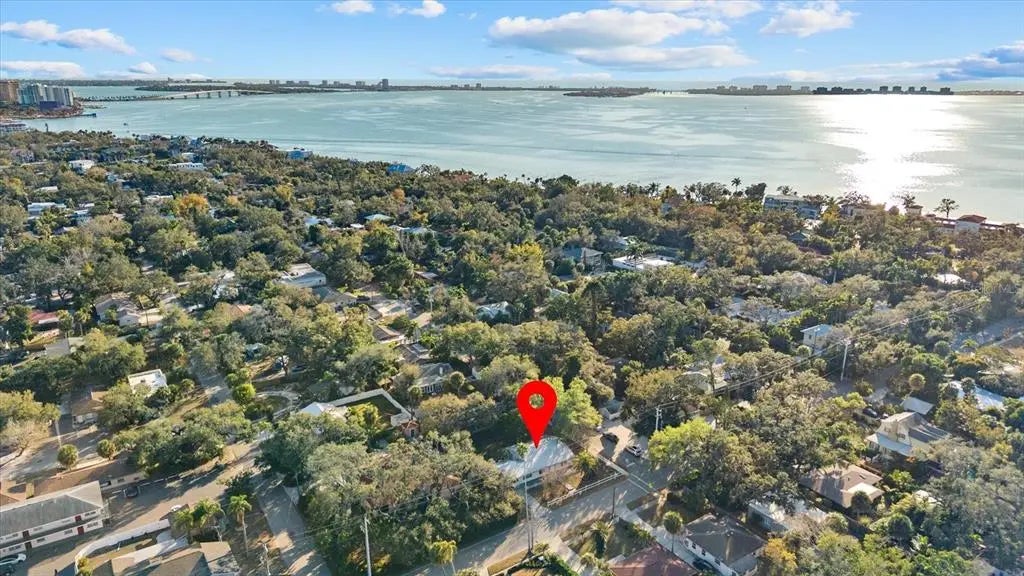 Executives' Paradise. Walk to Beach from "Upper SRQ" location, in Historic Coastal Community, near Little Indian Beach- Neighborhood Beach. This 1947 built authentic original, in the Ringling Museum Area is near to SRQ Airport, and close to Sarasota's various Downtown attractions. Expansive room sizes, well built, and on oversized treed lot boasting huge front porch( 50' x 8' ), and semi private rear deck ( 20' x 10' ) for sunbathing. Walk to public transit, short walk to Sunsets on the Bay, fishing, kayaking, relaxing by the beautiful waters of Sarasota's Bayfront. Mature mango tree, china cherry trees, shady oaks, tropical palm trees and various exotic lush landscaping. Tough metal roofing system, post and rail fencing system, and security lighting surround this Stately Home. Huge rooms for entertaining and relaxing plus an oversized private office space/Art Studio, or possible 'in-law studio/library' etc. is away from the action, for the professional to work quietly. Chef's kitchen is larger than most and cooks with natural gas stove and oven. Natural gas is also energy efficient for the larger than most 40 gal.water heater. Total package is efficient and in a most unusually spacious historic type of home. *NOTE- Portable Kitchen Island + Fresh Produce Storage Bins + Bakers Rack can be included in sale. Pedestal sink and original porcelain tiles grace this oversized shower stall bathroom. White with blue color bathroom. Ceramic tiles throughout the home make this easy to keep, hygienic and clean. At end of day stroll out the front door to your 50' front porch, or take a short walk on shady tree lined sidewalk to watch the colorful sunsets on the waterfront. Come home to "The Beachouse" . ( Potential as a handicap accessible residence dependant upon individual needs. Please preview for access to property amenities and interior rooms maneuverability. Wide Hallway is 4' 3" x 11' 6" .to go between bedrooms and bathroom side of the home. ..Thankyou ) • Please note: Broker/Owner occupies access to premises until closing. Quick-Close possible. Information is deemed reliable or accurate, but is not guaranteed.
