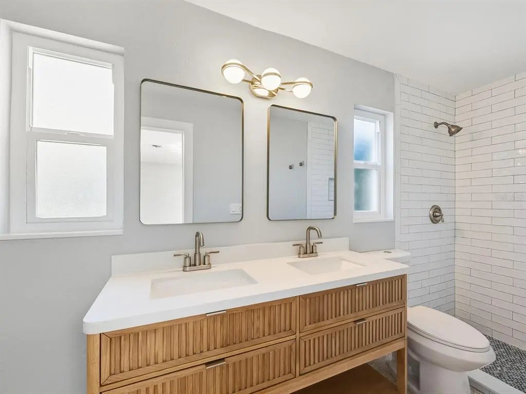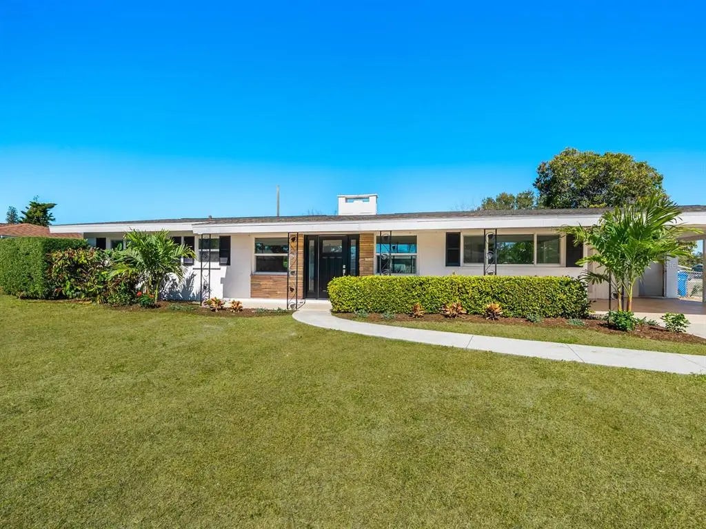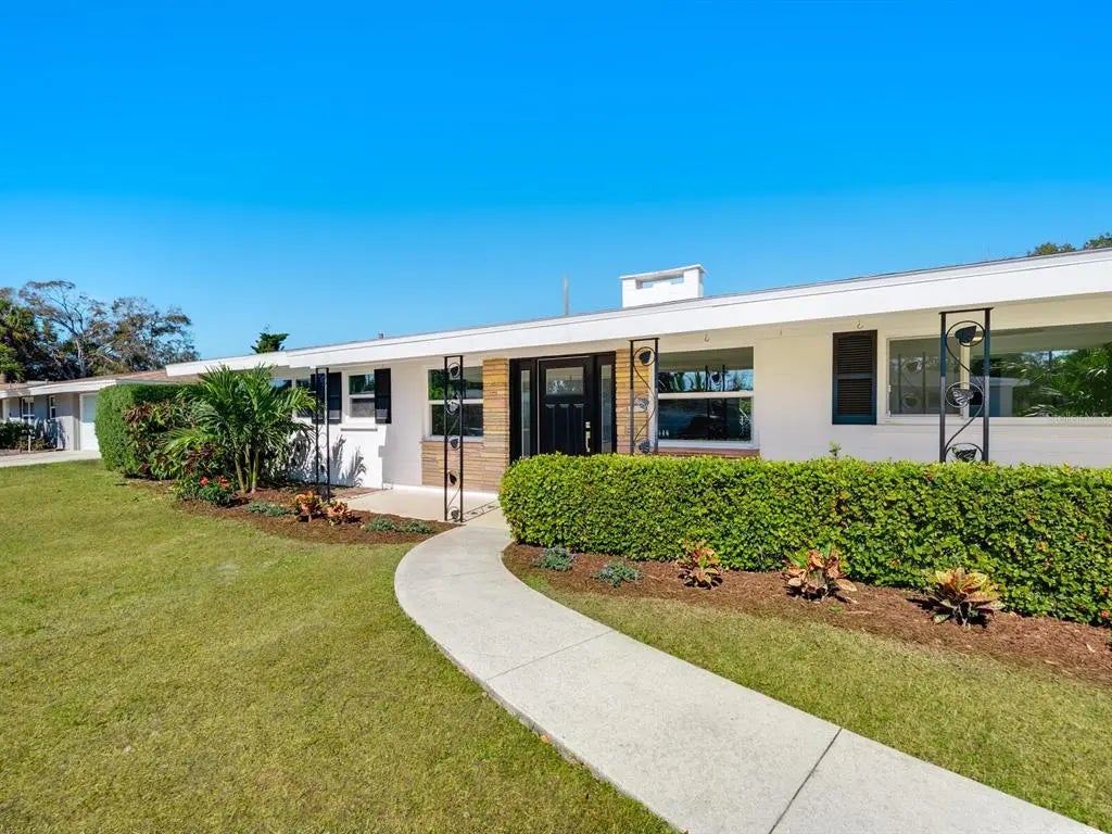One or more photo(s) has been virtually staged. Tucked away on an oversized corner lot in the desirable South Gate neighborhood, this beautifully refreshed mid-century modern home is a rare blend of timeless design and thoughtful updates. Recently updated, the home features refinished terrazzo floors, a new kitchen with updated cabinetry, countertops and appliances, along with new bath vanities, allowing the original character of the era to shine while offering modern comfort. The flexible floor plan includes three bedrooms, two baths, and an expansive 12-by-13-foot laundry room that could easily be reimagined as a home office, studio or additional living space, bringing the interior to nearly 2,000 square feet. Large windows and classic architectural lines reinforce the home’s authentic mid-century feel. Anchoring the home is a dramatic double-sided stone fireplace, a mid-century architectural statement that subtly divides living spaces while maintaining openness and flow. Crafted in natural stone, it functions as a sculptural focal point and a functional hearth, an unmistakable nod to the design principles of the era. Outdoors, enjoy an excellent covered patio overlooking a generous screened-in pool, ideal for relaxed afternoons or entertaining year-round. The oversized corner lot enhances privacy and provides a sense of space rarely found in this area. Roof 2025, Newer front door/windows (2014), PVC from house to street. South Gate offers an optional HOA, giving residents access to a community pool, clubhouse and a full calendar of neighborhood events, adding a wonderful sense of connection without obligation. Ideally located, the home is just a short distance or bike ride to Arlington Park, Southside Village and Sarasota Memorial Hospital, with quick access to downtown Sarasota, Siesta Key and St. Armands Circle. This is a mid-century modern home for those who appreciate the architecture, simplicity and enduring style of the era, set in one of Sarasota’s beloved neighborhoods.