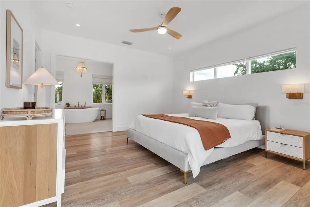 Modern Elegance Meets Prime Location – Custom 2024 New Build. Welcome to this stunning custom-designed residence by renowned Lear Studio, offering nearly 3,000 square feet of refined living space in the main home, on a generous lot with ample room to add a pool. Perfectly situated on one of the few charming, sidewalk-lined streets West of the Trail, this home combines timeless architecture with modern comfort, in one of Sarasota’s most sought-after neighborhoods. Inside, the light-filled open floor plan features five spacious bedrooms and three well-appointed bathrooms, all styled in a move-in-ready neutral palette to complement any design aesthetic. The heart of the home seamlessly flows and includes a great room, dining space, and chef’s kitchen, highlighted by a dramatic wall of sliding glass doors that open fully to expansive covered patios—ideal for effortless indoor-outdoor living and entertaining. The professionally landscaped and fully fenced property offers both privacy and security. The rare, detached guest house featuring 572 square feet of living space provides added flexibility for visiting family, a private home office, or a creative studio space. Enjoy a southern rear exposure, flooding the home with natural light throughout the day and providing an ideal setting for outdoor enjoyment and future poolside lounging. Located within walking distance to Southside Village, Morton’s Gourmet Market, boutiques, coffee houses, and top-rated local restaurants—this home also offers unbeatable proximity to downtown Sarasota and the award-winning Gulf Coast beaches. Zoned for the highly coveted Southside Elementary School, one of Sarasota's top performing schools, this home has it all. Modern luxury, a prime location, and thoughtful design—all come together in this exceptional new home.