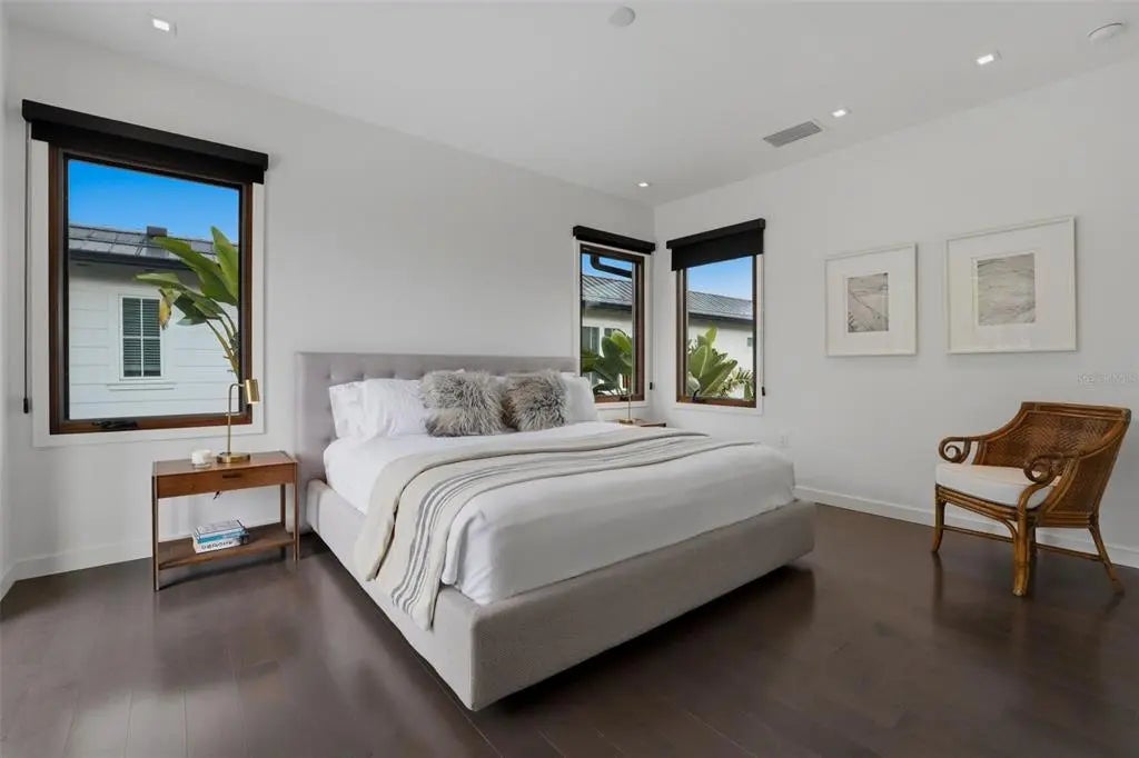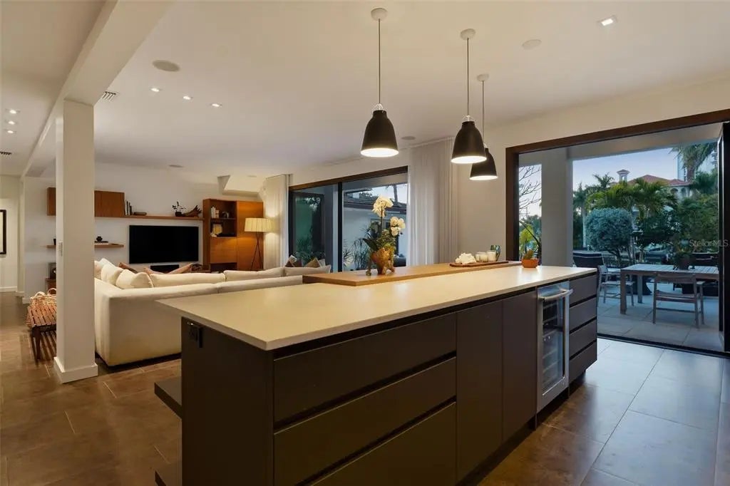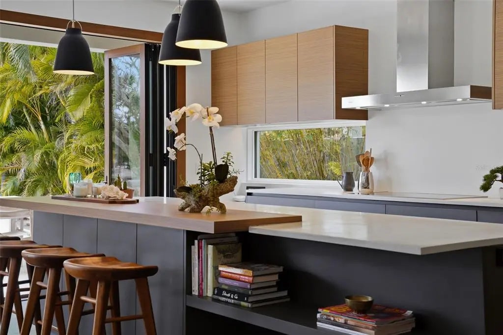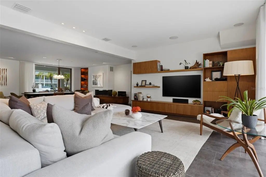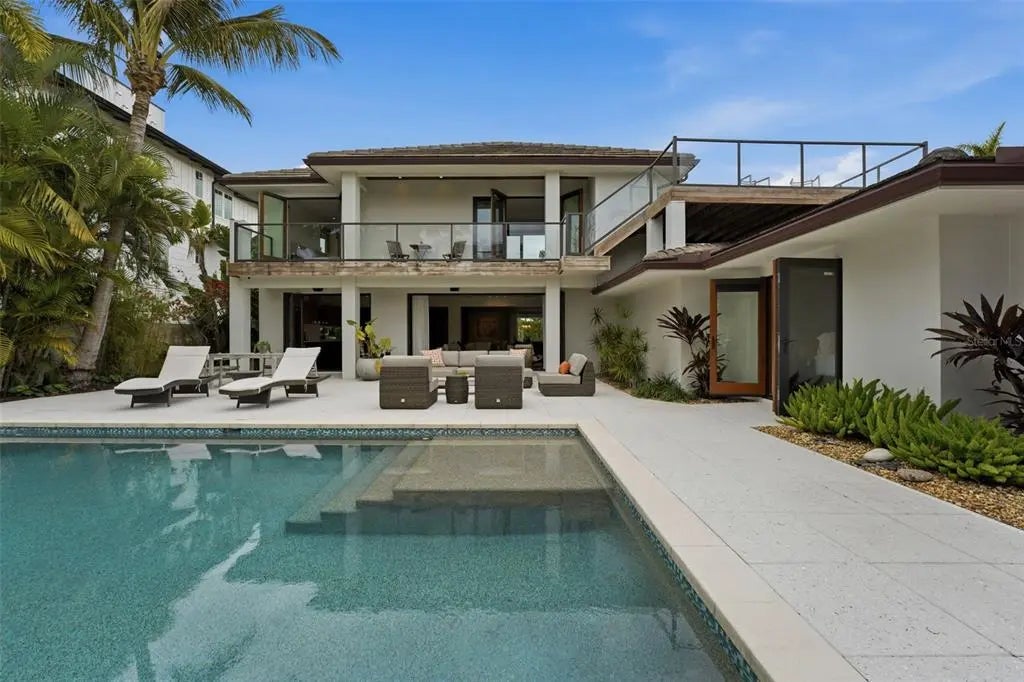 There are homes that feel renovated and there are homes that feel resolved. Set along the quiet, tree lined stretch of South Washington Drive, this home carries the rare ease of a property that was thoughtfully reimagined and then simply lived in. Renovated approximately ten years ago, the work was executed to standards and sensibilities that remain entirely current today from construction methods to material choices to the way the home opens to light, water, and daily life. Nothing feels dated. Nothing feels forced. It feels quite simple and right. While extensively renovated, the home presents today with the clarity and restraint of new construction. The architecture is clean and intentional, allowing spaces to flow naturally from indoors to out. Wide folding doors dissolve the rear of the home, opening living areas to the pool and waterfront setting beyond, where mornings begin quietly and evenings settle in with peace and beauty. Upstairs, the perspective shifts offering elevated views across the surrounding neighborhood and toward the breathtaking skyline, with a rooftop deck that becomes a natural place to watch the light change at the end of the day. Throughout the home, systems and finishes were selected not only for style, but for longevity and performance. The result is a home that looks as though it could have been completed yesterday, yet has already proven itself through time, weather, and use. Outdoors, the property invites a slower rhythm: an easy transition from the primary suite to the pool, a private outdoor shower, and direct access to the water for boating, paddle or kayak, small moments that become daily rituals. This is a home that does not announce itself, but rewards those who understand it. Located just steps to St. Armands Circle, the home is quietly connected to one of Sarasota’s most enduring coastal destinations known for its walkable charm, thoughtful boutiques, and some of the area’s most established restaurants. Lido Beach, the Ritz-Carlton Beach Club, St. Regis, and Longboat Key Club are all close at hand, while downtown Sarasota remains an easy drive away when the evening calls for it. 541 South Washington Drive is not about renovation or reinvention. It is about arriving at something already complete.